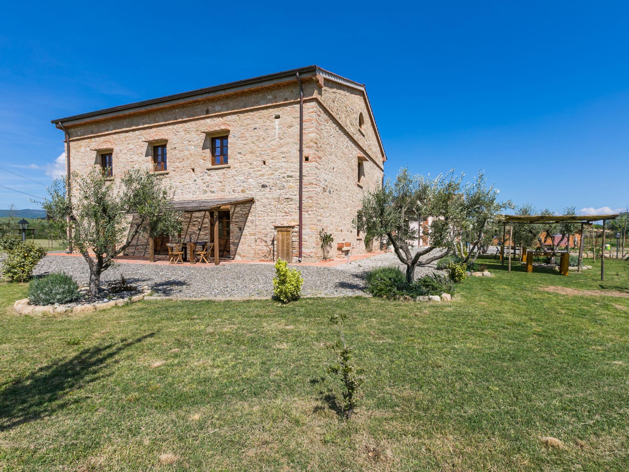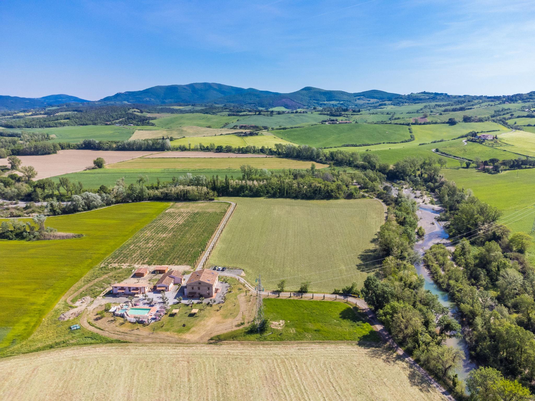 This carefully restored complex is located in the middle of the fields of the Val di Cecina, a few steps from the river of the same name. Much attention was paid to the construction of the swimming pool, where a hydromassage ( about 11 people) and a children's pool carved into the stone were created. Resort "Podere la Querciola", 2 storeys, renovated in 2021, surrounded by meadows and fields. In the district of Casino di Terra 11 km from the centre of Guardistallo, 14 km from the centre of Cecina, in a secluded, quiet position, 16 km from the sea. For shared use: property with plants and trees, swimming pool (6 x 11 m, depth 150 cm, seasonal availability: 01.May. - 15.Oct.). Children's pool, outdoor shower, hot tub, garden furniture, barbecue. In the complex: WiFi, washing machine (extra). Motor access (700 m via unmade road). Parking. Shop 11 km, restaurant 2 km, bar 2 km, bus stop 1.1 km, sandy beach "Marina di Cecina" 16 km. Nearby attractions: Volterra 24 km, Pisa 70 km, Firenze 100 m.