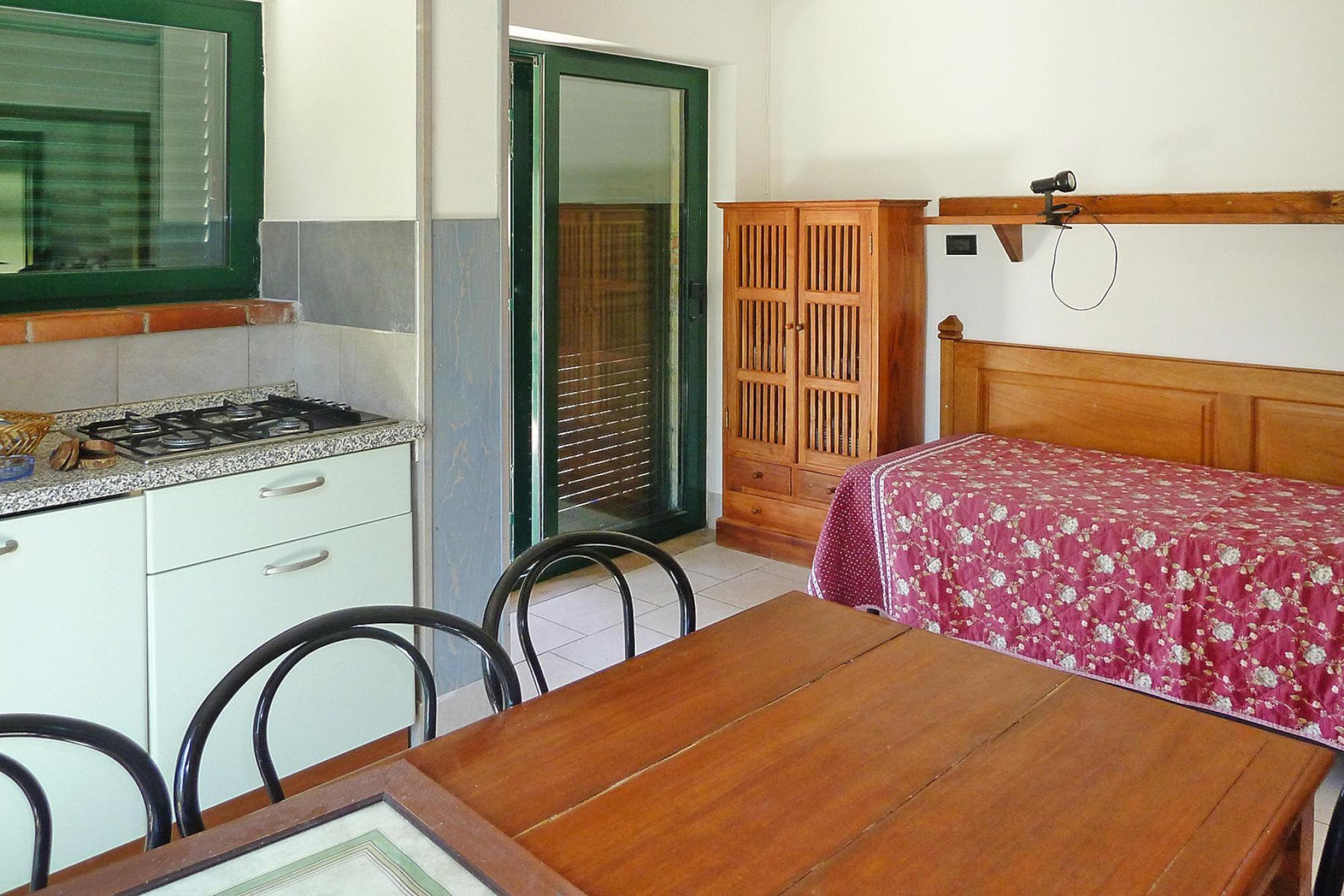 Åpent kjøkke(komfyr med kokeplater(komfyr med 4 kokeplater, gass), kjøleskap med fryser), Stue/spisestue(2x enkeltseng), soveværelse(dobbeltseng), bad(dusj, toalett), Grill center, Resepsjonen, Parkering, Fitness, Bordtennis, Restaurant, Lekeområde, vaskemaskin(deles med andre gjester, betalt), oppvarming, terrasse, hagemøbler, solsenge, Parasoll, svømmebasseng(deles med andre gjester, utendørs, inkludert separat barnesvømmebasseng (dybde 50cm), 20 x 10 m., opened from 1/2 May upto and including Sep), svømmebasseng(deles med andre gjester, utendørs, opened from 1/2 Jun upto and including Aug), kulespill, baby crib(paid)