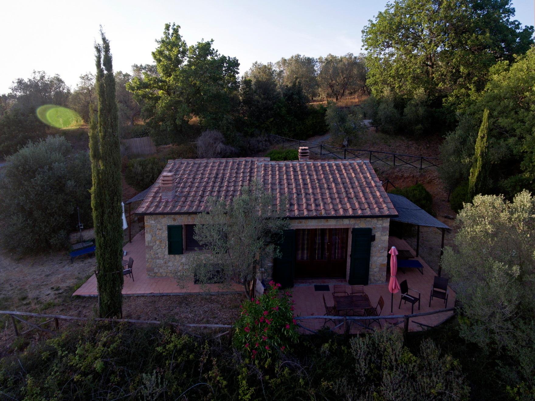 Bei Guardistallo. Entfernungen: Cecina 7 km, Bolgheri mit der schönsten Zypressenalle Italiens 10 km, Volterra 30 km, Pisa 45 km, Lucca 55 km, San Gimignano 55 km, Siena 80 km, Florenz 100 km.
