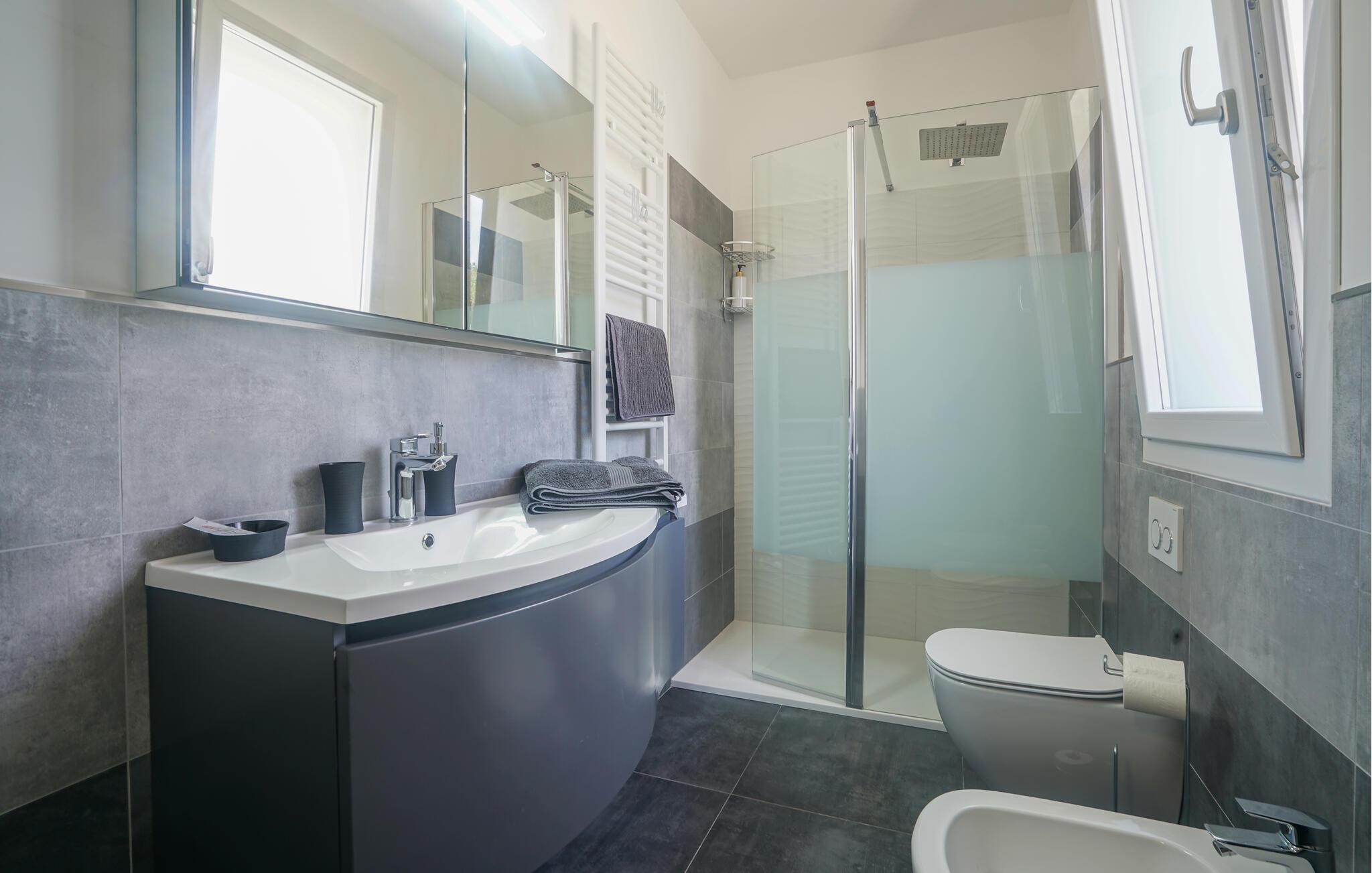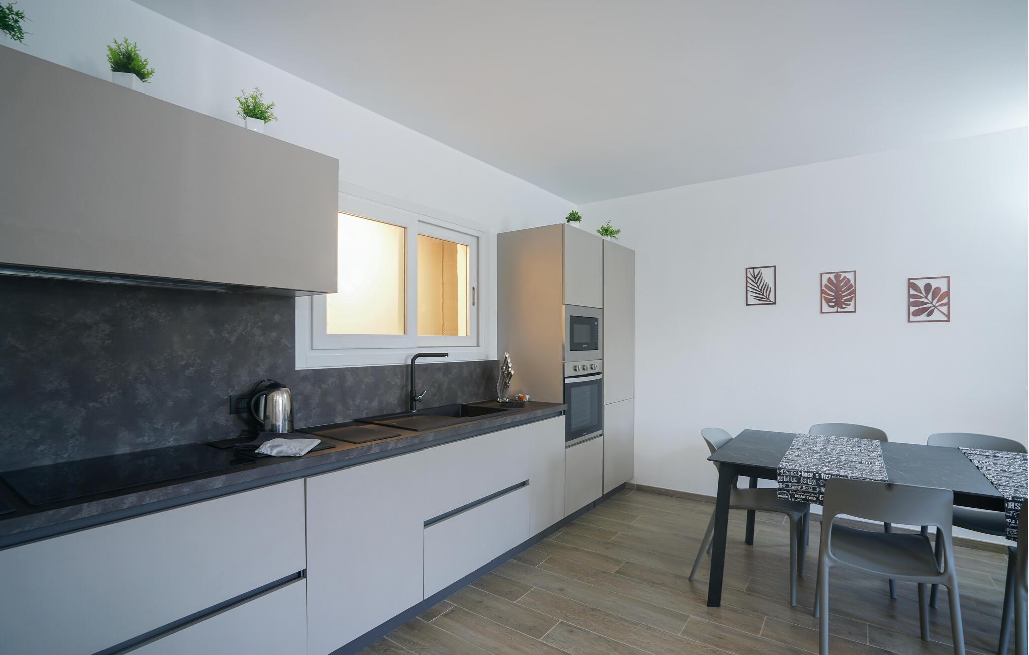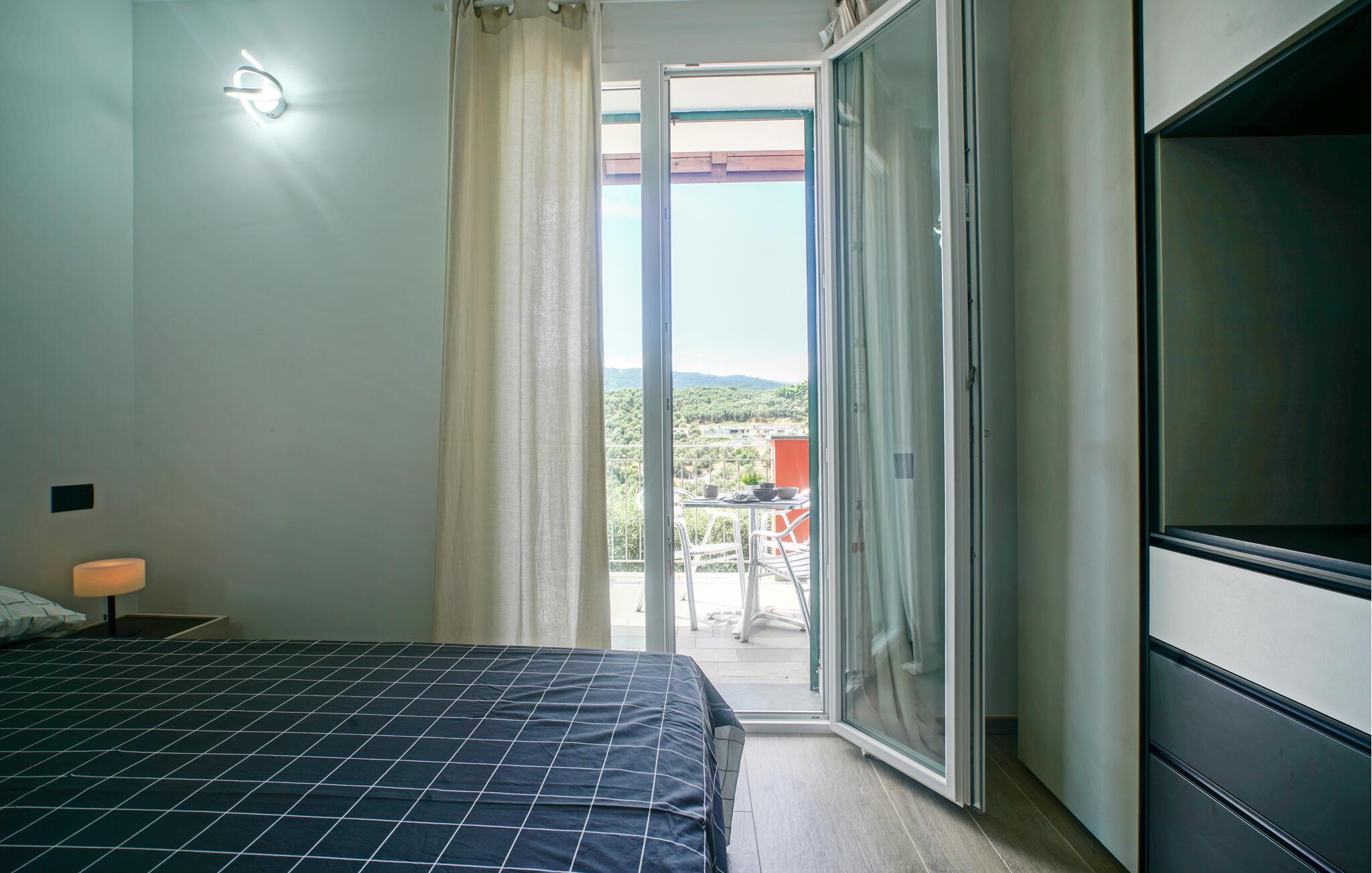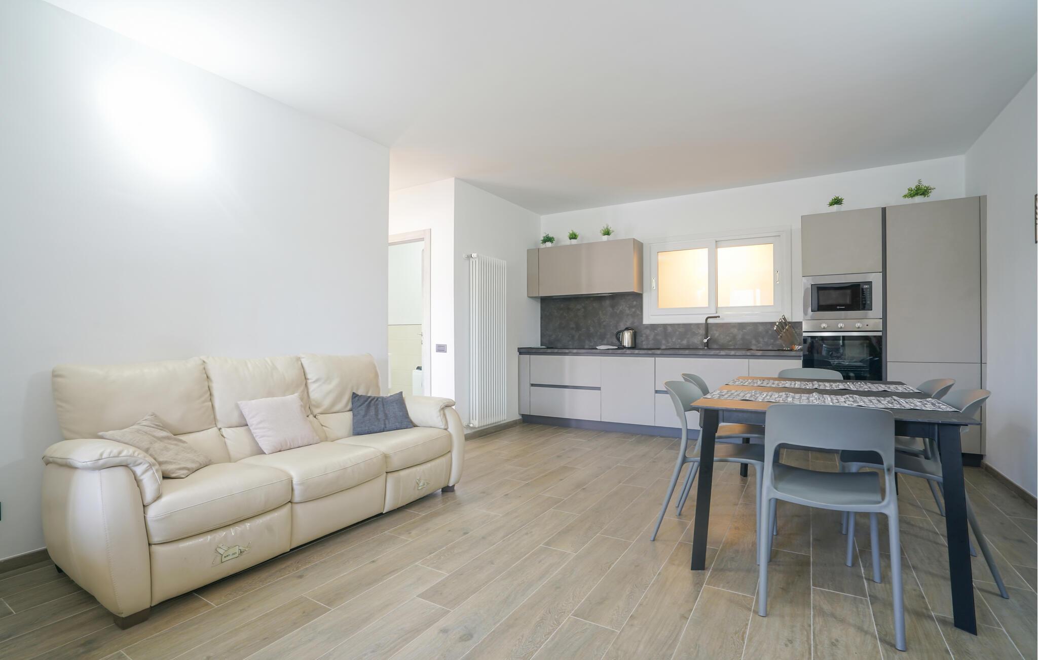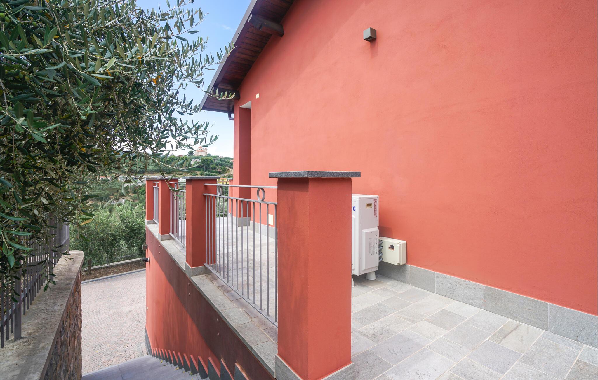 Velkommen til denne romslige tomannsboligen midt i det grønne, kuperte innlandet til kystbyen Imperia. Her blir du møtt av et pent og moderne interiør som får deg til å føle deg som hjemme. Tilbered favorittmåltidene dine, planlegg eventyrene dine ved det innbydende spisebordet, og se en spennende film i sofaen etter en lang dag.