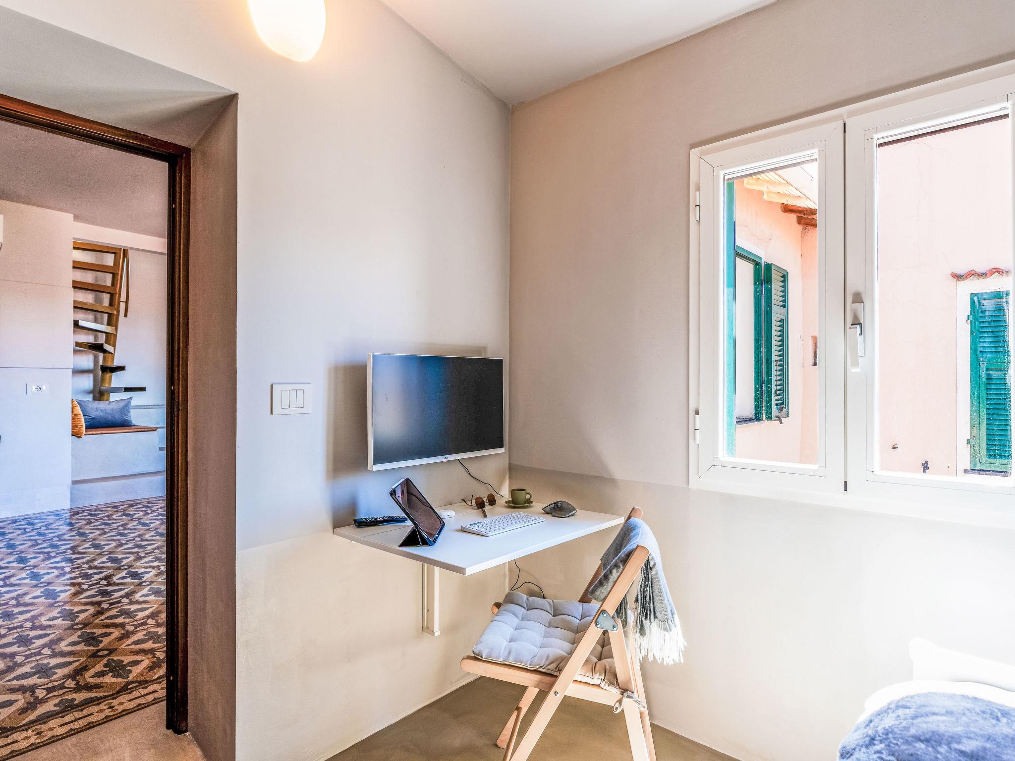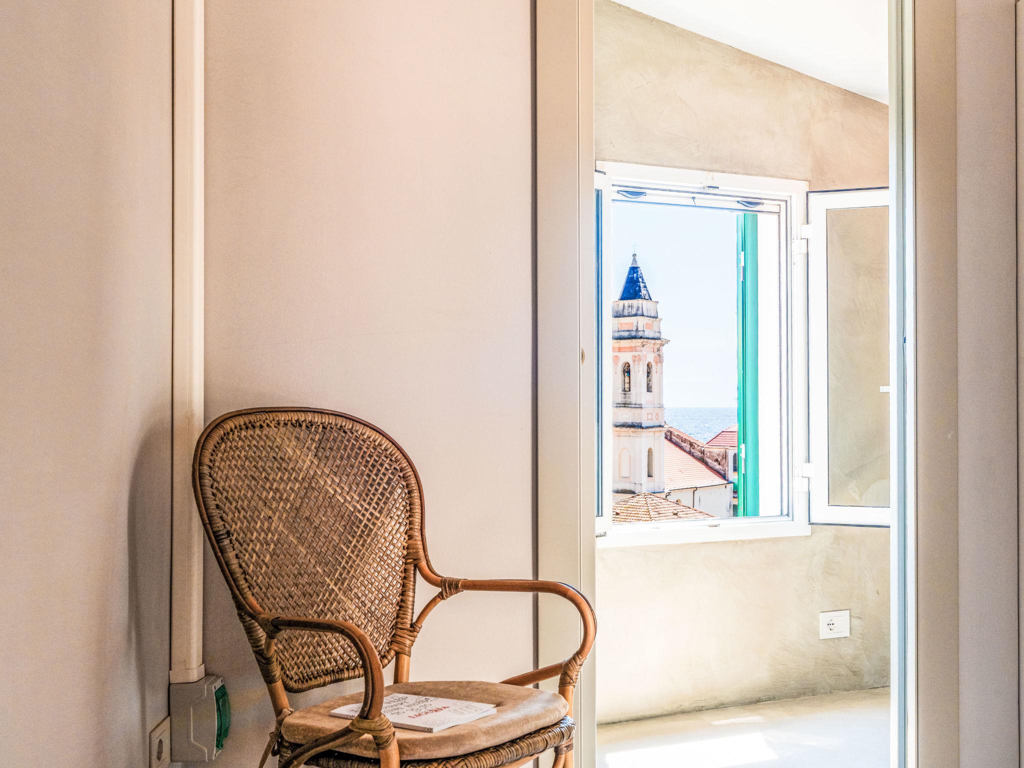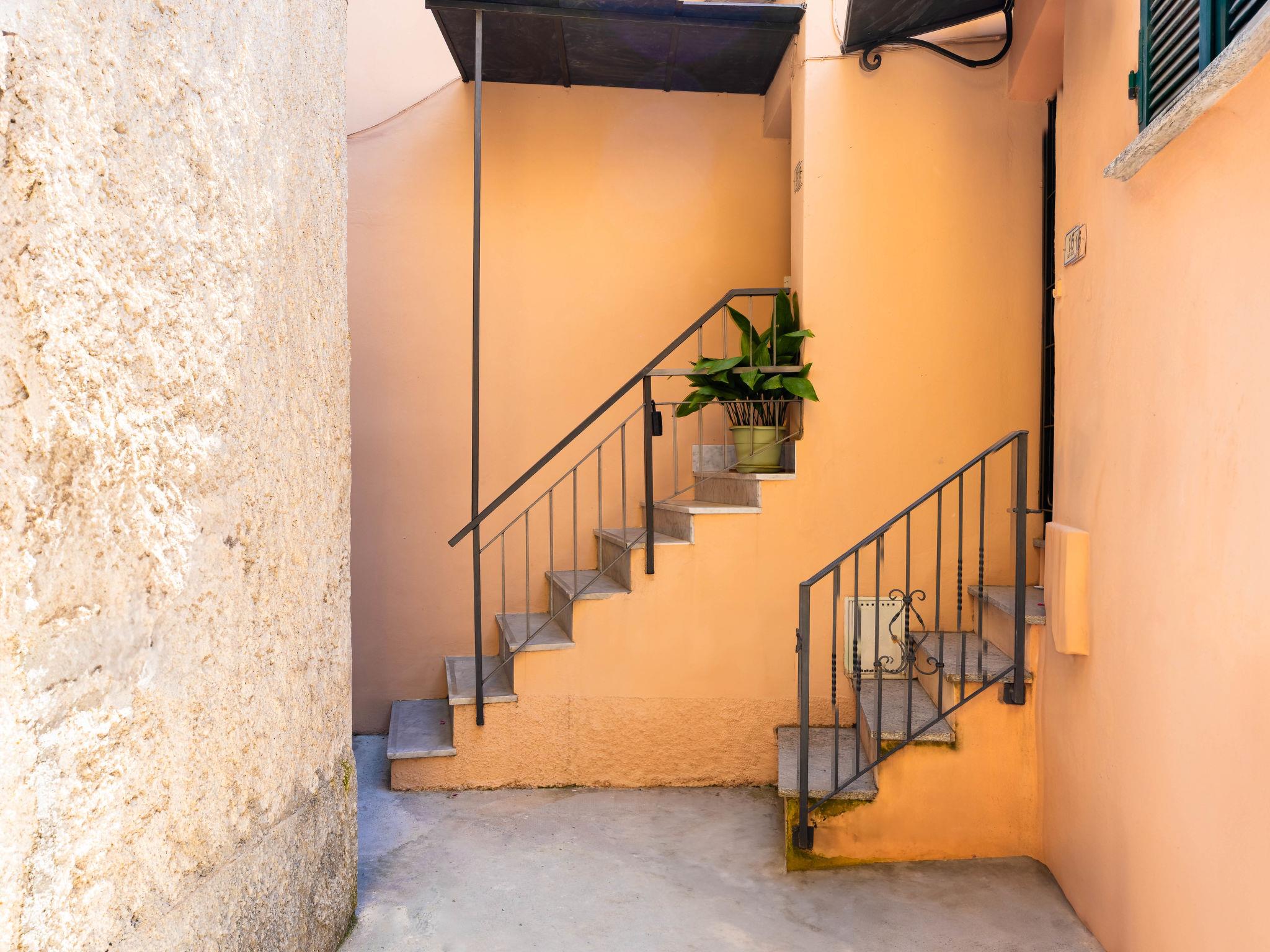 4-room house 75 m2 on 2 levels. Fully renovated in 2024, modern and stylish furnishings: living/dining room with open-hearth fireplace (only for decoration), dining table. 1 room with 1 bed (80 cm, length 200 cm). 1 room with 1 double bed (1 x 140 cm, length 200 cm). Kitchen-/living room (oven, dishwasher, 4 induction hot plates, toaster, kettle, microwave, freezer, electric coffee machine, Capsules for coffee machine (Nespresso)) with dining table, digital TV. Shower/WC. Air-conditioning. Upper floor: (spiral staircase), 1 room with 1 double bed (1 x 140 cm, length 200 cm), shower/WC. Exit to the terrace. Large terrace, south facing position. Terrace furniture, deck chairs (2), box-room. Marvellous panoramic view of the sea, the mountains and the resort. Facilities: washing machine, iron, hair dryer. Internet (WiFi, free). Please note: not suitable for small children. Non-smokers only. Smoke alarm, fire extinguisher. IT008031C2MX5SP8HP