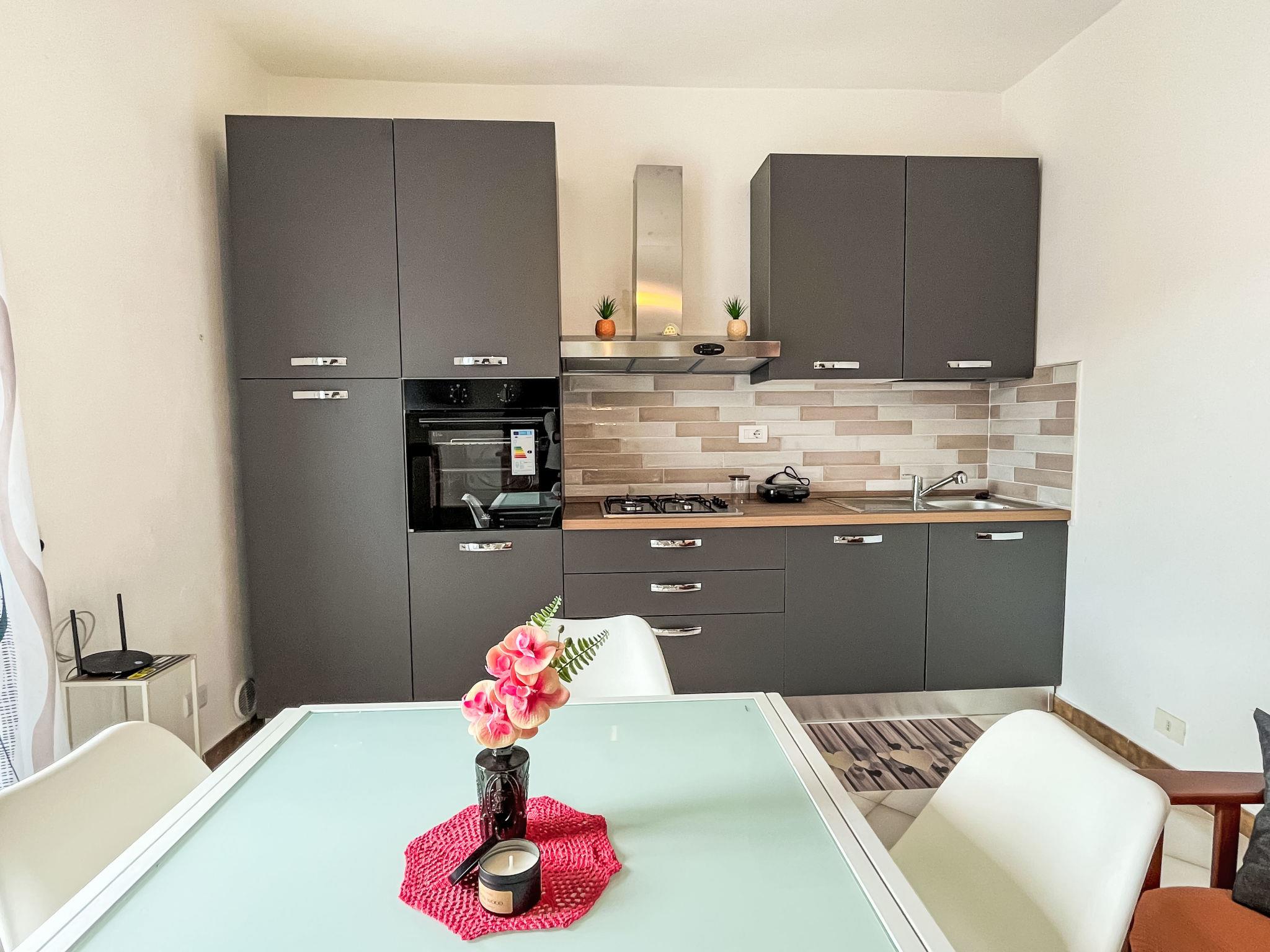 "Collina", 3-room apartment 80 m2 on 1st floor. Bright, renovated in 2025, beautiful and cosy furnishings: living/sleeping room. 1 room with 2 beds (80 cm, length 200 cm). 1 room with 1 double bed (1 x 160 cm, length 200 cm). Open kitchen (oven, dishwasher, 4 gas rings, toaster, kettle, freezer, electric coffee machine) with dining table. Exit to the balcony. Shower/WC. Heating available only from 01.11. to 12.04. Terrace. Terrace furniture, barbecue. Facilities: washing machine, iron, children's high chair, baby cot, hair dryer. Internet (WiFi, free). Parking space n 1. Please note: maximum 1 pet/ dog allowed. Smoke alarm, fire extinguisher. IT008031C2X7RAYMO
