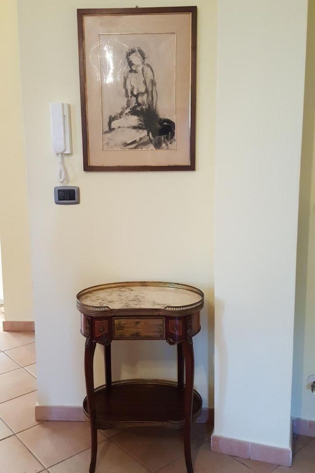 Outside, the small terraced garden is ideal for moments of relaxation or enjoying meals al fresco, thanks to the presence of a barbecue and garden furniture. This private space represents a small oasis of peace where one can relax, surrounded by the tranquillity of the residential area.