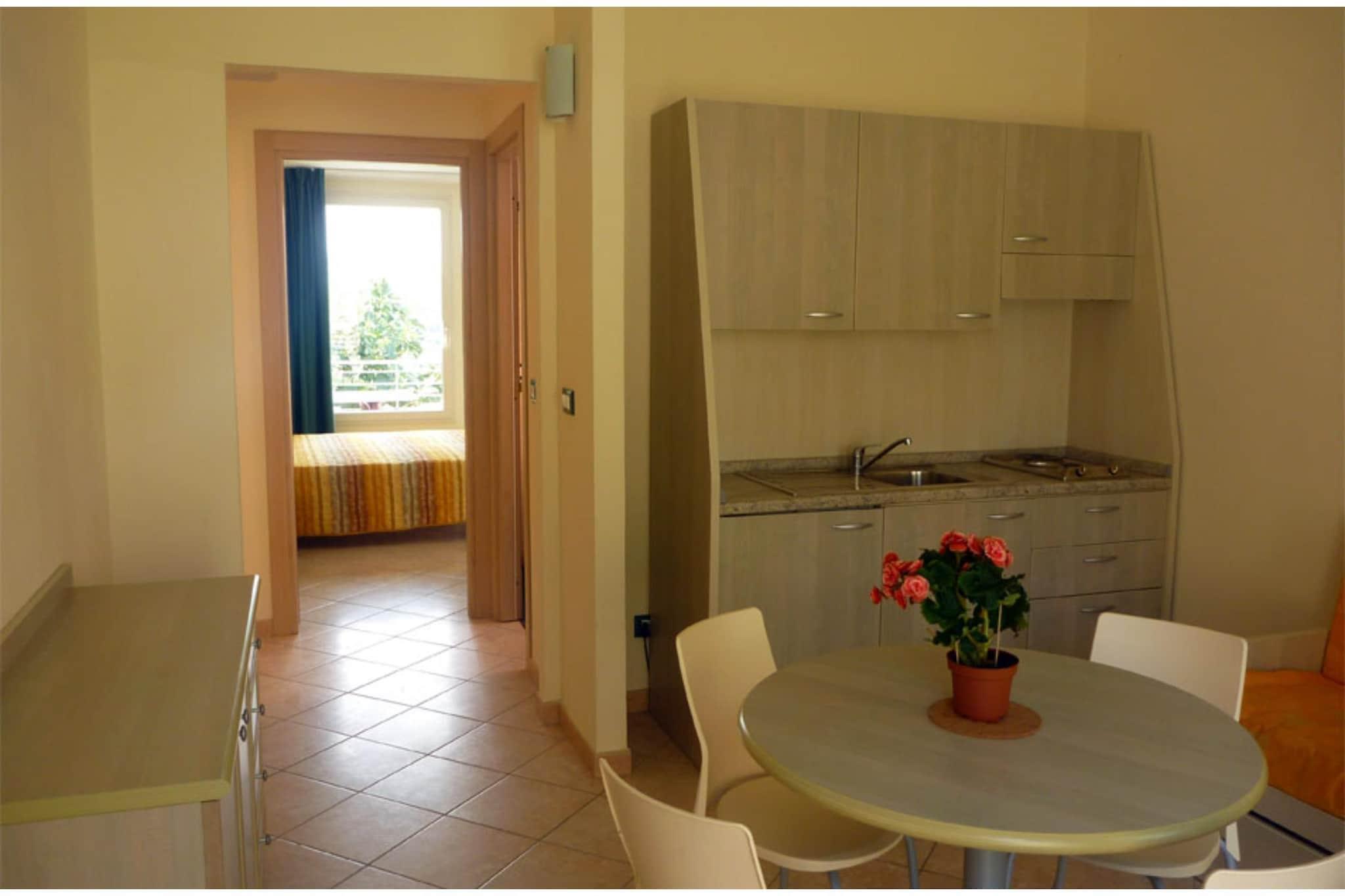 Åpent kjøkken(vannkoker, komfyr, kjøleskap), Stue/soverom(dobbel sovesofa, TV, sittehjørne), soveværelse(dobbeltseng), bad(badekar eller dusj, håndvask, toalett, bidet), balkong eller terrasse, klimaanlegg, hagemøbler, parkering, svømmebasseng(deles med andre gjester, 14 x 7 m., opened from Jun upto and including 1/2 Sep), Inkl. vaskeripakke