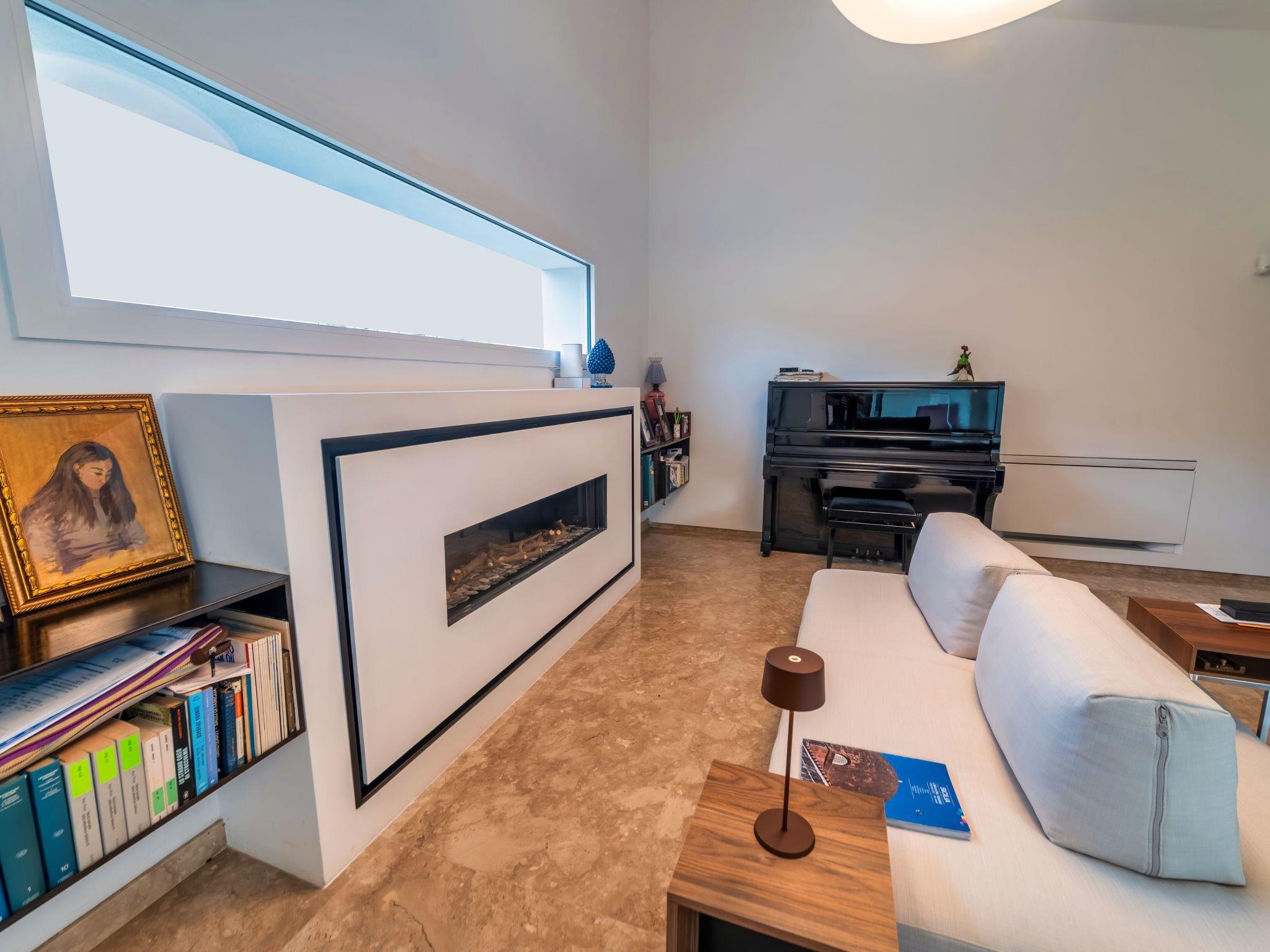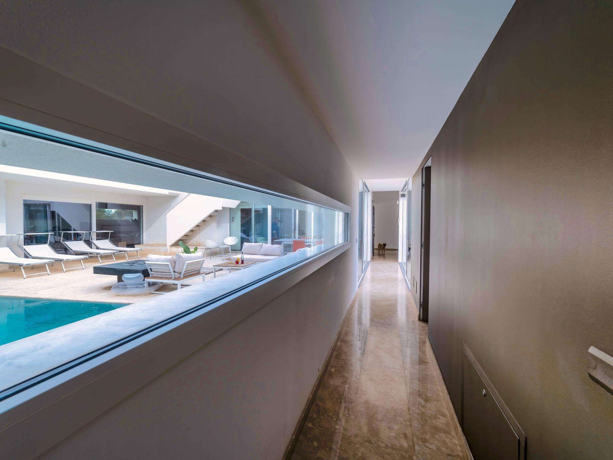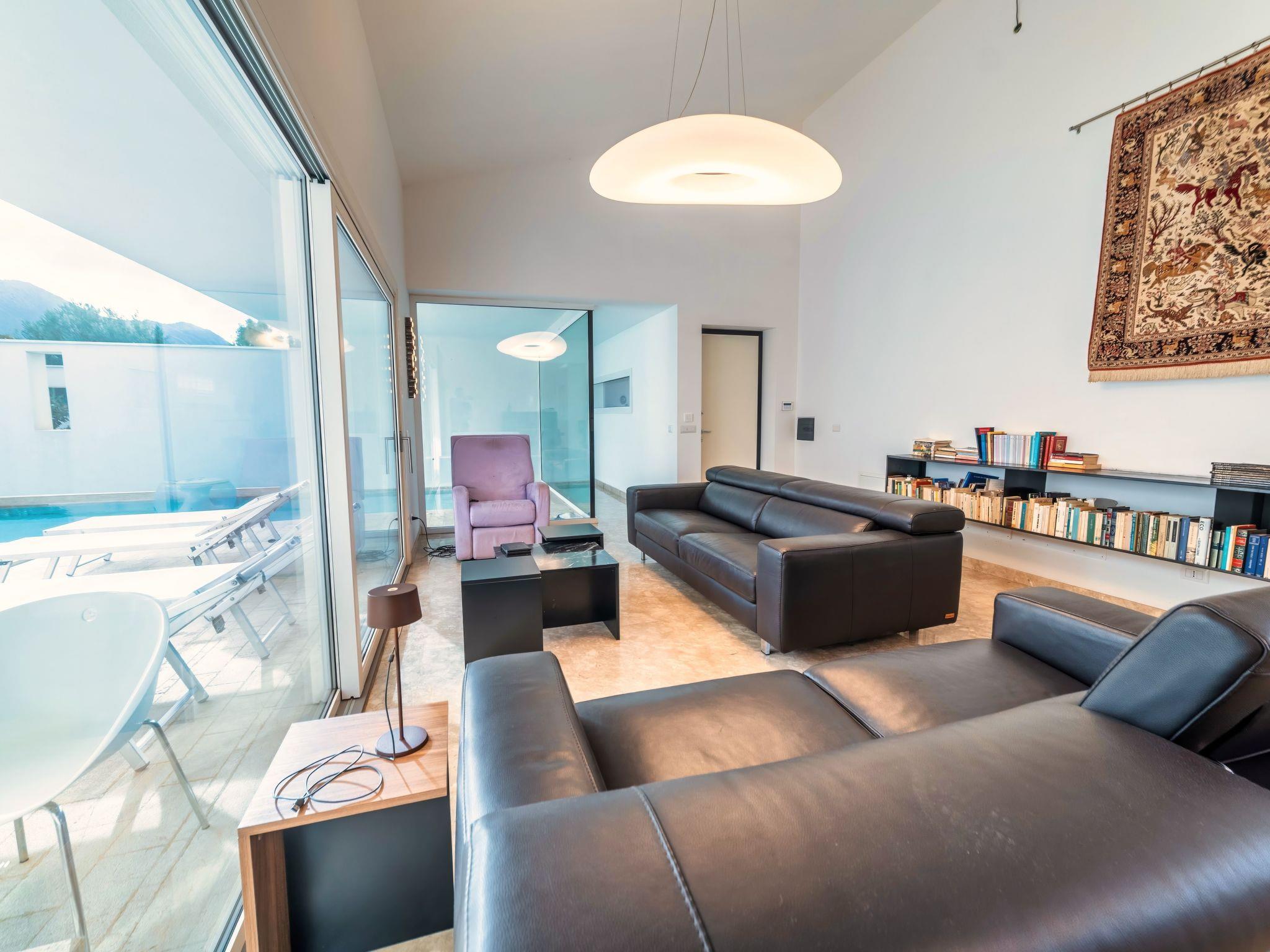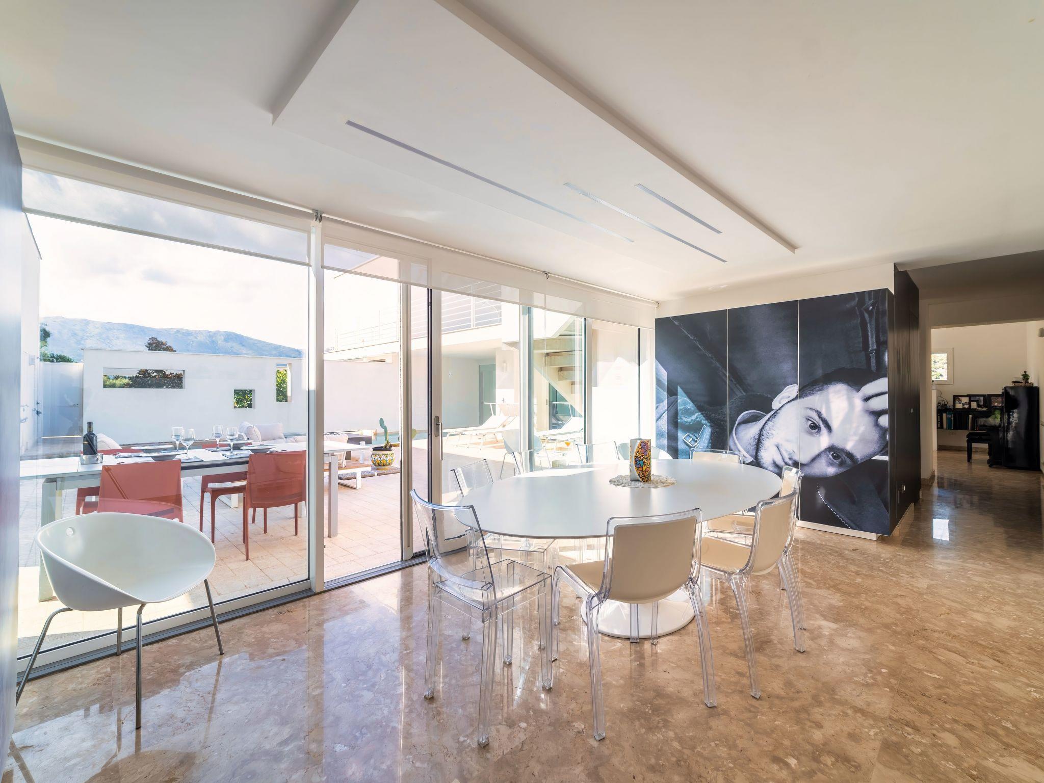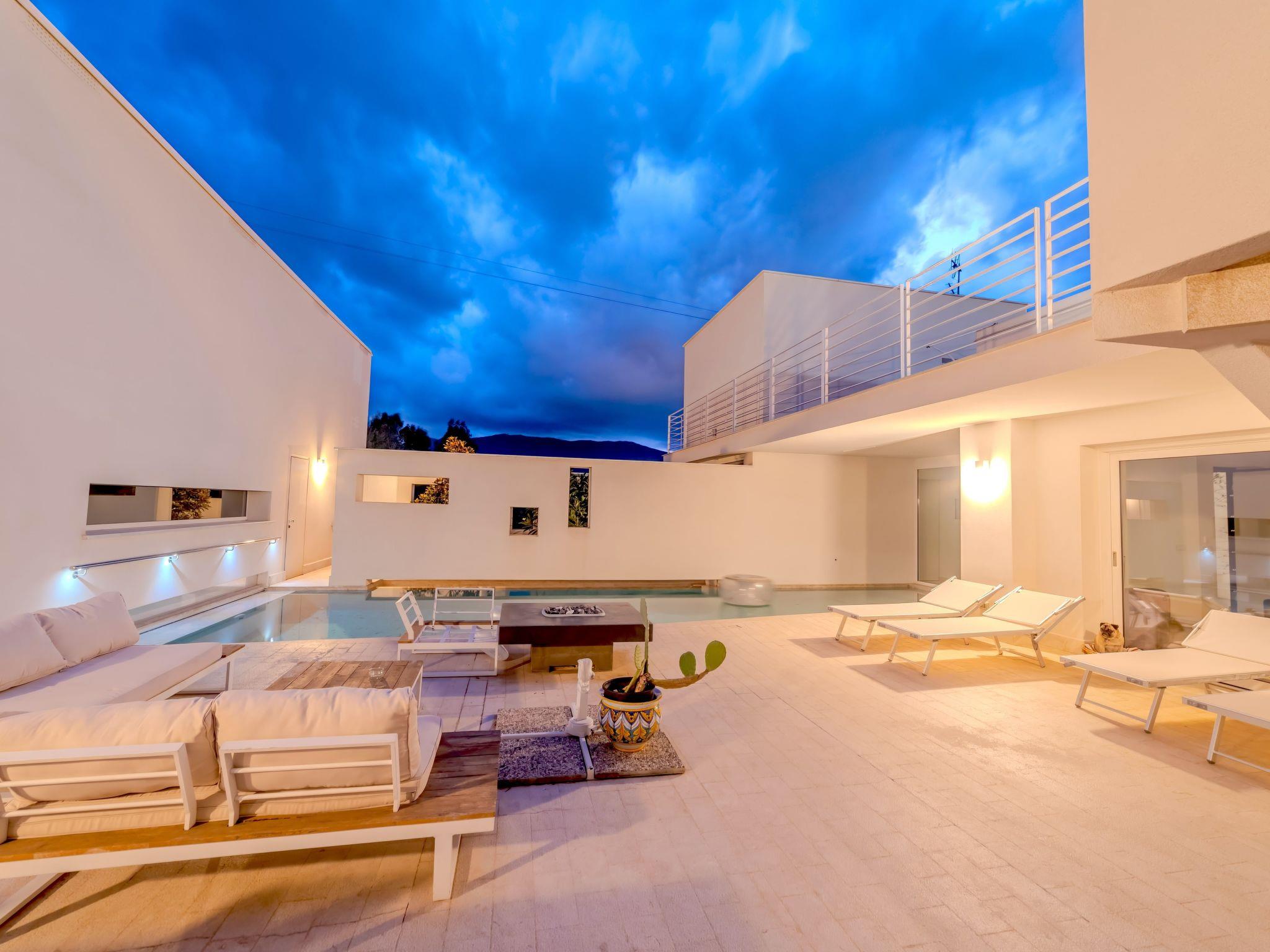 The very elegant property has 3 spacious double bedrooms, one of which is en-suite. One bedroom shows a living room and a double bed in the loft. The open-air internal courtyard, hosts swimming pool (10x3) and opens on all sides of the house with spectacular windows.