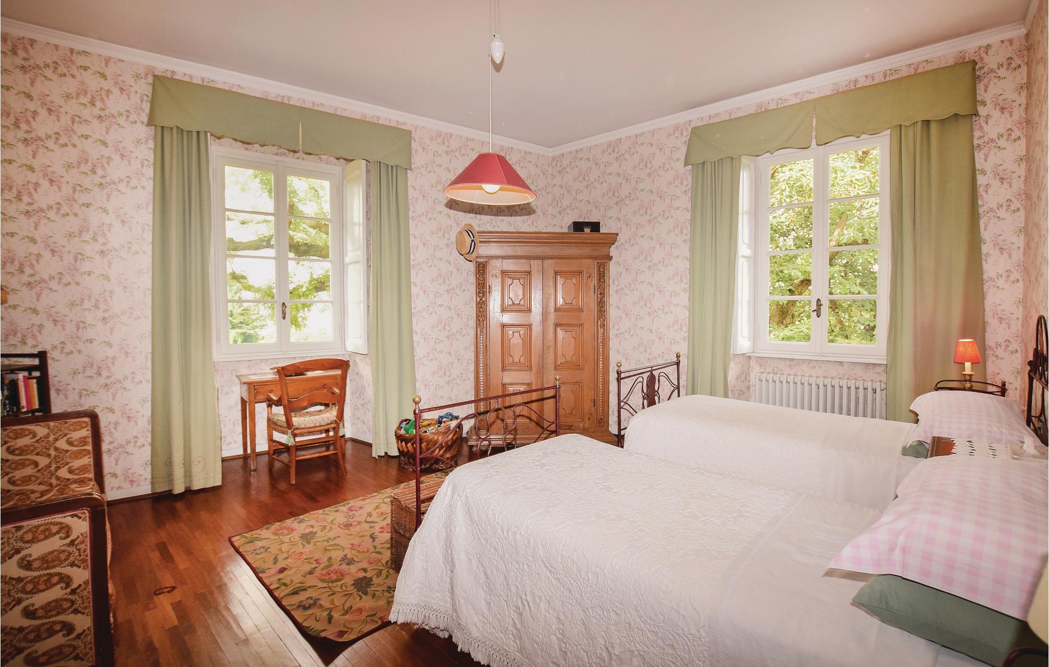 I første etasje, soveområdet med en stor lobby, en dobbel suite med eget bad, to doble soverom med delt bad og et fjerde soverom med to enkeltsenger med eget bad.