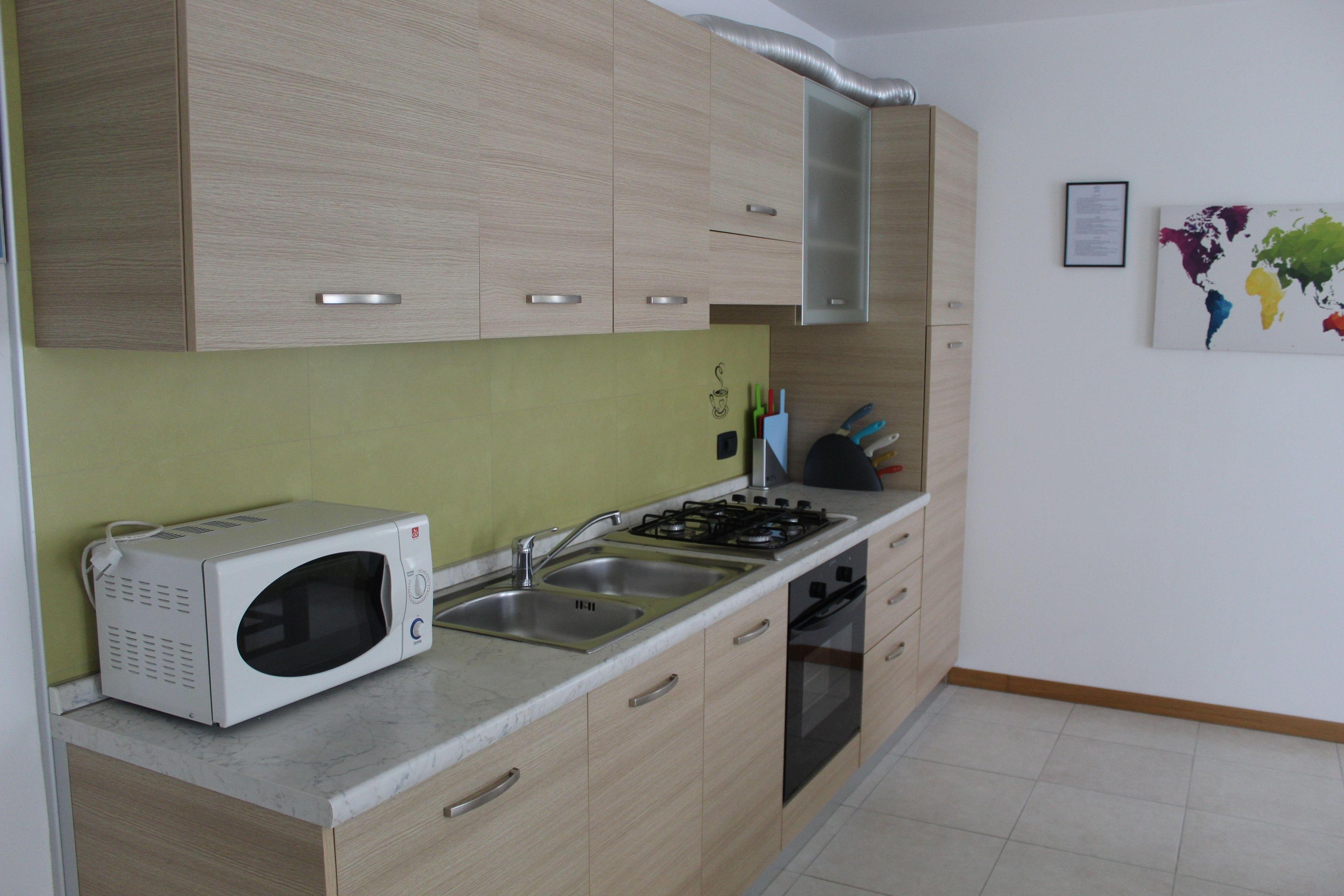 Der geräumige und gemütliche Wohnbereich ist mit einem bequemen Sofa, Satellitenfernsehen und einem Esstisch mit Stühlen ausgestattet, ideal für gesellige Momente. Die integrierte und komplett ausgestattete Küche verfügt über einen Kühlschrank mit Gefrierfach, einen Backofen, einen Gasherd mit 4 Kochfeldern, eine Mikrowelle und eine Kaffeemaschine: alles, was Sie brauchen, um sich wie zu Hause zu fühlen.