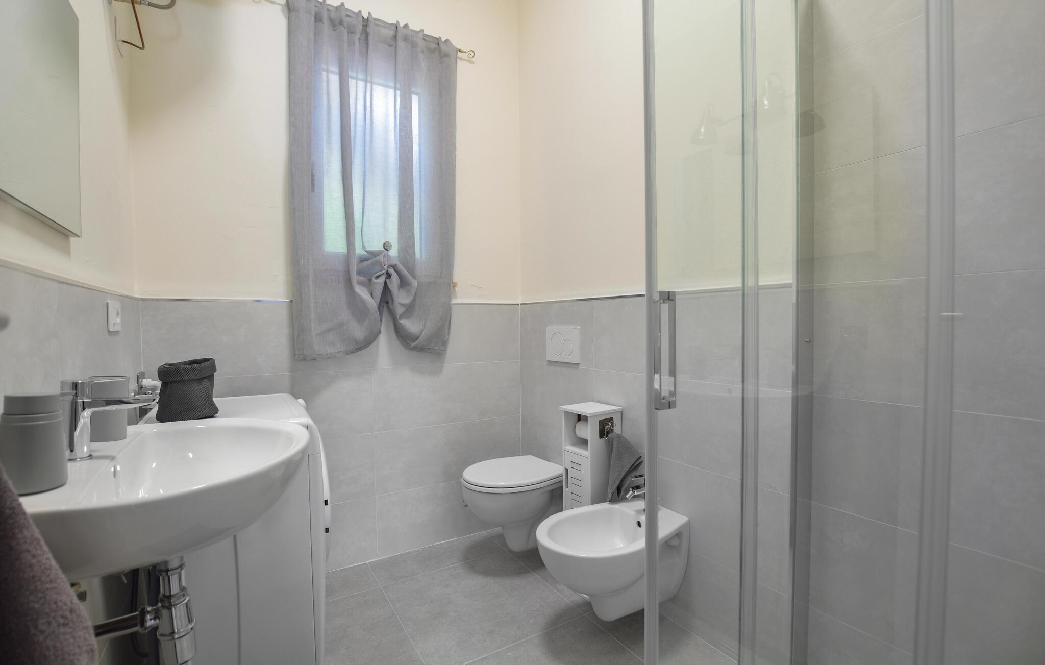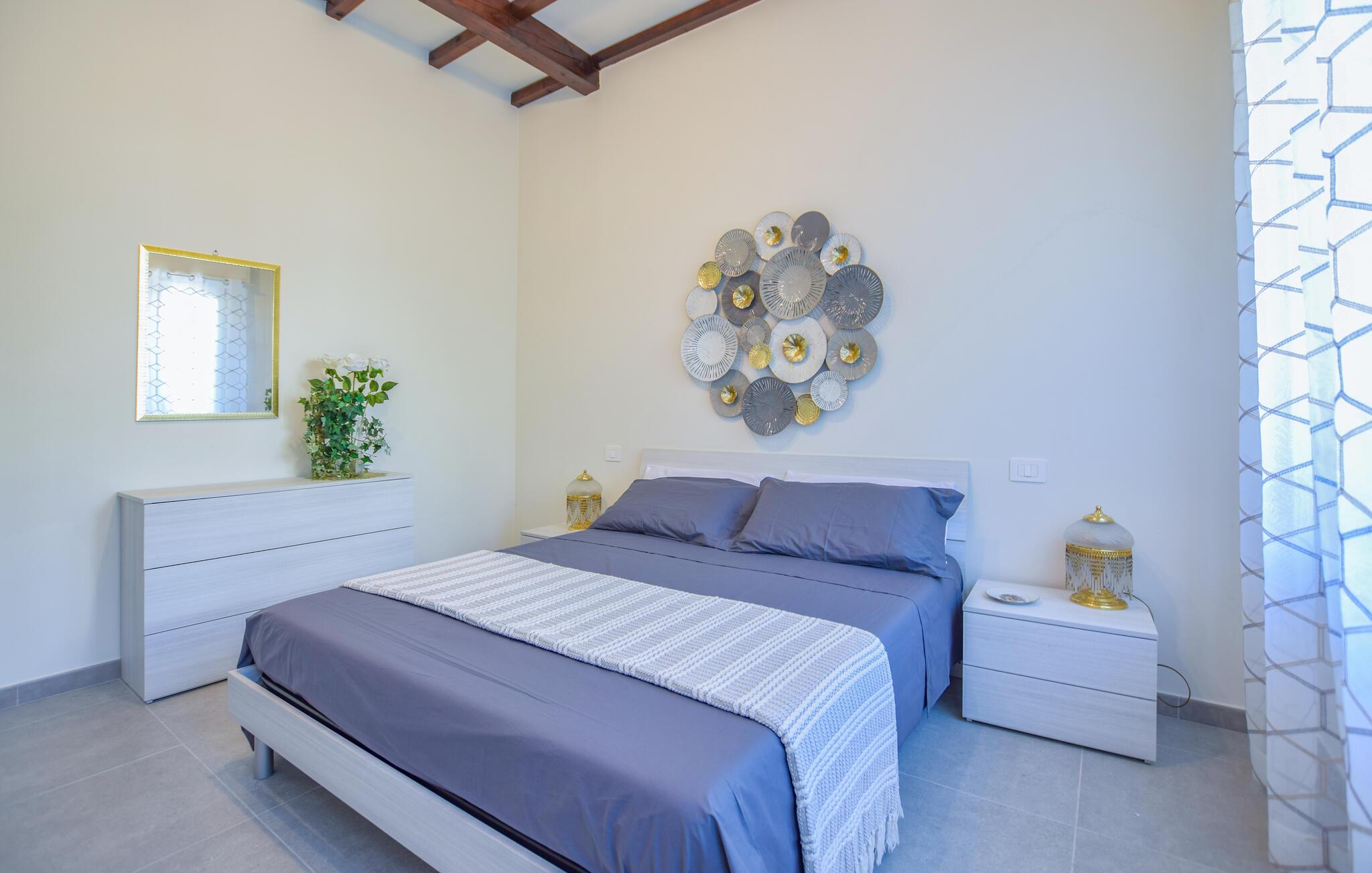 Nyt en avslappende ferie i denne smakfulle leiligheten. Den stilfulle innredningen kombinerer moderne komfort med italiensk sjarm og skaper en koselig atmosfære som gjør at du vil føle deg som hjemme. Det lyse, romslige interiøret er kjærlig utformet og tilbyr deg alle bekvemmeligheter du trenger for en avslappende ferie.