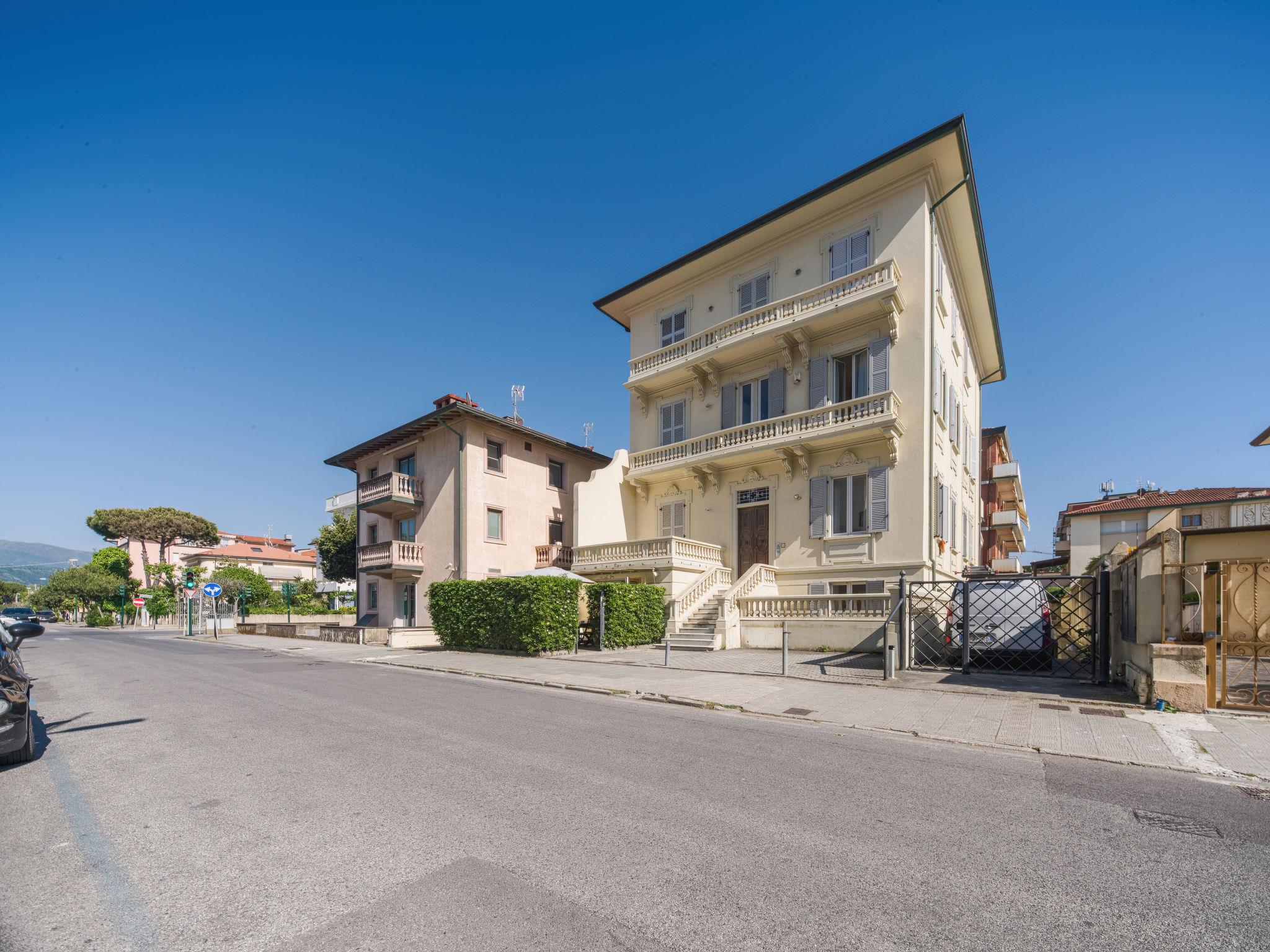 Lido di Camaiore: Large, cosy, historical apartment block, 4 storeys. 8 apartments in the property. 100 m from the centre, in a central, sunny position in the residential district, residential area (villas), 50 m from the sea, 50 m from the beach. Heating available only from 01.Nov. - 07.Apr.. Public parking on the road extra. Shop 50 m, grocery 100 m, supermarket 1 km, shopping centre, restaurant, bar, bakery, pedestrian zone 100 m, bicycle rental 300 m, bus stop 100 m, railway station "Viareggio" 4 km, sandy beach, public bathing area 100 m. Sports harbour 5 km, golf course (18 hole) 13 km, surf school 100 m, sailing school 1 km, tennis 1.5 km, sports centre 2.5 km, cycle lane 100 m. Nearby attractions: Firenze 100 km, Lucca 25 km, Pisa 25 km, Pietrasanta 6 km, Forte dei Marmi 10 km, Cinque Terre 65 m. Well-known lakes can easily be reached: Massaciuccoli 10 km. Hiking paths: Sentieri Alpi Apuane 15 km. Please note: suitable for families.