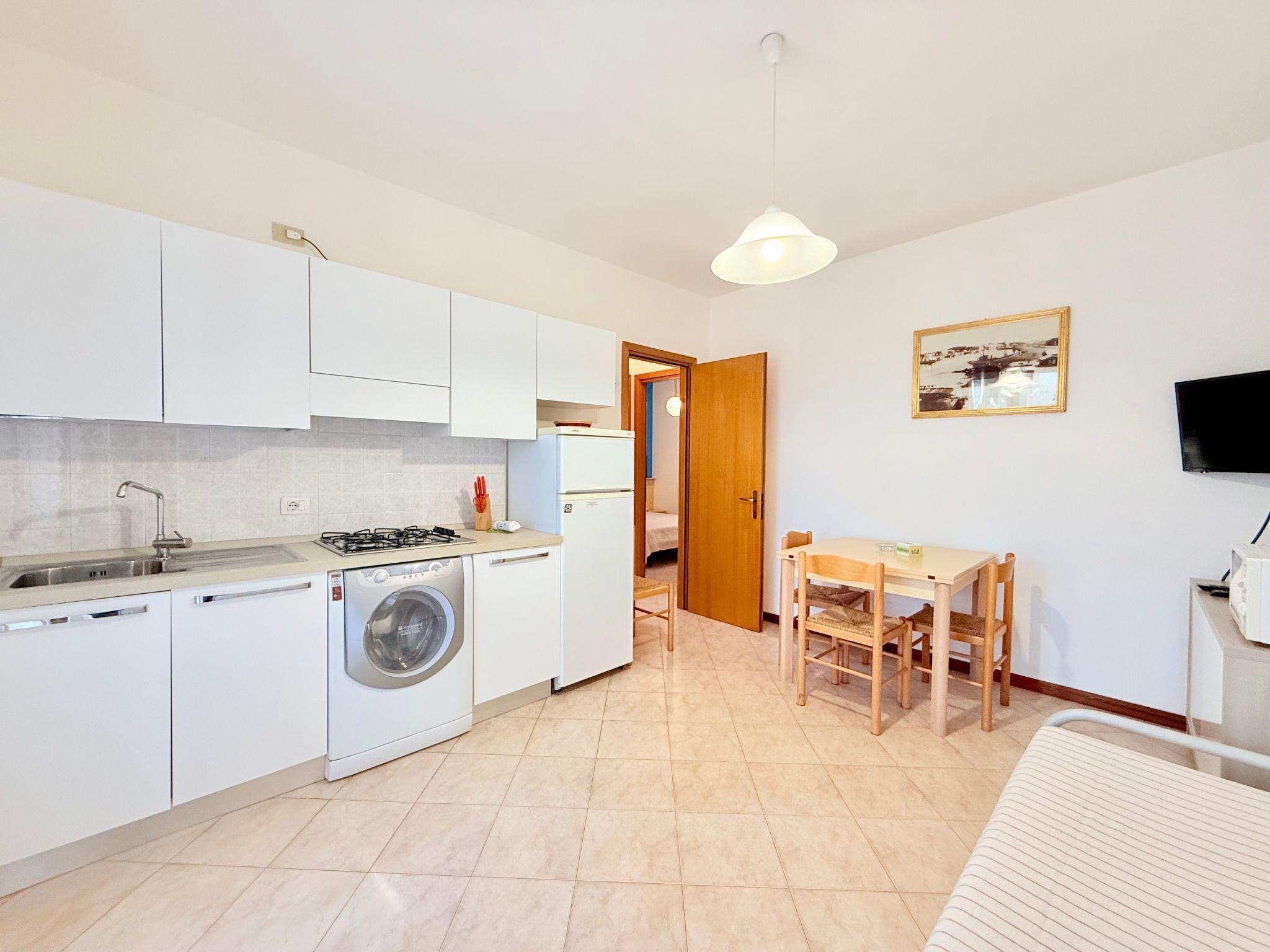 The flat is on the 1st floor and consists of a living room with kitchenette (cooker, fridge, freezer and washing machine) and a sofa bed for two persons, bedroom with double bed, bedroom with two single beds, bathroom with shower and a covered terrace with barbecue.