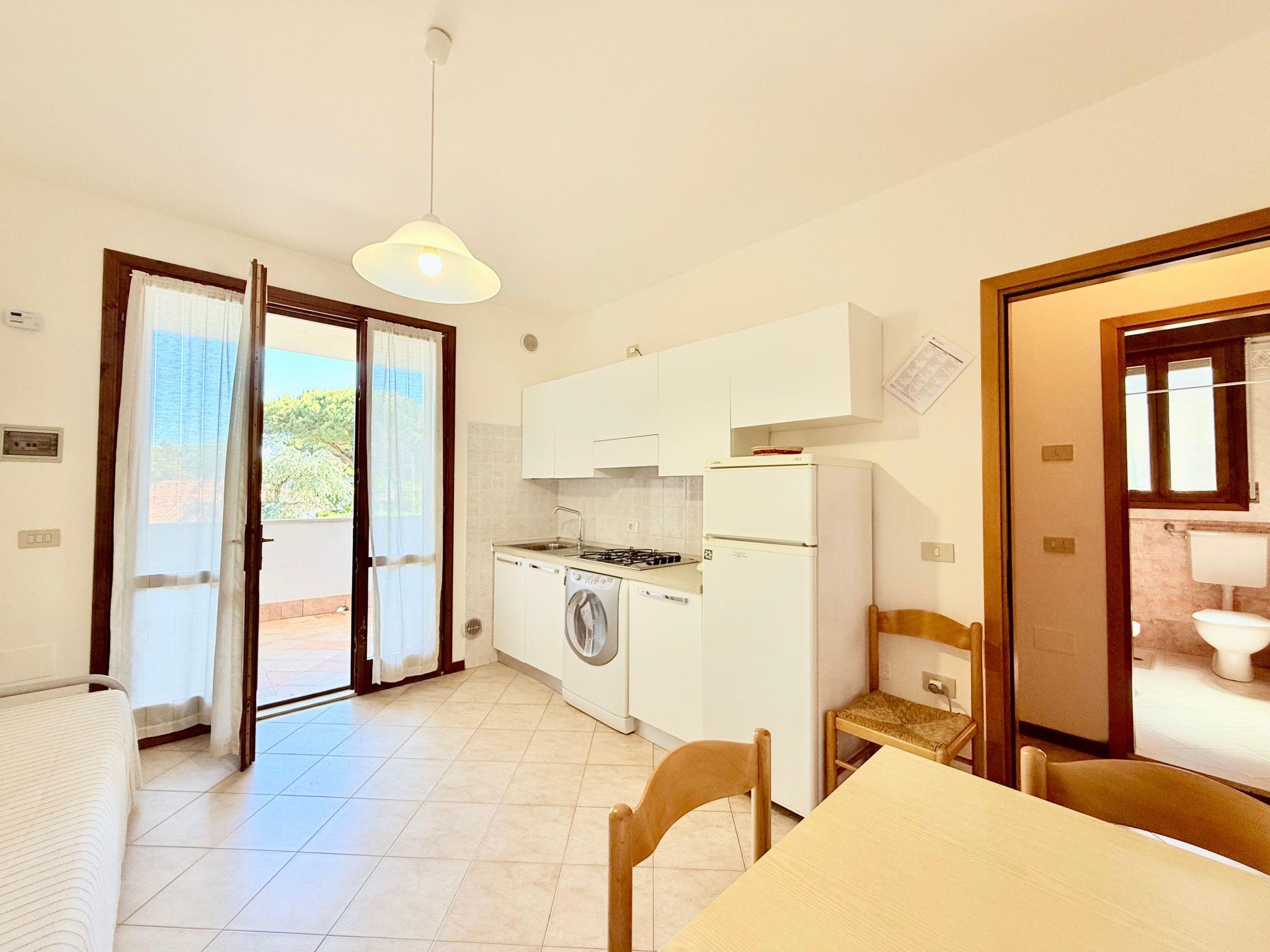 Complex of small villas, located about 600 m from the sea and 350 m from the centre. The cottage has its own entrance and garden and is situated on the 1st floor; large terrace with fireplace, parking space.