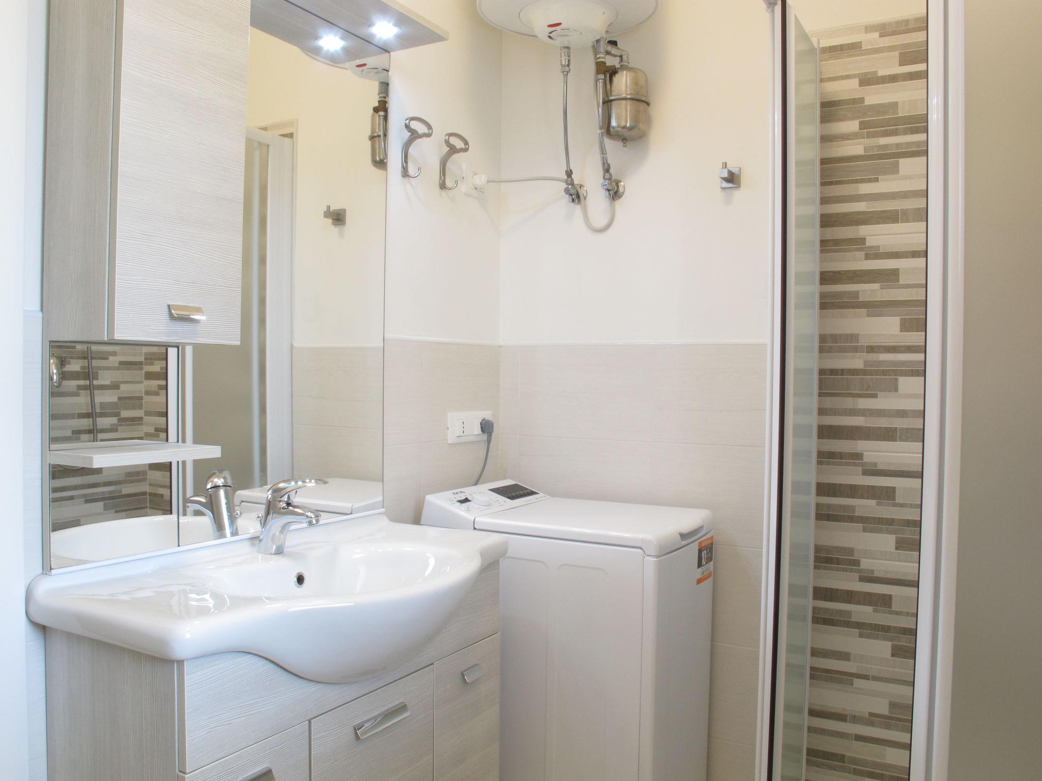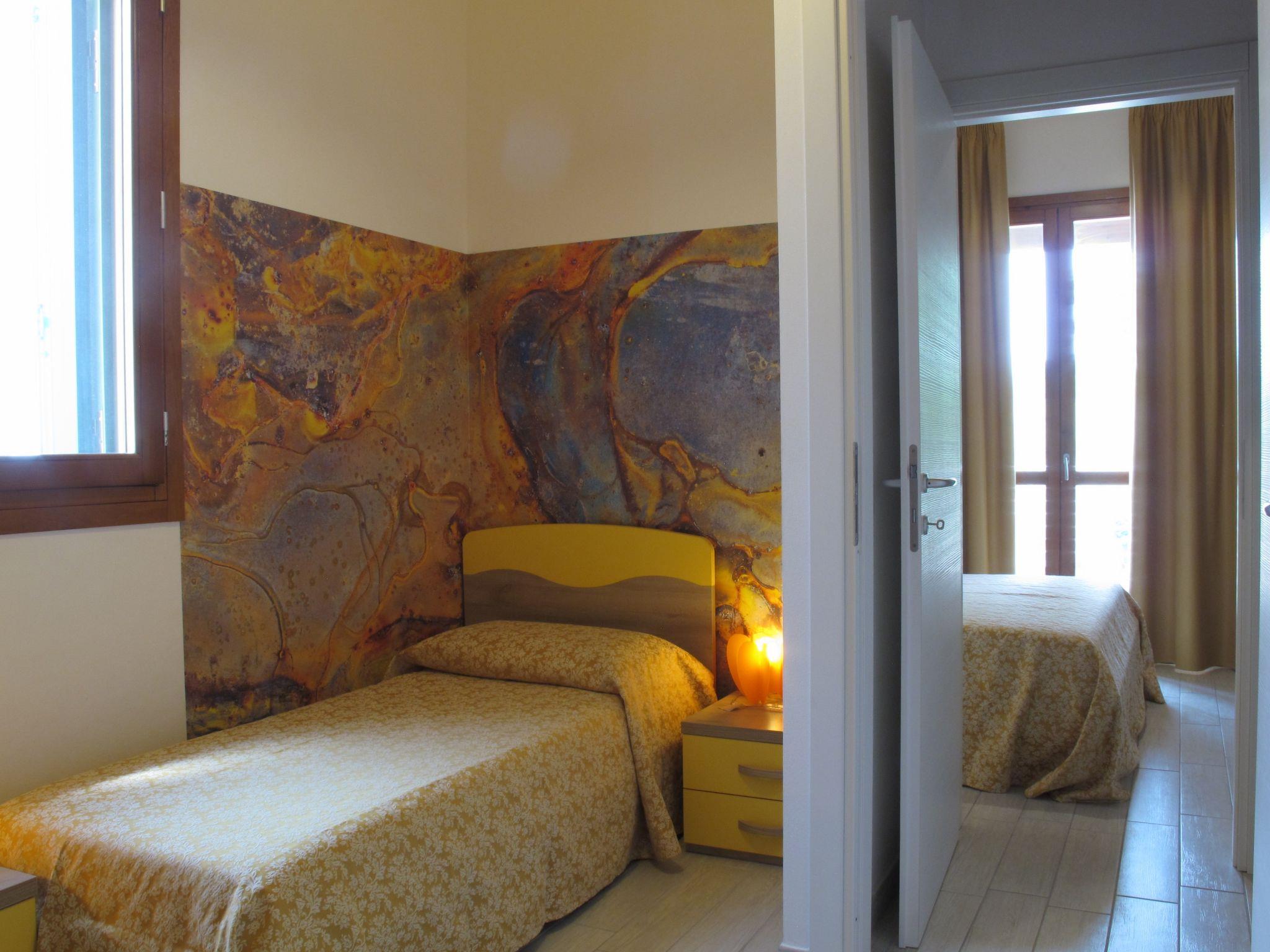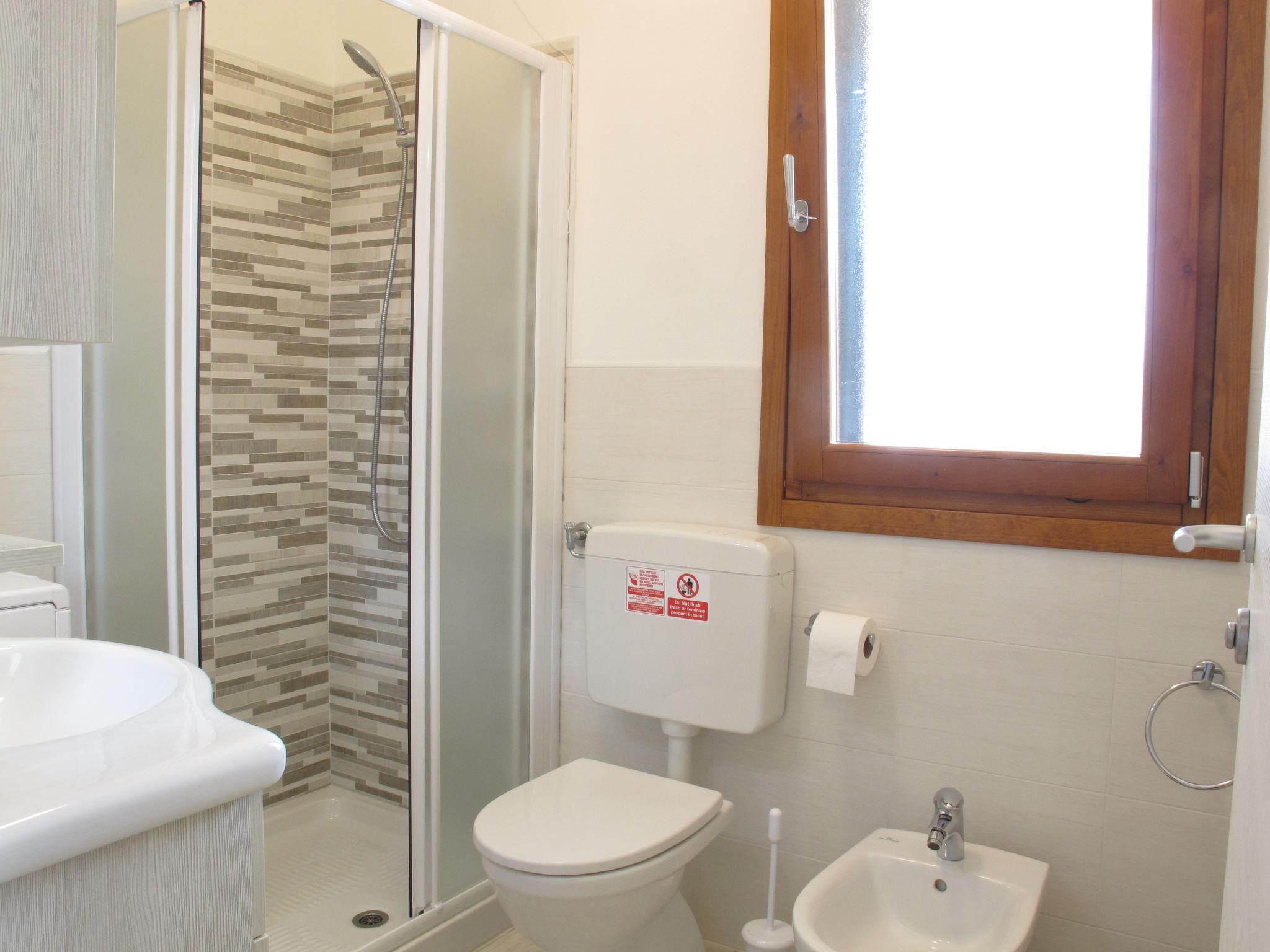 "Jolanda", 3-room terraced house 60 m2 on 2 levels. Bright, comfortable furnishings: living/dining room with satellite TV and air conditioning. Exit to the garden, to the terrace. Open kitchen (dishwasher, 4 induction hot plates, toaster, kettle, microwave, freezer). Shower/bidet/WC. Upper floor: 1 double bedroom with air conditioning. Exit to the balcony. 1 room with 2 beds. Electric heating. Balcony 10 m2, terrace 18 m2, roofed, garden 45 m2. Terrace furniture. Facilities: washing machine, iron, mosquito net. Internet (WiFi, free). Parking (fenced 1 car) at the house, width 230 cm. Please note: suitable for families. Non-smoking house. Private entrance. IT038006B4KCD3WF7D