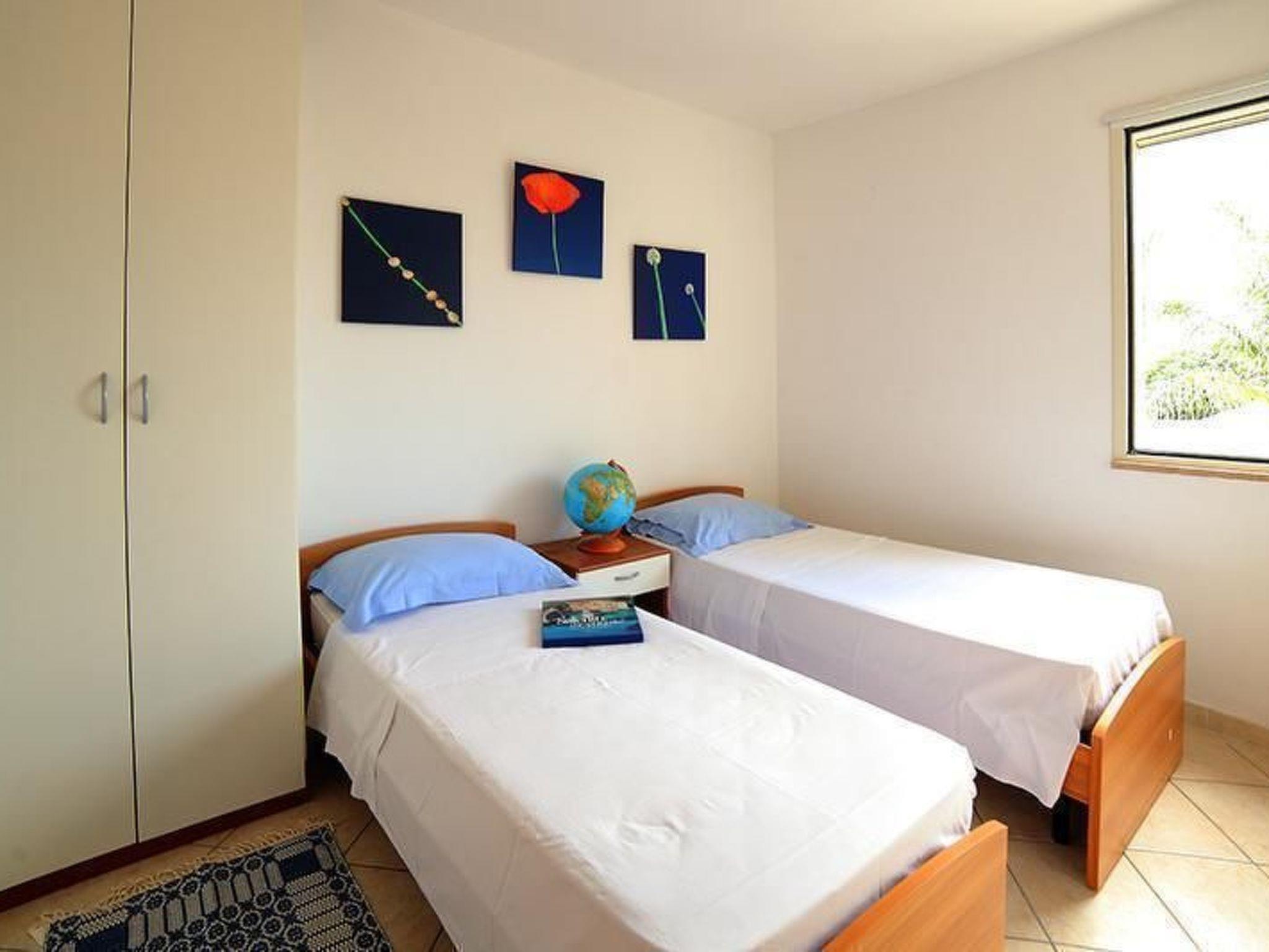 The three-room apartment for four people is on the second floor and consists of a living room-kitchen with a dining area, a bedroom with a double bed, a bedroom with two single beds, and a bathroom.