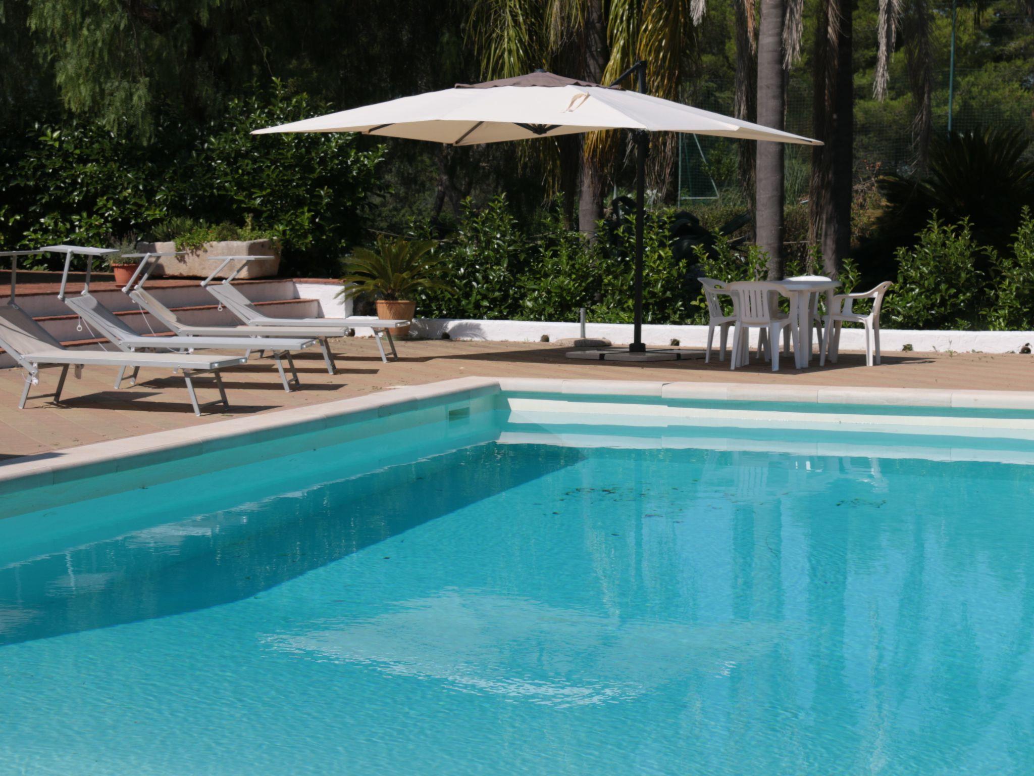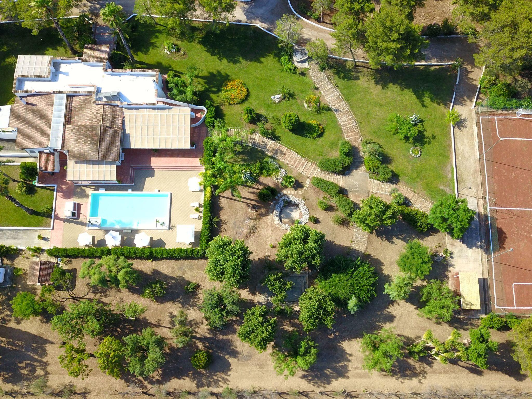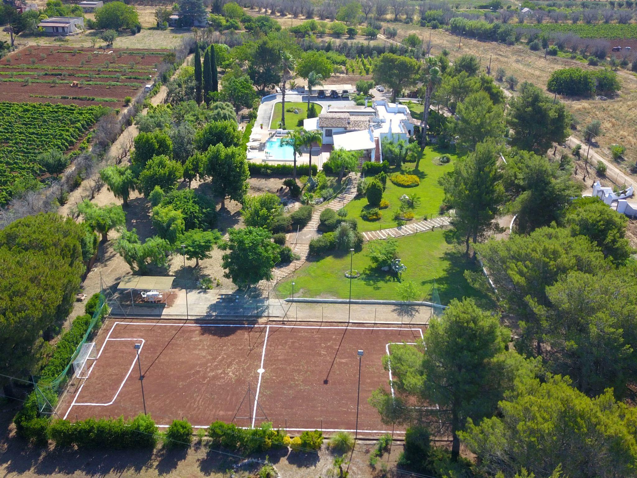 It has a large garden of 20,000 square metres immersed in Salento nature, surrounded by olive and fruit trees.
