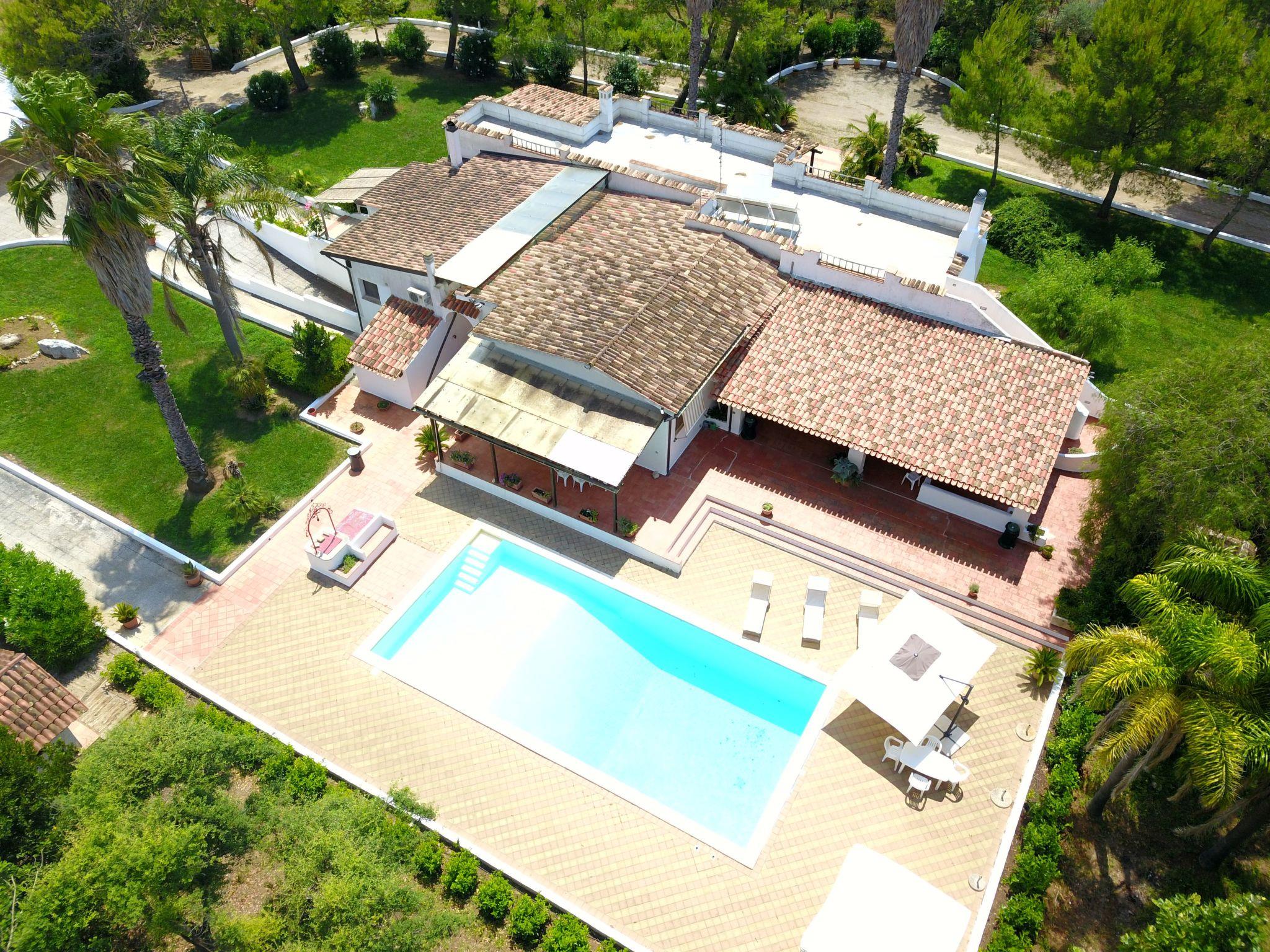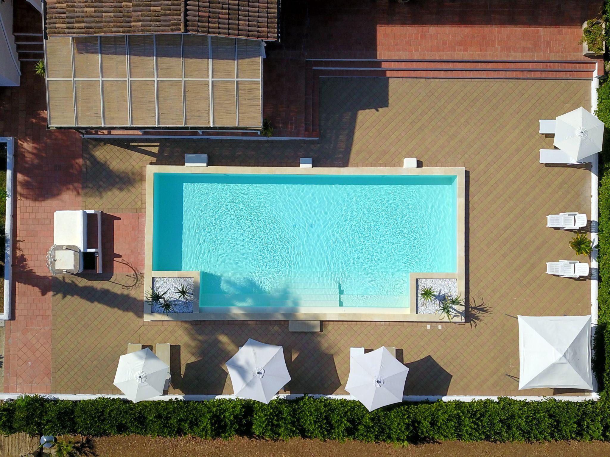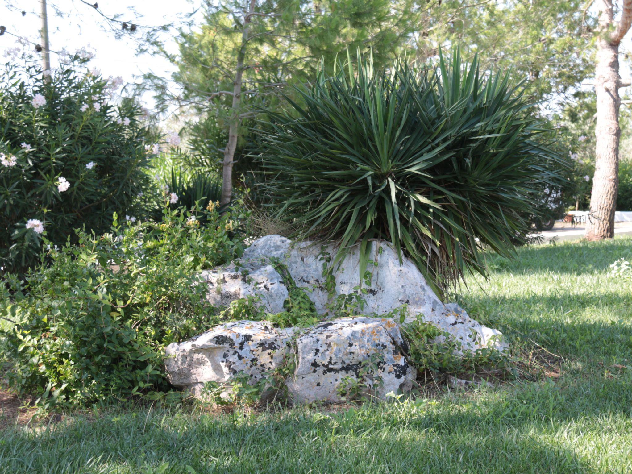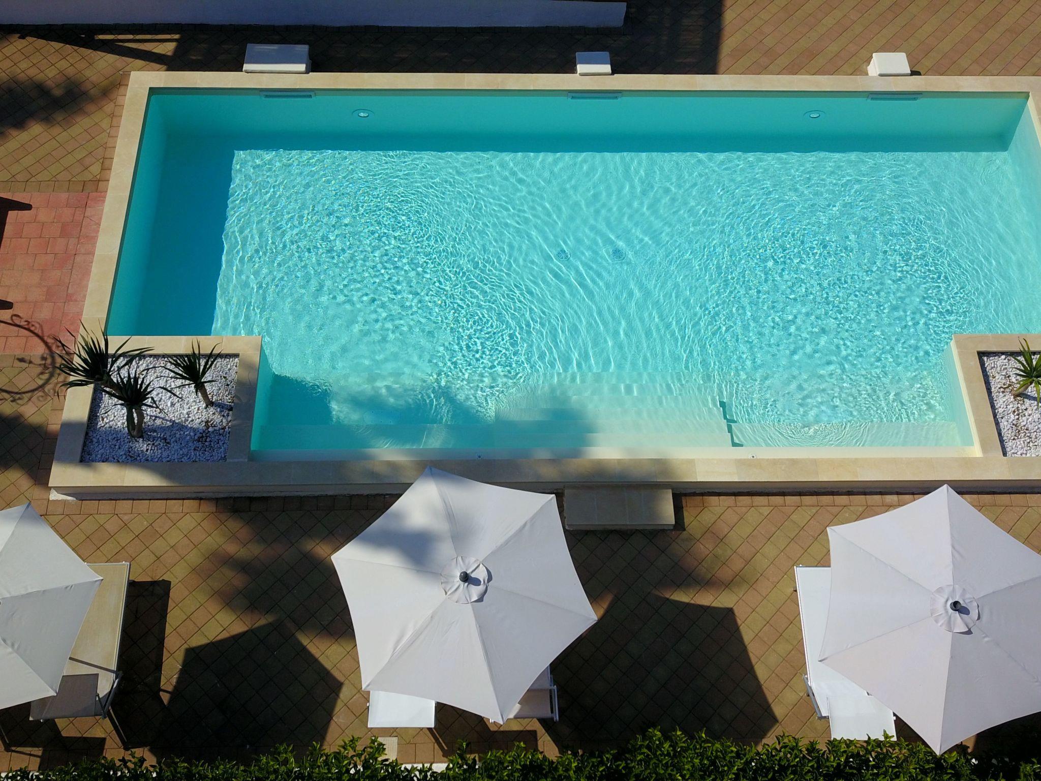 It has a large garden of 20,000 square metres immersed in Salento nature, surrounded by olive and fruit trees.