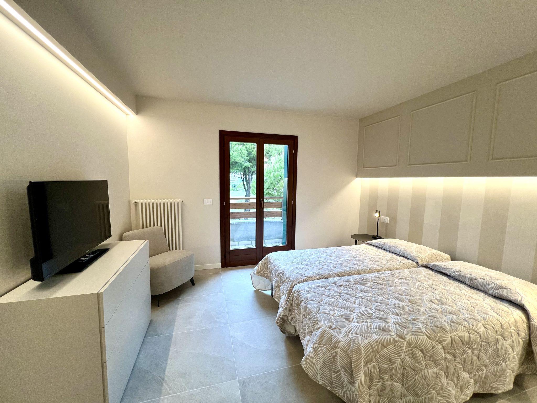 5-room terraced house 120 m2 on 3 levels. Partly renovated in 2024, tasteful and stylish furnishings: living/sleeping room with 2 sofabeds, dining table and satellite TV. Exit to the terrace. Kitchen (dishwasher, Gas stove, 4 gas rings, kettle, microwave, freezer, electric coffee machine). Exit to the terrace. Shower/WC. Upper floor: 2 double bedrooms. Shower/bidet/WC. Top floor: 2 rooms, each room with 2 beds. Shower/bidet/WC. Gas heating, air-conditioning. 3 balconies, terrace roofed, garden. Terrace furniture, barbecue, deck chairs (3). Facilities: washing machine, safe, baby cot for up to 2 year olds (extra). Internet (WiFi, free). Garage on the property (2 cars) at the house. Maximum 1 small pet/ dog allowed. Plus electric coffee machine for espresso ("Lavazza A Modo Mio"). IT030049B4FFJTA24R