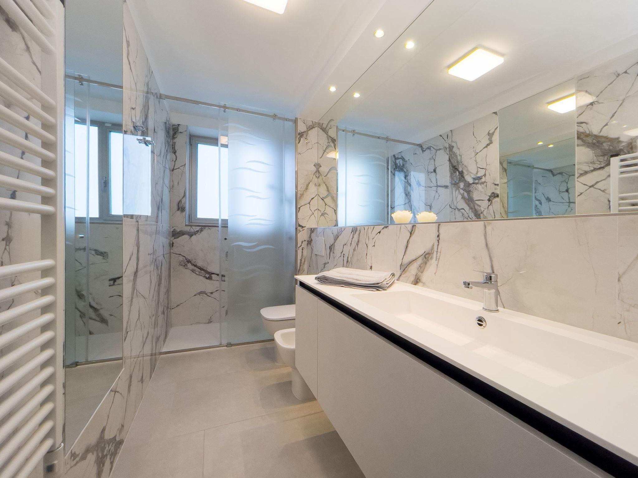 3-room apartment 70 m2, on the upper floor. Spacious and bright, beautiful and modern furnishings: living/sleeping room with 1 double sofabed, dining table, satellite TV and international TV channels. Exit to the balcony. 2 rooms, each room with 1 bed, 1 double bed, satellite TV and international TV channels. Kitchenette (dishwasher, 4 induction hot plates, kettle, microwave, freezer, electric coffee machine). 2 showers/bidet/WC. Air-conditioning, forced-air heating. Balcony 75 m2. Balcony furniture, deck chairs (3). Facilities: washing machine, safe, hair dryer. Internet (WiFi, free). Parking space n no minibus (2 cars) at the house. Please note: non-smokers only. 1 small pet/ dog allowed. IT030049B4MWA366TP