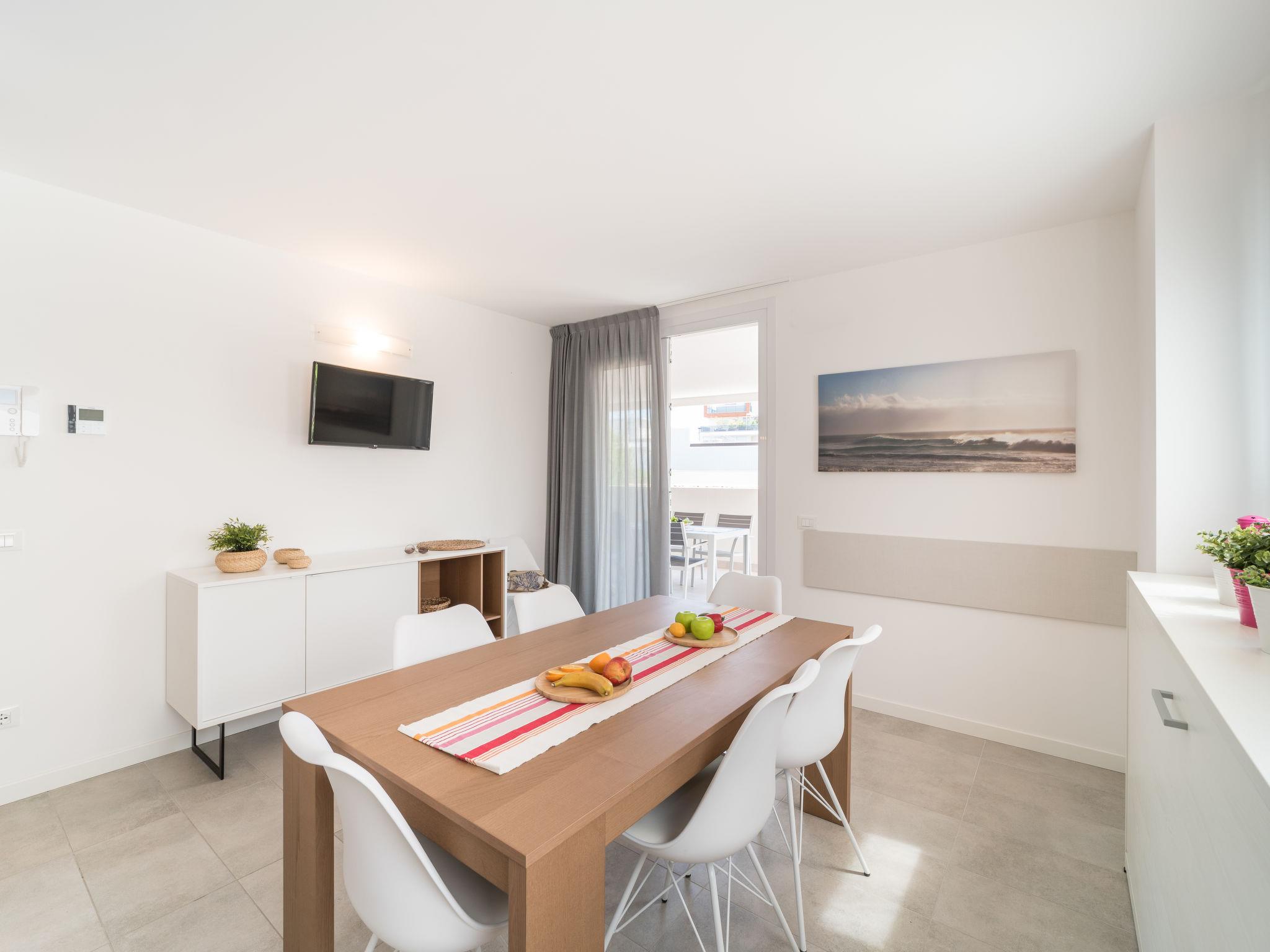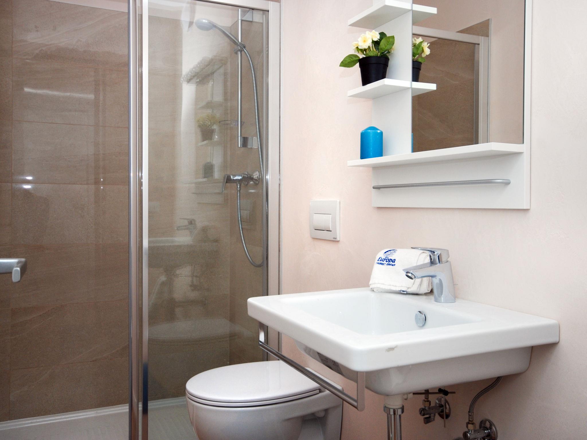 4-room apartment 50 m2. Beautiful and stylish furnishings: living/sleeping room with 1 fold-away bed (80 cm, length 180 cm), dining table, kitchen corner, satellite TV, air conditioning and forced-air heating. Exit to the balcony. 1 double bedroom with air conditioning and forced-air heating. 1 room with 2 beds, air conditioning and forced-air heating. 1 room with 1 bed, air conditioning and forced-air heating. Open kitchen (dishwasher, 4 induction hot plates, Gas stove, microwave, freezer, electric coffee machine). 2 showers/WC. Balcony. Balcony furniture. Facilities: mosquito net, children's high chair, baby cot. Internet (WiFi, free). Parking space n (max. 5 m length) (1 car), height 210 cm, width 250 cm. Maximum 1 pet/ dog allowed. No mandatory extra charges to be paid on-site except for local tax. Bedlinen, towels, final cleaning and all energy costs are included. IT030049B478HIA7LU