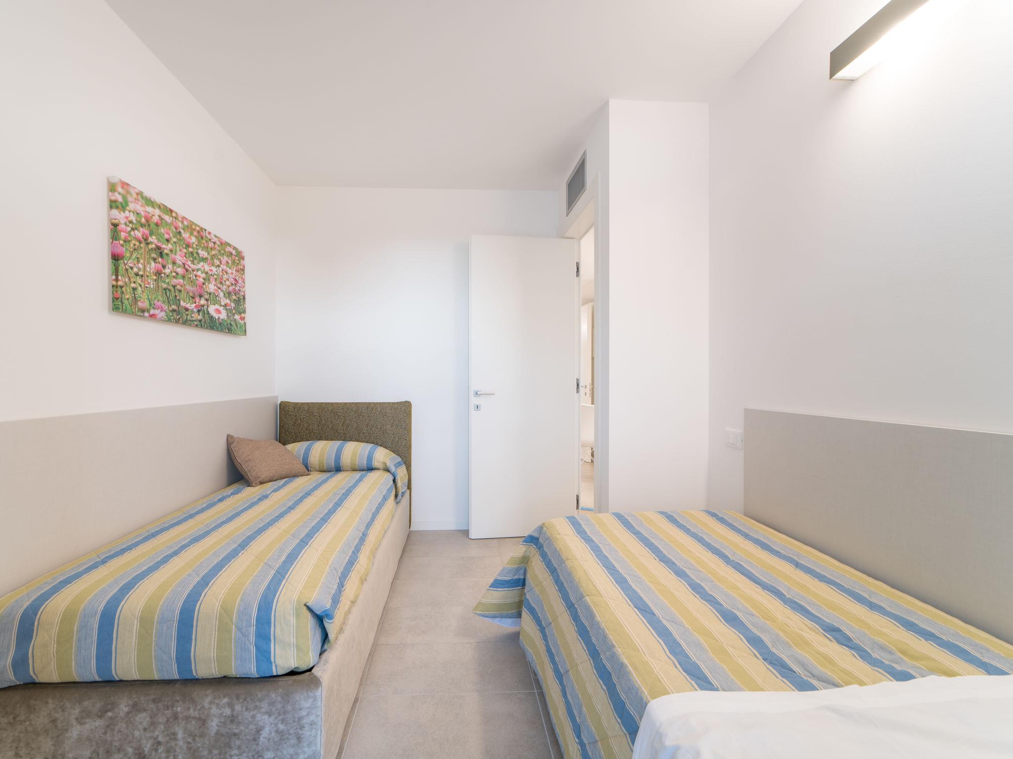 Apartment block "Torre Bianca", 8 storeys, built in 2019. 17 apartments in the residence. In the district of Sabbiadoro 250 m from the centre of Lignano-Sabbiadoro, 13 km from the centre of Bibione, 95 km from the centre of Trieste, 400 m from the sea. In the house: lift, washing machine (for shared use, extra), bicycle rental. Parking at 180 m. Supermarket 350 m, pedestrian zone, bus stop 250 m, railway station "Latisana (Milano-Venezia-Triest)" 20 km, sandy beach 400 m. Marina 1.2 km, golf course (18 hole) 7.2 km. The owner does not accept any youth groups. Please note: Loading and unloading of baggage is possible at the holiday house. Beach service: From approx. the beginning of May to approx. mid-September, 1 sun lounger, 1 deck chair and 1 parasol per accommodation unit are included in the rental price.