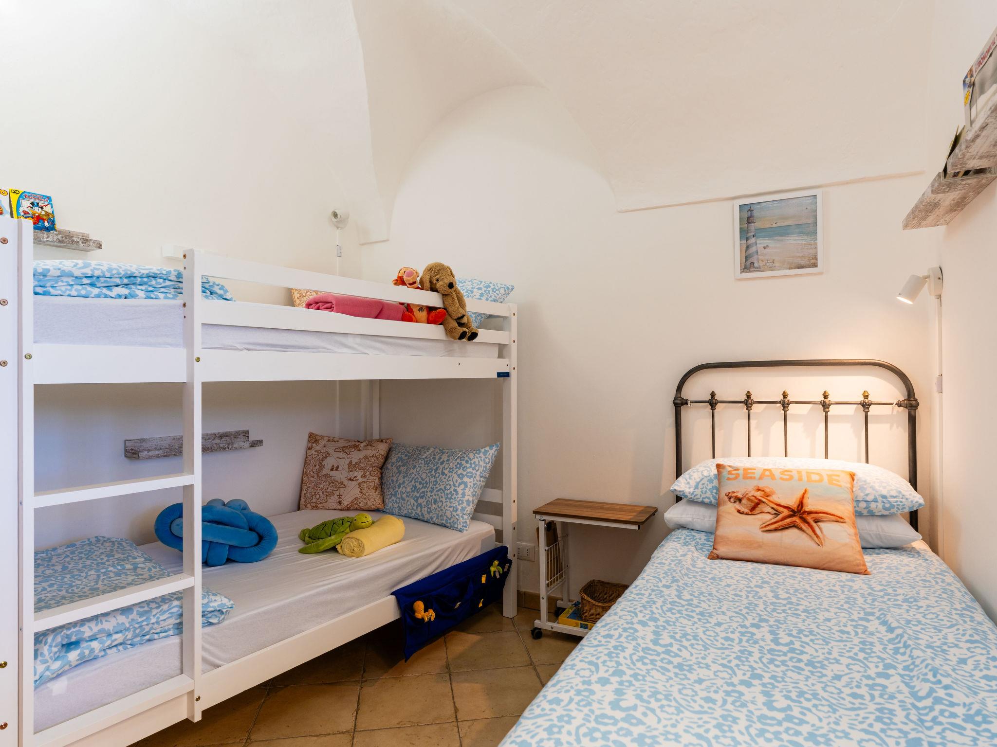 "Terrazza Bella Vista", 3-room apartment 70 m2, on the upper ground floor. Spacious and bright, fully renovated in 2025, tasteful and cosy furnishings: 1 room with 1 double bed (1 x 160 cm, length 200 cm). 1 room with 1 bed (80 cm, length 200 cm), 1 x 2 bunk beds (80 cm, length 200 cm). Living/dining room. Exit to the terrace. Open kitchen (oven, 4 gas rings, toaster, kettle, microwave, freezer, grill, electric coffee machine). Shower/bidet/WC. Heating. Heating available only from 15.10. to 20.04. Parquet floors. Small terrace, south facing position. Terrace furniture, electric barbecue. Marvellous panoramic view of the sea and the resort. Facilities: washing machine, dryer, iron, mosquito net, hair dryer. Internet (WiFi, free). Please note: private entrance, smoke alarm, fire extinguisher. IT008021C2M2UB9UX8