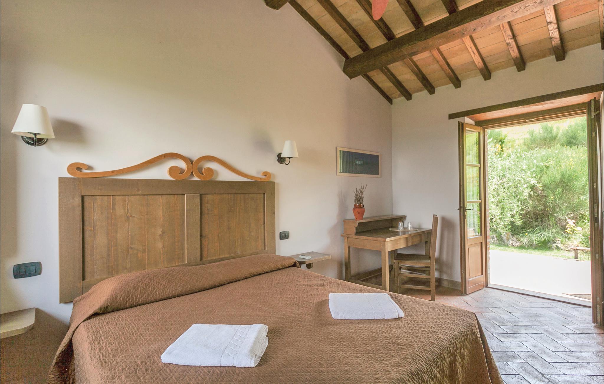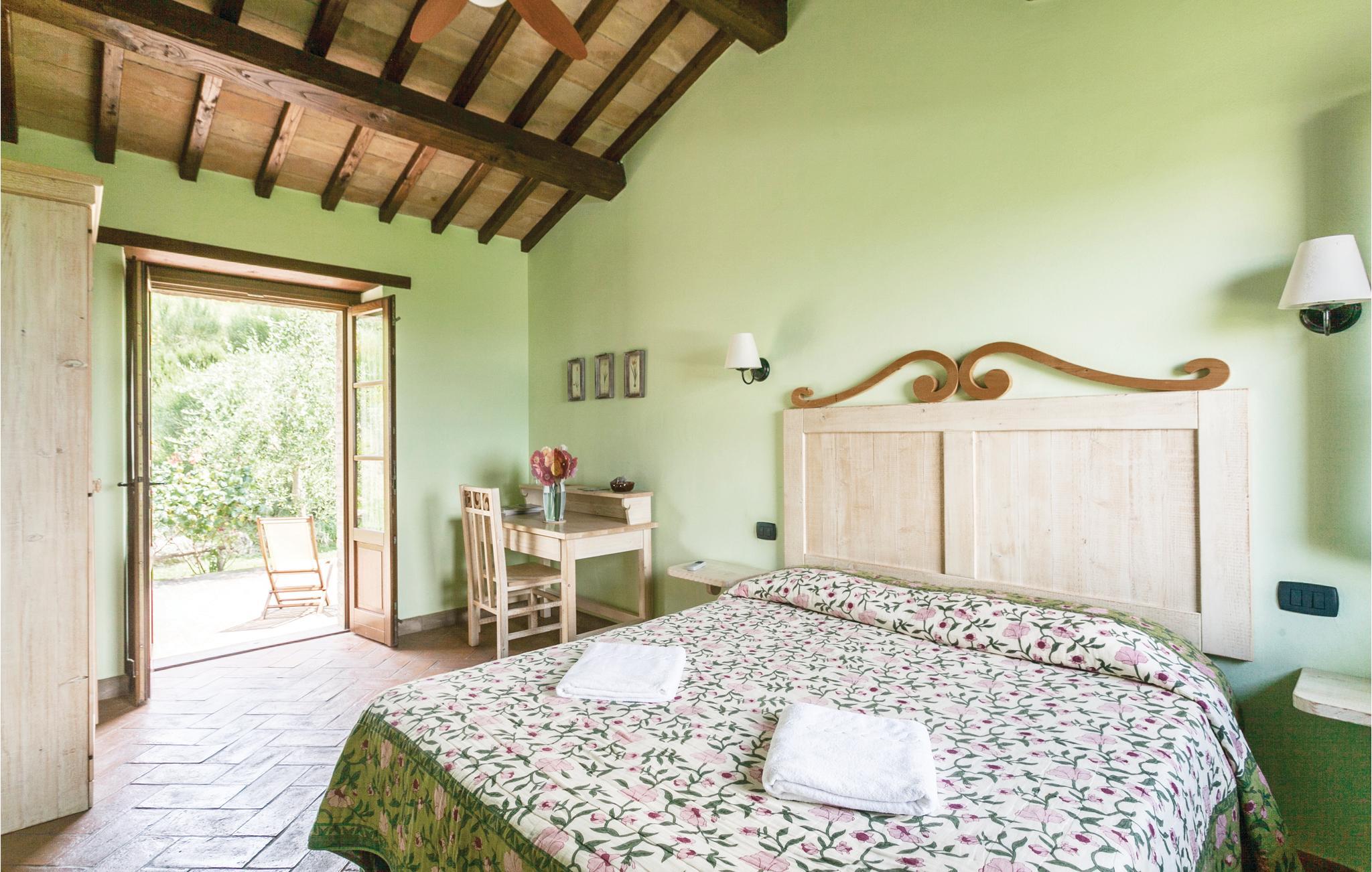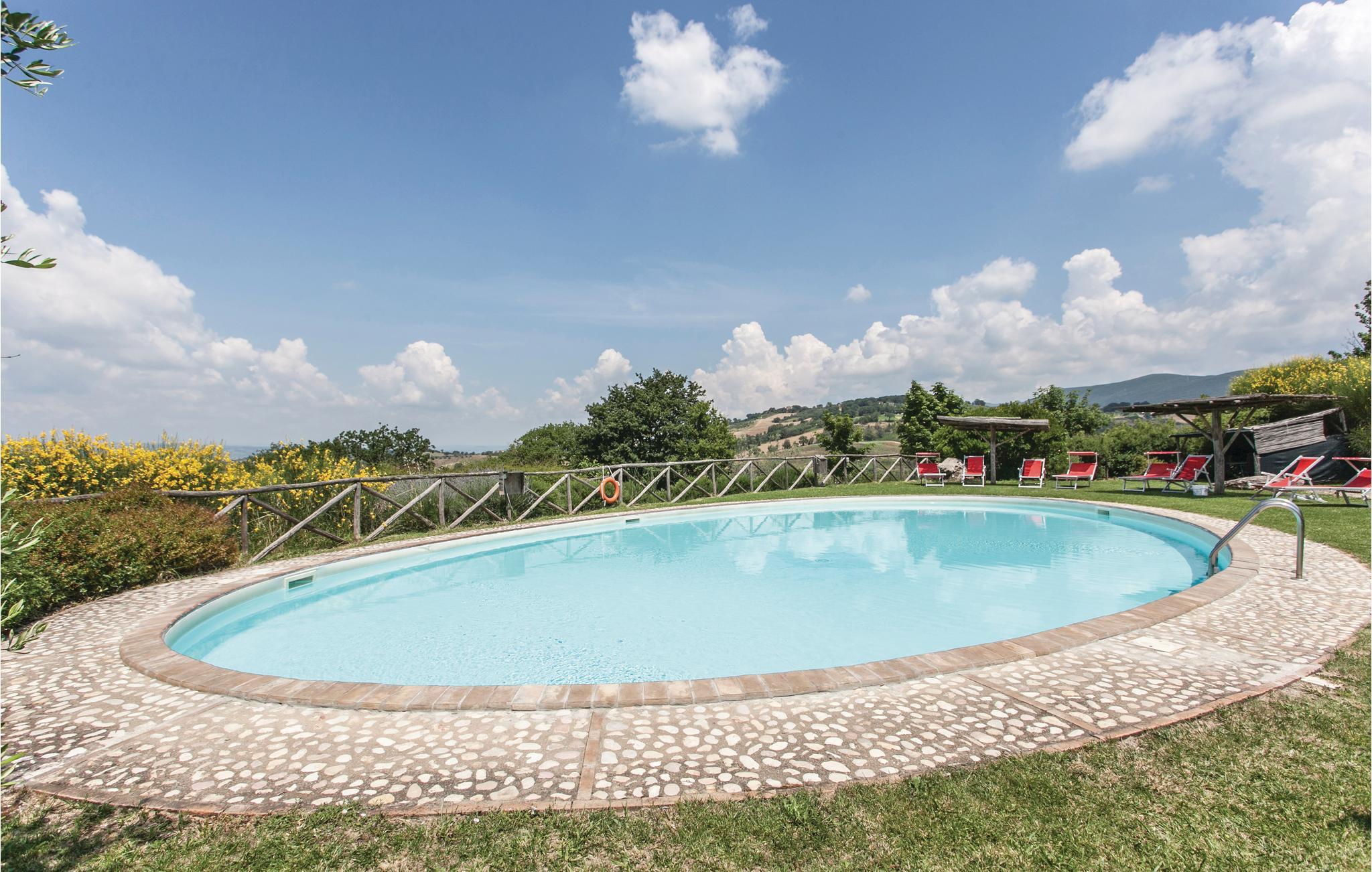 Nyt oppholdet i dette nennsomt restaurerte landstedet fra 1800-tallet med panoramautsikt på en høyde rik på vinmarker og olivenlunder, på landsbygda ca. 5 km fra Lugnano in Teverina. Det runde bassenget byr på avslapping i privatlivets fred med en fantastisk 360-graders utsikt over grønne åser og vingårder. Foran hovedhuset er det et lekeområde for barn og et lysthus der foreldrene kan slappe av i den velstelte hagen mens barna leker. Soverommene ligger i hovedbygningen, mens det i uthuset er en stor spisestue med peis, et profesjonelt kjøkken og en terrasse mot vinmarkene. Eiendommen grenser til vinmarkene til eierens vingård, som gjerne viser deg rundt og inviterer deg til å smake på den utmerkede vinen. De to etasjene i våningshuset og soverommene med bad er ikke koblet sammen internt, og alle har uavhengig tilgang fra utsiden. Parkeringsplass på eiendommen. Tips til utflukter: Bolsenasjøen 45 km; Orvieto 35 km. Den vakre byen Roma (107 km) kan nås med tog fra Attigliano stasjon (4 km).