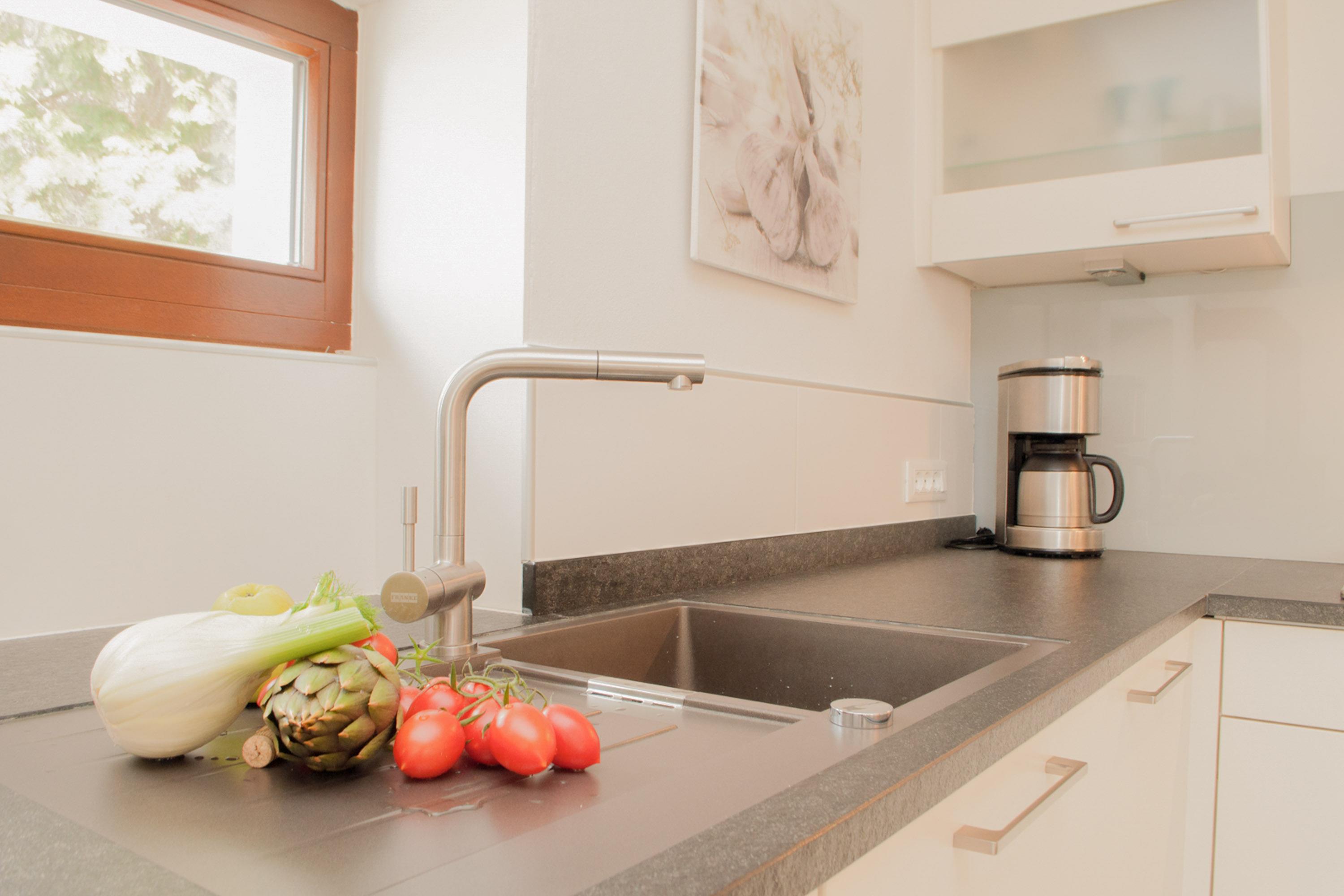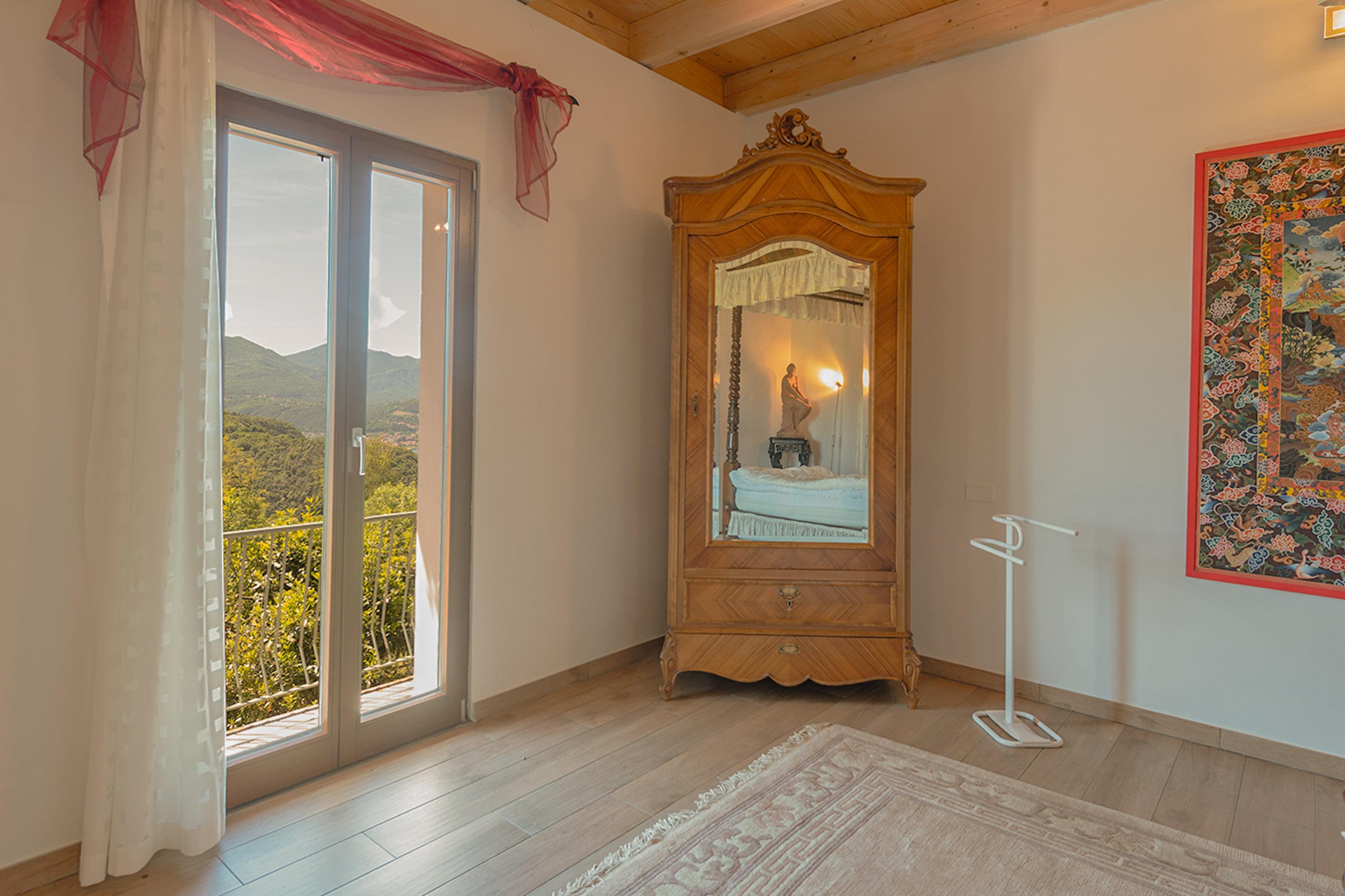 Eine Treppe führt vom Hausgang ins lichtdurchflutete Obergeschoss. Ein Schlafzimmer bietet ein Doppelbett, einen französischen Balkon mit traumhaftem Blick auf den See und einen großen Kleiderschrank sowie Regale und einen Sessel zum Entspannen. Ein weiteres Schlafzimmer ist mit einem antiken Himmelbett, einem Kleiderschrank und einer Kommode mit Spiegel ausgestattet. Das Obergeschoss bietet außerdem ein hochwertiges Badezimmer mit begehbarer Dusche, WC, Bidet, großem Waschtisch mit Schubladen und Seitenschrank, großer Spiegelfläche und ebenfalls Fußbodenheizung. Das 1950 erbaute Haus wurde im Juni 2015 von Grund auf saniert und sehr edel ausgestattet. Annehmlichkeiten wie eine Fußbodenheizung im ganzen Haus, hochwertiges Mobiliar sowie eine funktionell und sehr qualitativ eingerichtete Einbauküche lassen hier keine Wünsche offen.