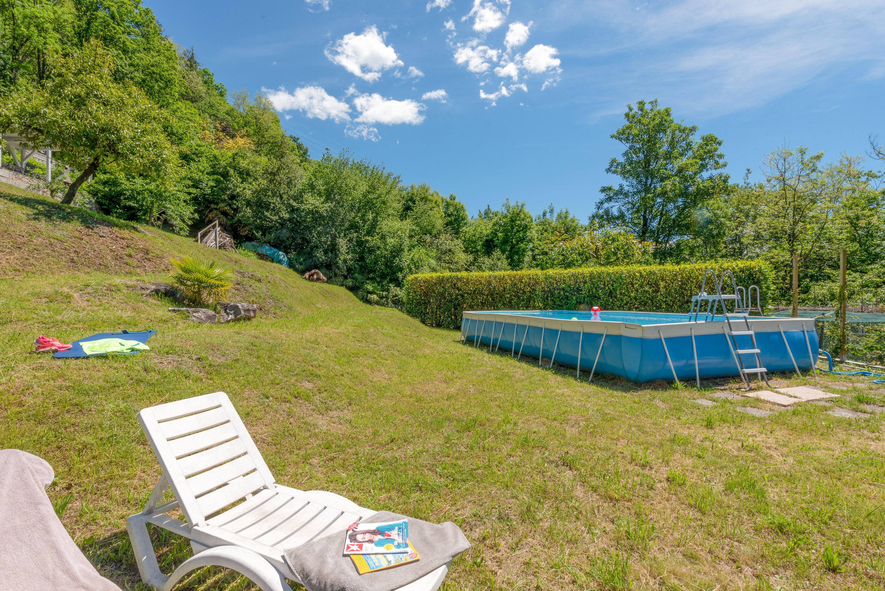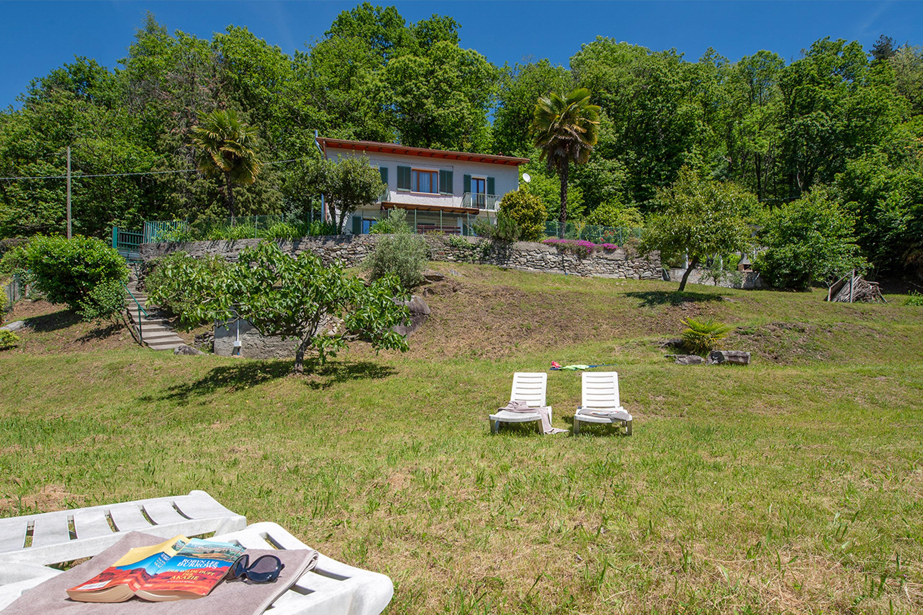 Das reizvolle Haus steht auf einer 1600 Quadratmeter großen, terrassierten Grundfläche, die vollständig umzäunt ist. Eine wunderschöne Pergola mit Sitzbereich und Liegen lädt zum Verweilen ein. Der liebevoll gestaltete Garten ist mit Blumen und Feigenbäumen, die Früchte tragen, bepflanzt. Im oberen Bereich befindet sich der große Parkplatz für zwei PKWs mit einer atemberaubenden Aussicht auf den See. Das Haus mit großer Terrasse, Rasenfläche und zahlreichen kleinen Plätzchen, die Schatten spenden, ist für Ruhesuchende wie geschaffen. Eine Hängematte, Liegestühle und Sitzgruppen stehen frei zur Verfügung und können nach Wunsch positioniert werden. Eine Steintreppe führt zum Pool-Bereich, der von Mitte Juni bis Ende September betrieben wird und sich unterhalb des Hauses befindet. Kinder können hier auch alleine eine Runde schwimmen, da der Pool von der oberen Terrasse aus gut einsehbar ist. Liegestühle zum Relaxen sind ebenfalls vorhanden. Eine große Rasenfläche zum Fußballspielen, Toben und Entspannen erwartet Sie an diesem reizvollen Ort.