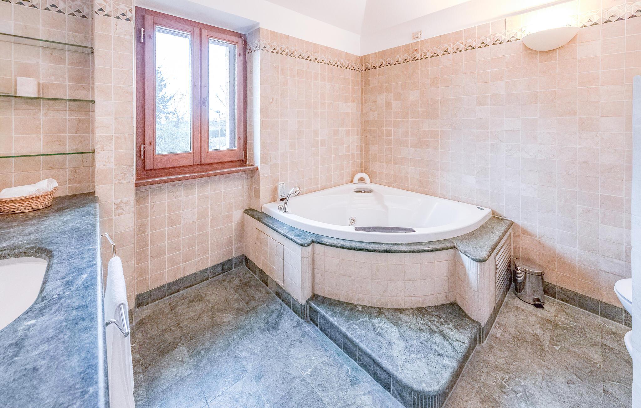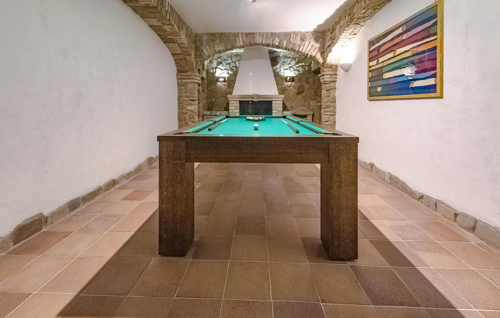 Slå deg ned i de komfortable sittegruppene i stuen og nyt det varme lyset som skinner inn gjennom de store vinduene. Slapp av foran peisen, og bruk den romslige spiseplassen til måltider med familie eller venner. Dekk langbordet og nyt sosialt samvær i en stilfull atmosfære. Innimellom kan du trekke deg tilbake til roligere områder og det innendørs boblebadet, eller bruke biljardrommet til gruppeaktiviteter.