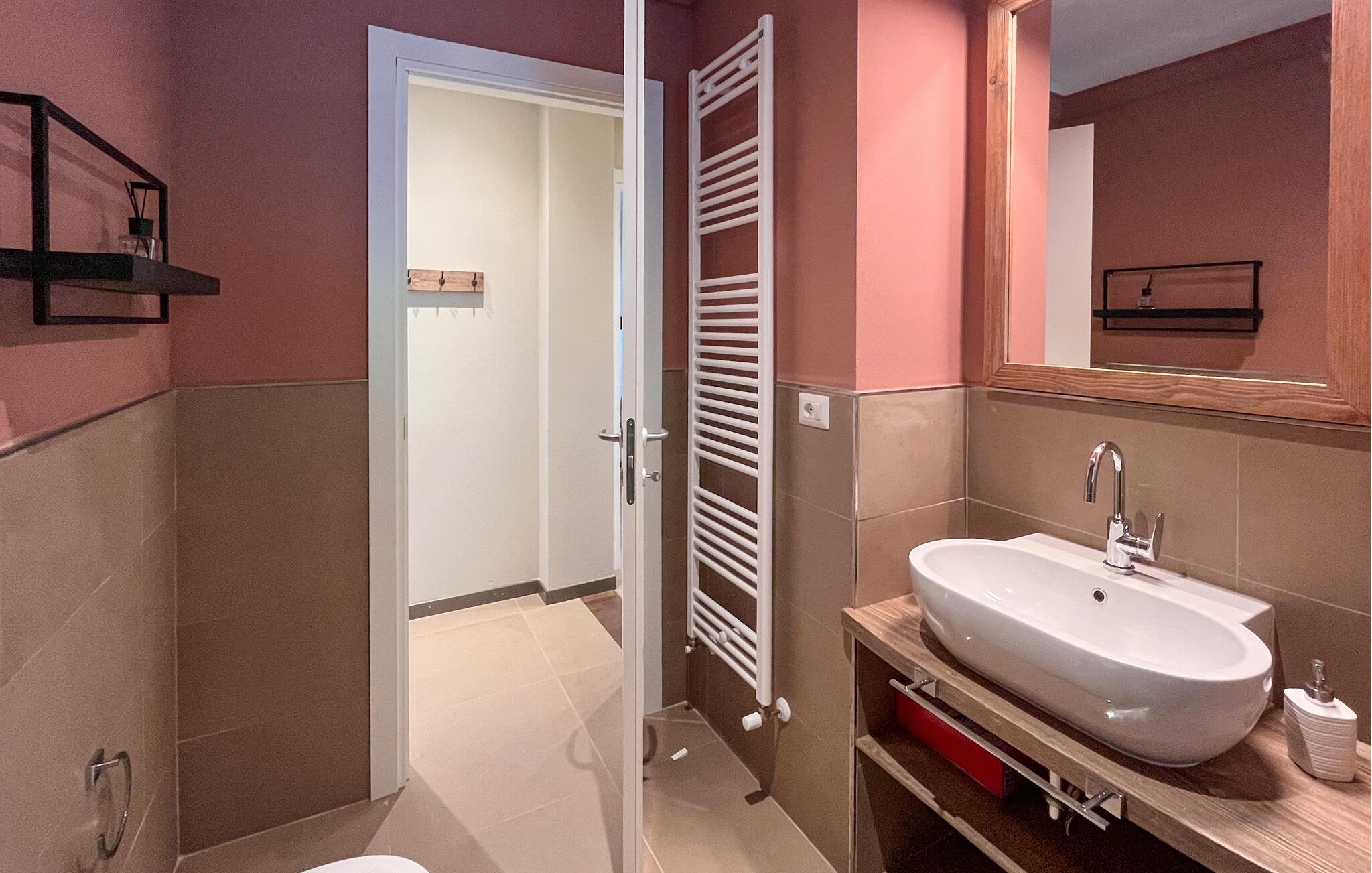 - WC med varmt og kaldt vann, Dusj