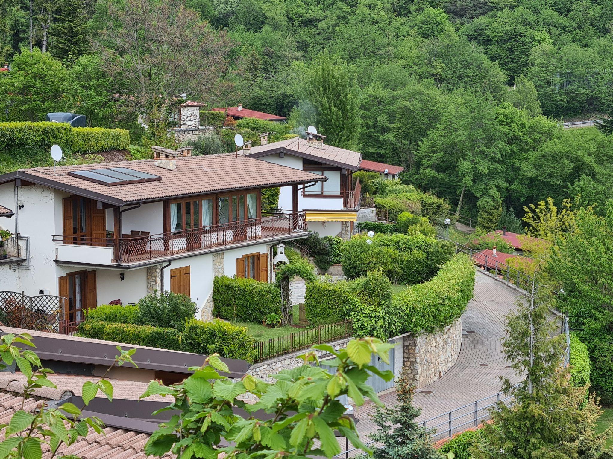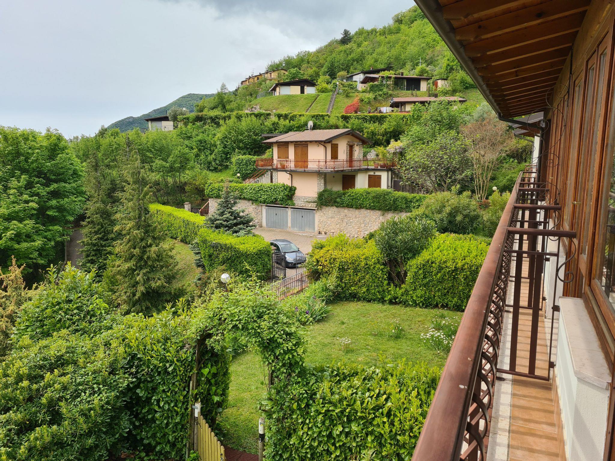 Lake Garda: Holiday home with stunning views of Lake Garda and the mountains in a quiet location, with balcony and terraces. The beautiful holiday home is located above Gardola. It is nestled in the Upper Lake Garda Nature Park with many hiking opportunities. The house is built on two levels and offers a cosy living and dining room with TV and large sofa bed. The balcony and the two terraces offer a fantastic view of the lake. The well-equipped kitchen has a dishwasher, espresso machine, coffee machine, microwave, fridge with freezer compartment, toaster and kettle. The two bedrooms with lake view have direct access to the terrace and garden. The bathroom is located directly next to the bedrooms. One bedroom is furnished with a romantic four-poster bed. The second bedroom has a 1.40 metre wide bed and a 1.60 metre wide bed above it. A desk is also part of the furnishings. A washing machine is available for your exclusive use in the cellar room. A large furnished terrace with garden invites you to relax. A brick barbecue is available for barbecue evenings. A garage is available for your car or motorbike. The property is completely fenced in and is suitable for those seeking peace and quiet as well as for families with children or dogs. A travel cot and highchair are available free of charge on request. Many small, typical Italian restaurants, bars and shops await you in the neighbourhood. There is a public swimming pool 2 km away in Prabione.