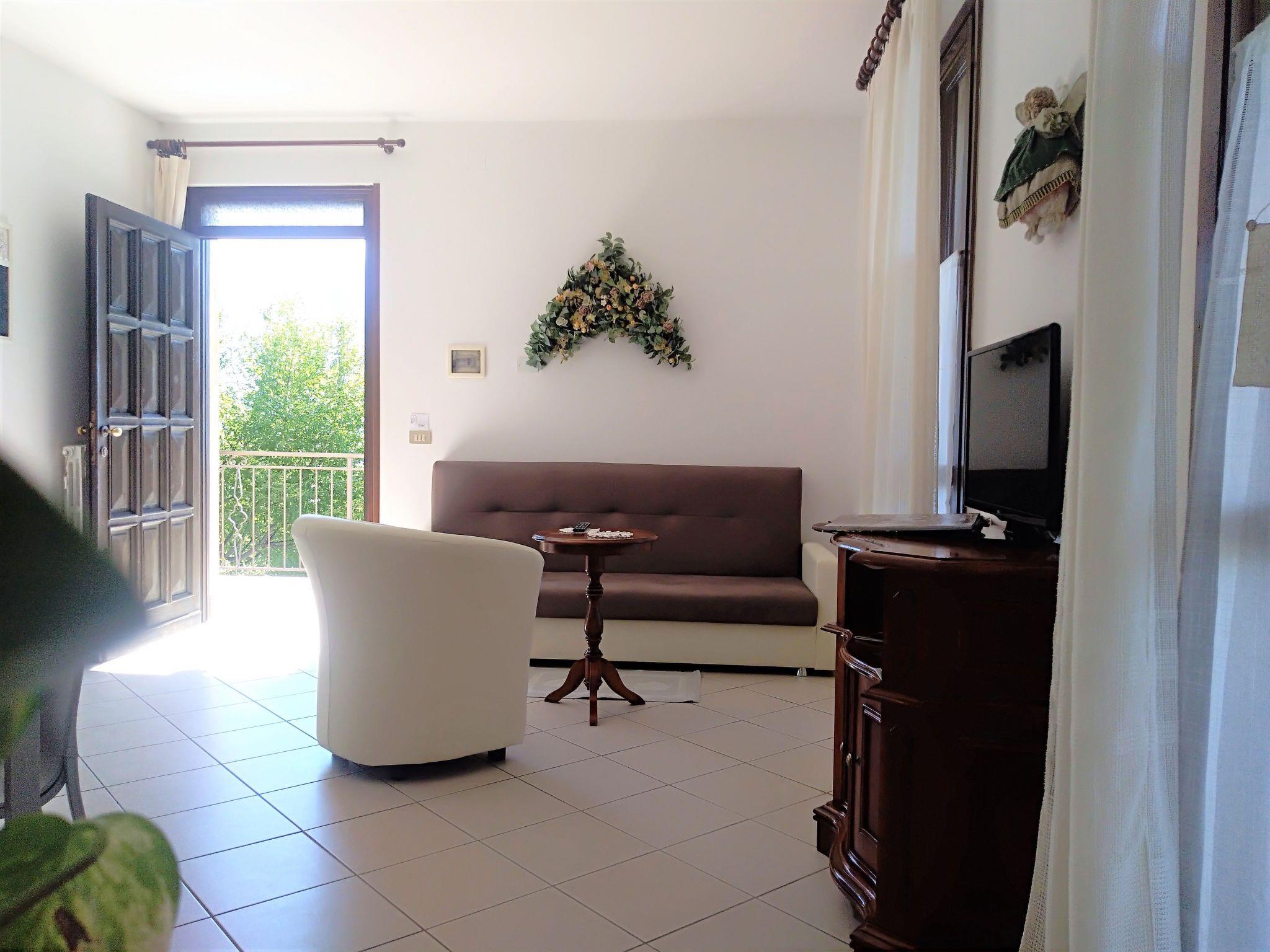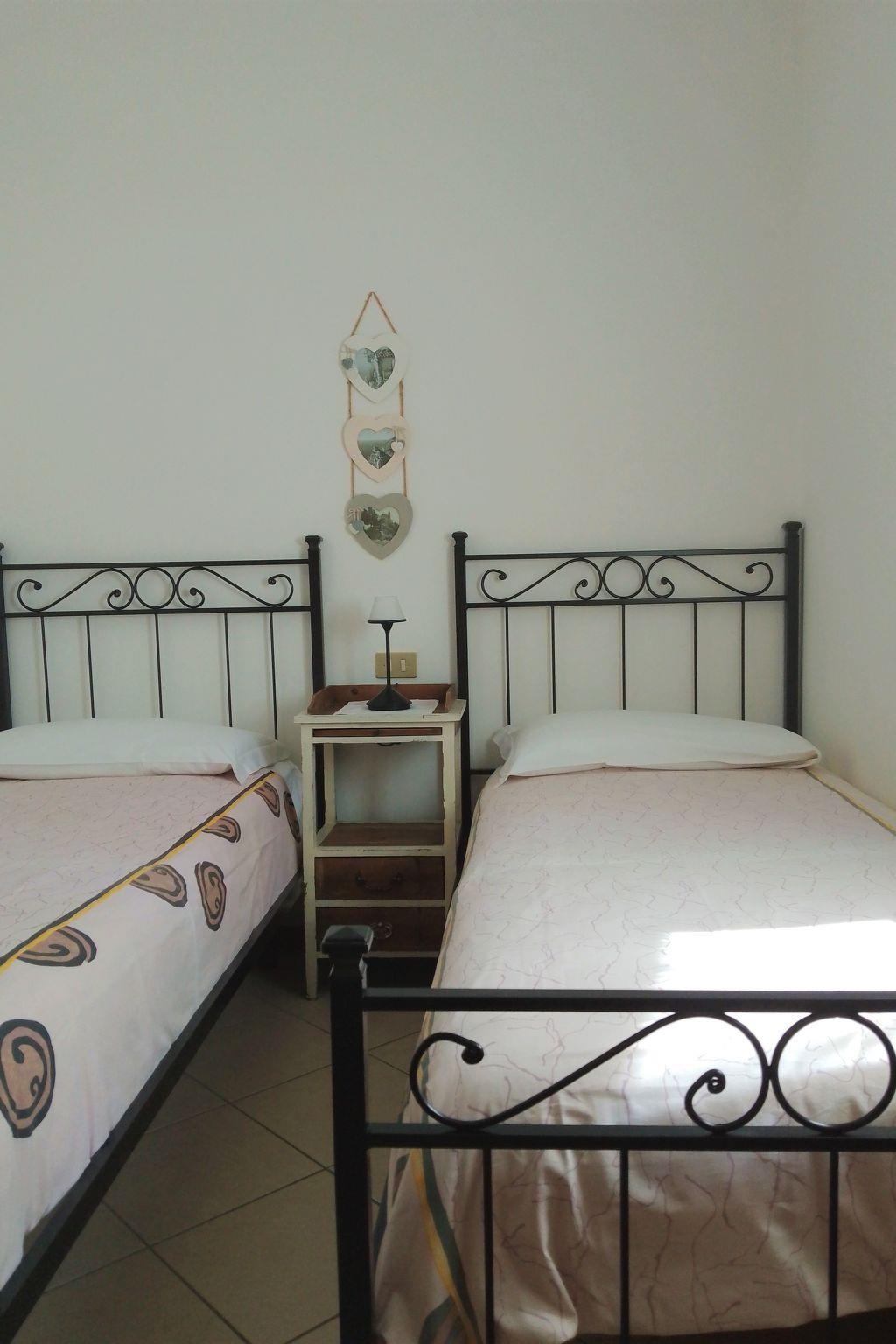 Inside, the flat welcomes its guests with a warm and inviting atmosphere. It consists of two bedrooms, one with a double bed (160 x 190cm) and the other with two single beds (80 x 190cm), ideal for a comfortable rest after a day of adventures. The bathroom is equipped with a shower and bidet, while the living room-kitchen, which serves as the heart of the house, is conveniently equipped with a comfortable sofa, satellite TV, a table with chairs and a kitchen complete with a gas cooker, microwave oven, toaster, coffee machine and refrigerator with freezer.