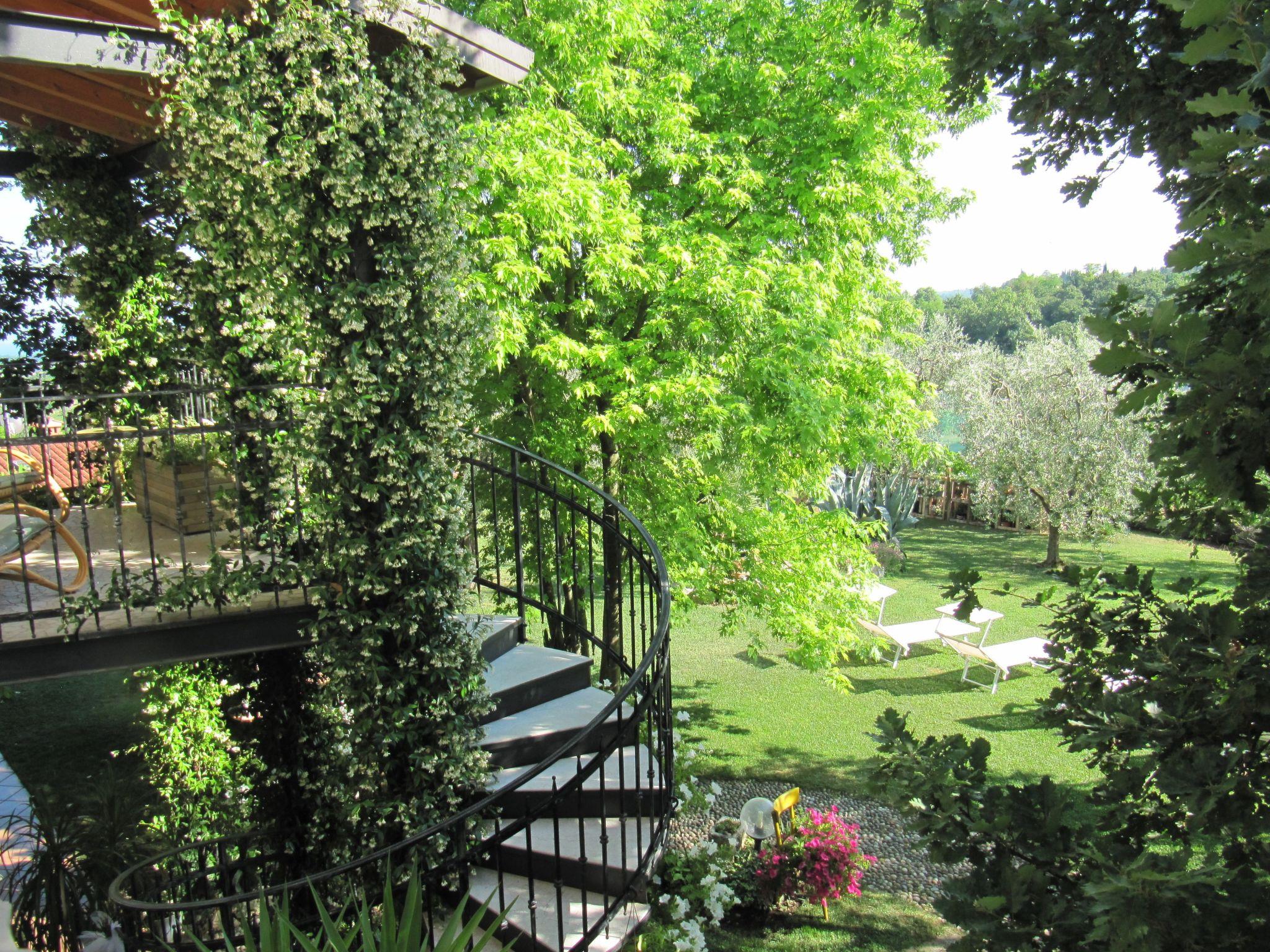 APARTMENT IN A VILLA IMMERSED IN THE GREEN WITH A SPECTACULAR VIEW OF LAKE GARDA We are situated in the hills of Lake Garda, in a particularly peaceful area, surrounded by olive groves and vineyards. The flat is less than 10 minutes' drive from the town of Salò and 20 minutes' drive from Desenzano, which are among the most organised towns on the west coast of the lake, full of shops, bars, restaurants and clubs. The nearest town is Polpenazze (a charming medieval village) where you can find grocery shops, bars, ice-cream parlours and is about 2 km away. Beautiful beaches are 5\6 km away and can be easily reached by car or bicycle. A horse riding stables is 400 metres from the house and the bicycle path is 100 metres away. For those who prefer to use public transport, the bus stop is 500 metres away.