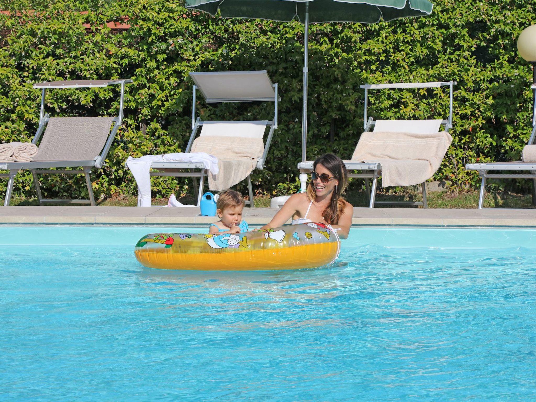 The garden for relaxation is very large, fully fenced and with many types of aromatic plants, the swimming pool is protected by a gate access, has a heated shower and is equipped with a solarium with two sun beds per flat. There is a new bike storage room, protected by video alarm and available to guests.