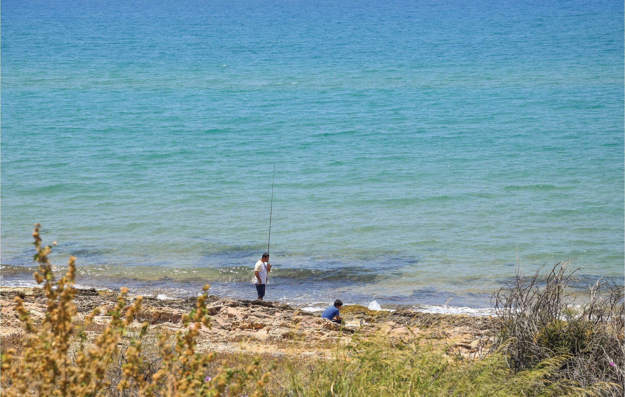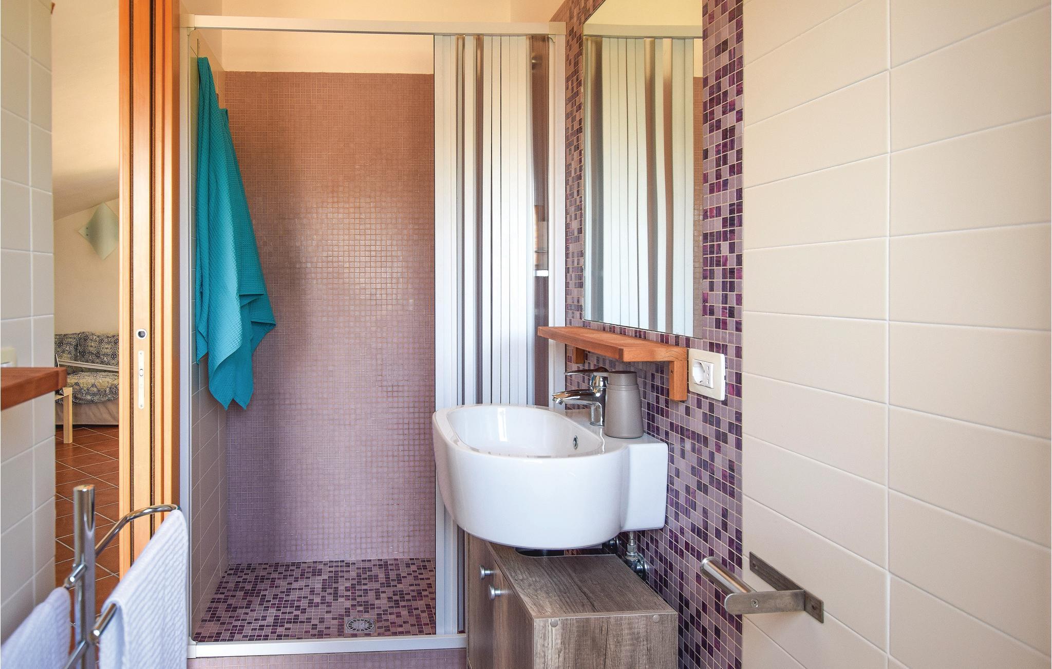 Den lyse innkvarteringen har en liten møblert balkong med havutsikt. Eiendommen ønsker deg velkommen med en velstelt plen med blomster og innfødte trær; til og med belysningen utstråler oppmerksomhet på detaljer, og spotlights i smijern skaper en varm og innbydende atmosfære om kvelden. I første etasje er det en solrik terrasse med stoler, bord og solstoler, og på baksiden er det en grill med vask og en overflate for tilberedning av deilige måltider. I nærheten av bassenget er det en utendørs dusj og et lysthus med solstoler og lenestoler. Tilgang til boligen er via en utvendig trapp.