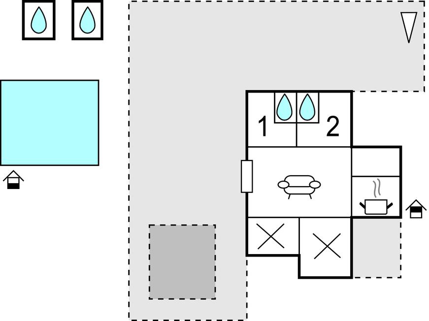 Merk: Eieren kommer inn til rommet sitt via den felles stuen.