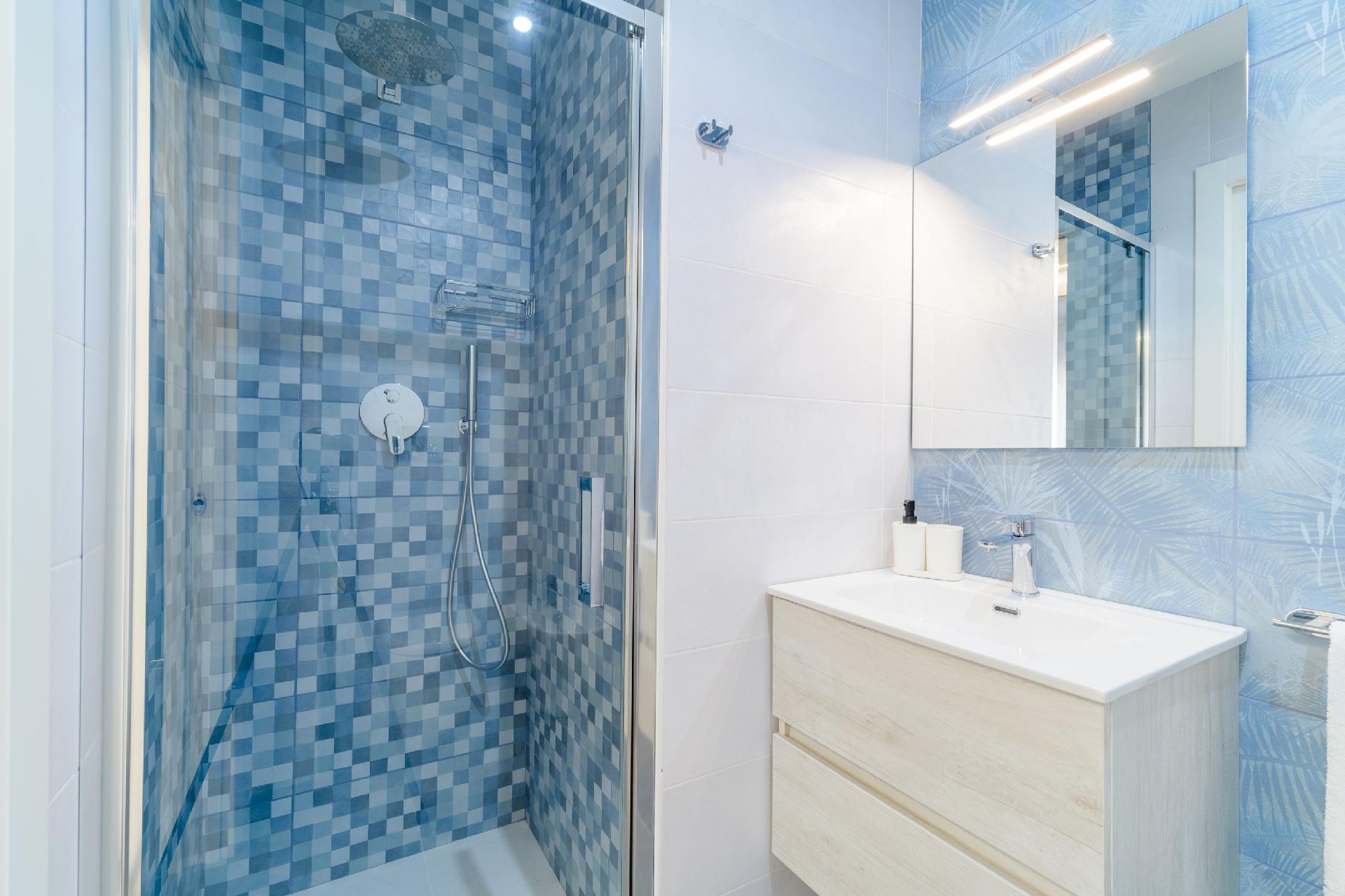The sleeping area consists of 4 bedrooms: a double bedroom (whose beds can be separated), overlooking the pool area, with a single pouf bed; a double bedroom with en suite bathroom and shower; a twin bedroom (whose beds can be joined); a double bedroom with smart TV.