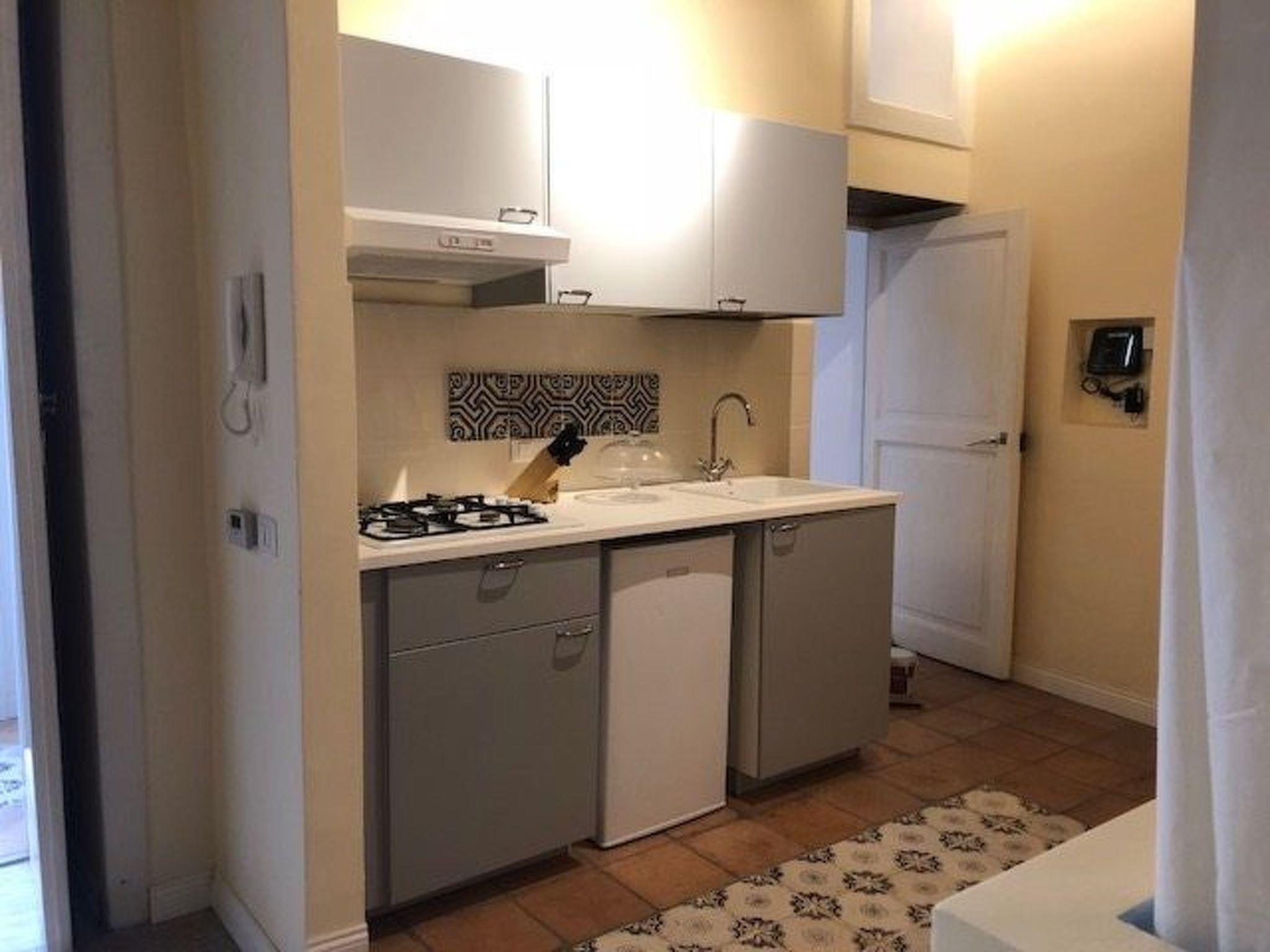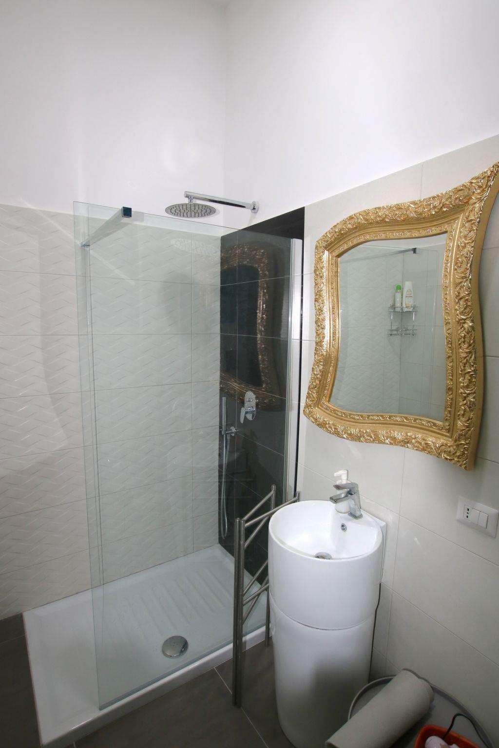 Comprises large bedroom with double bed with small balcony where you can smoke and en suite bathroom. Second smaller bedroom with French double bed (1.40), double sofa bed in the common area, living room, furnished with table, TV and kitchenette equipped with all the necessary kitchenware to cook for yourself. Second bathroom in the corridor. Heating, air conditioning, double facing, on one side in the inner courtyard of the building, on the other in a typical Neapolitan alley.