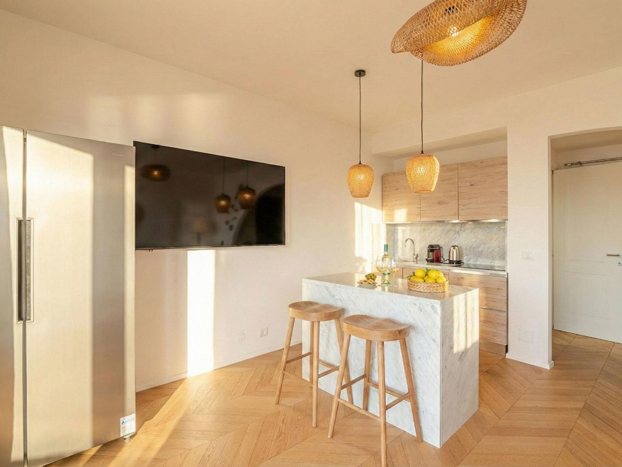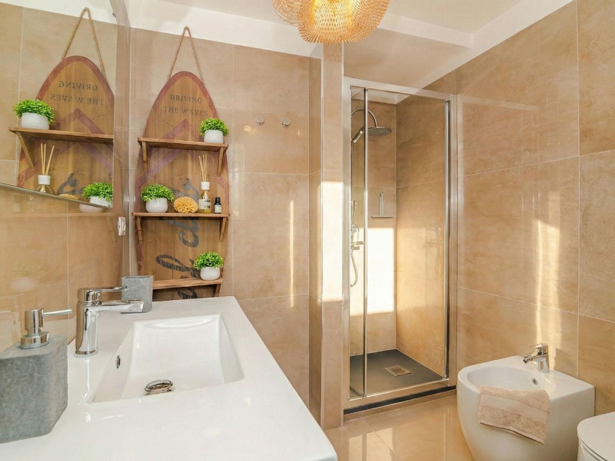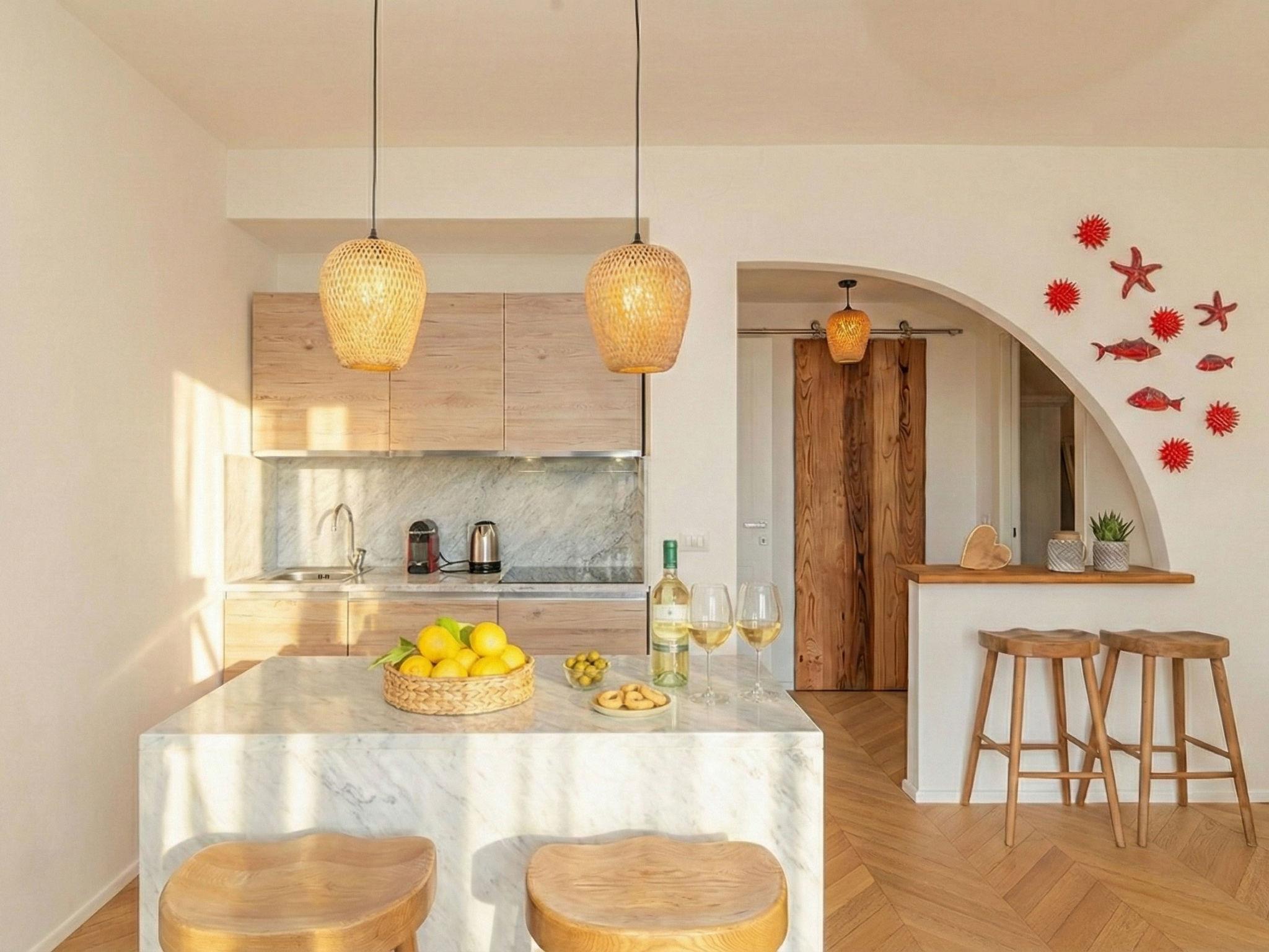 "Sabrina's", 3-room house 70 m2, on the ground floor. Very beautiful and tasteful furnishings: living/dining room with panoramic window with 1 double sofabed and TV (flat screen), air conditioning. Exit to the veranda. 2 rooms, each room with 2 double beds and TV (flat screen), air conditioning. Kitchenette (oven, dishwasher, 4 induction hot plates, toaster, kettle, electric coffee machine, cooking island). Shower/bidet/WC. Air-conditioning, boiler. Large terrace. Terrace furniture, conservatory. Very beautiful panoramic view of the valley and the ocean. Facilities: washing machine, iron, hair dryer. Parking at the house. Please note: suitable for families. Fire extinguisher. IT090047C2000U0485