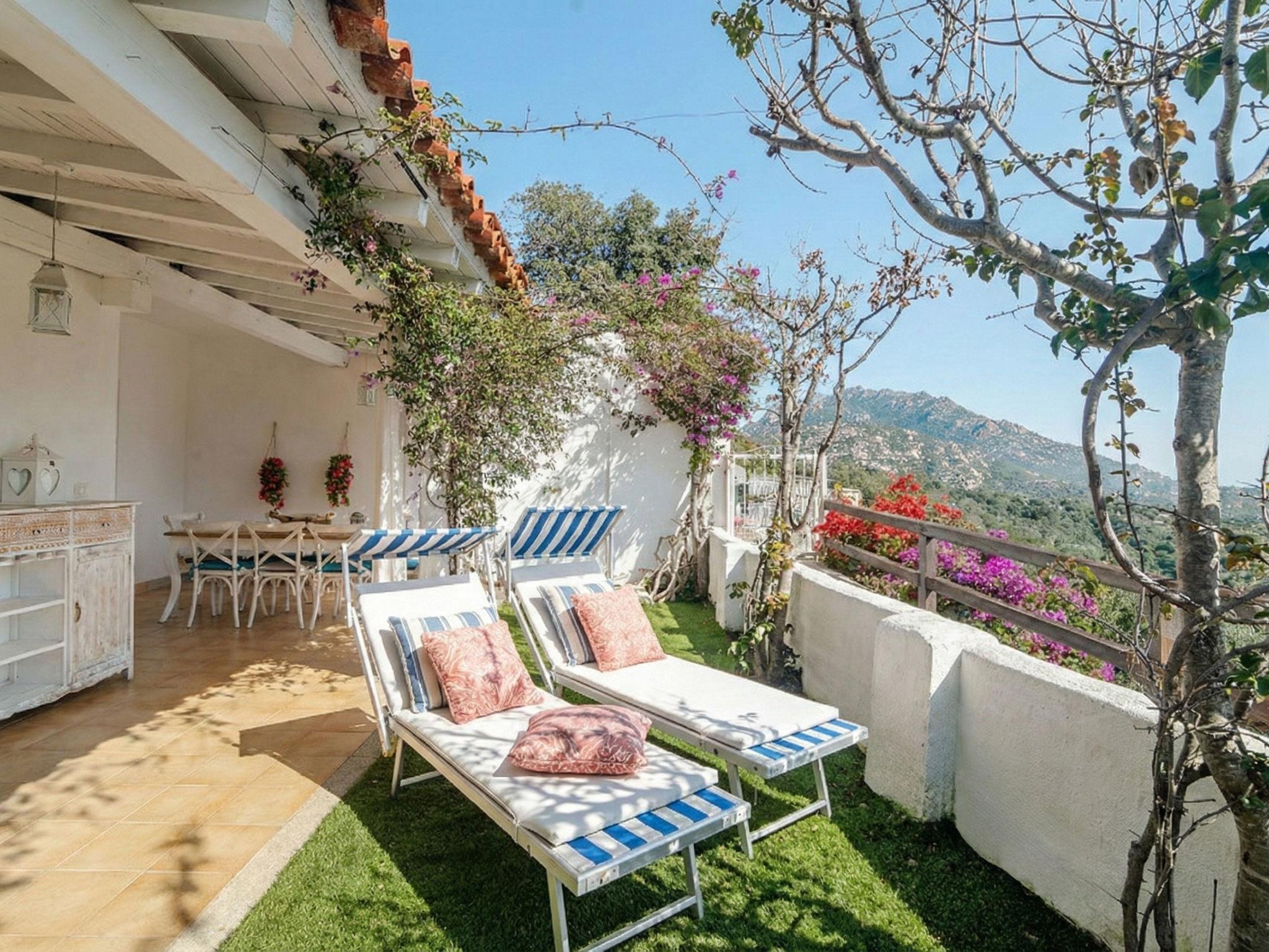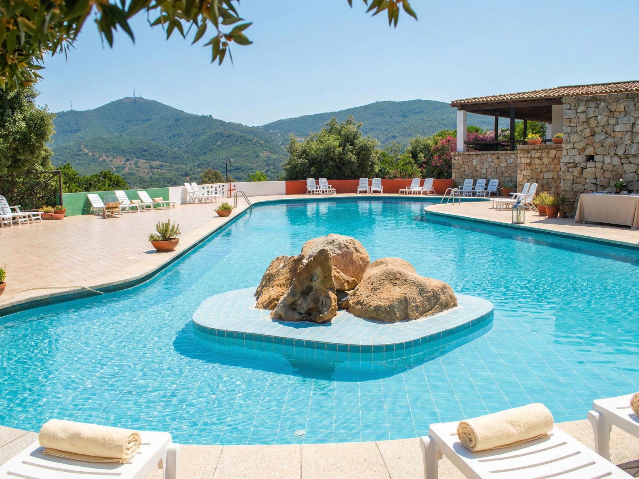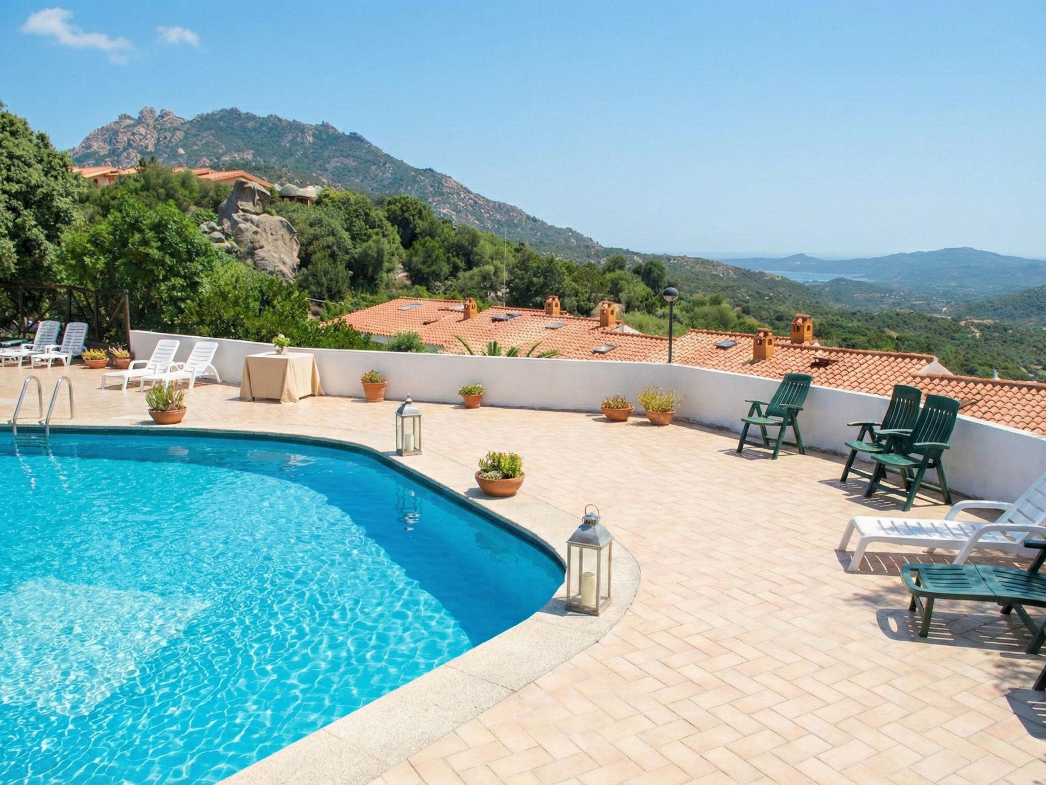 Modern, cosy residence "Sole Ruju", terraced, surrounded by fields and vineyards. In the resort Sole Ruju, 10 km from the centre of Olbia, on top of a hill, 10 km from the sea, 20 km from the beach, in the countryside. For shared use: swimming pool kidney-shaped (80 m2, seasonal availability: 16.Jun. - 14.Sep. pool opening hours: 09:30-13:00 and 15:00-19:00, extra). Motor access to 30 m from the house (ramp). Grocery 2.6 km, supermarket 2.6 km, restaurant 1.7 km, bar 90 m, bus stop "SS 125 Pilierzu" 2.5 km, sandy beach "Spiaggia Ira" 15 km pebble beach "Spiaggia Dei Sassi" 16 km. Nearby attractions: Porto Rotondo 15 km, Golfo Aranci 18 km, Aeroporto di Olbia Costa Smeralda 16 km, Palau 31 km, Cannigione 19 km. Please note: car recommended. Animals in the neighbourhood.