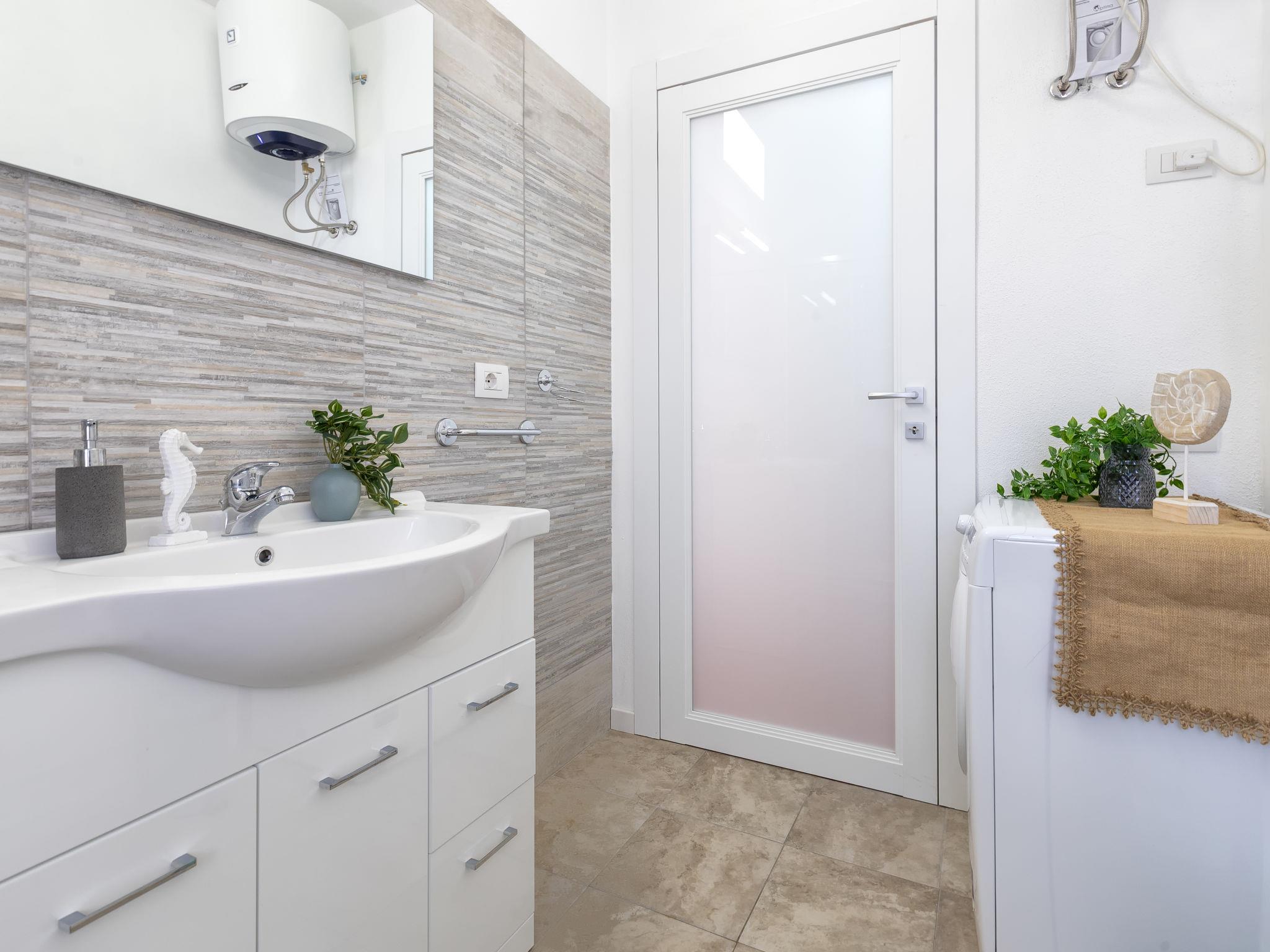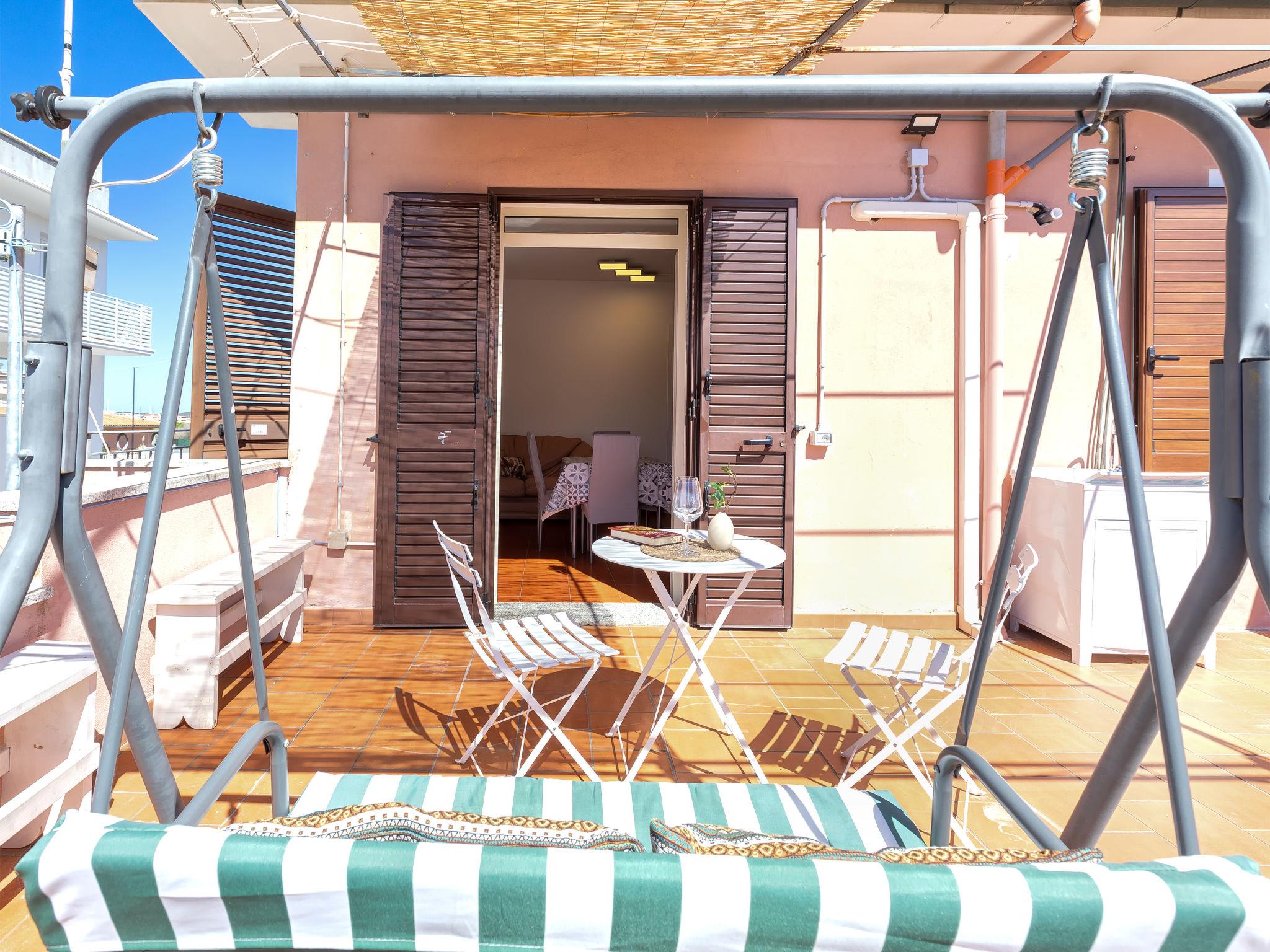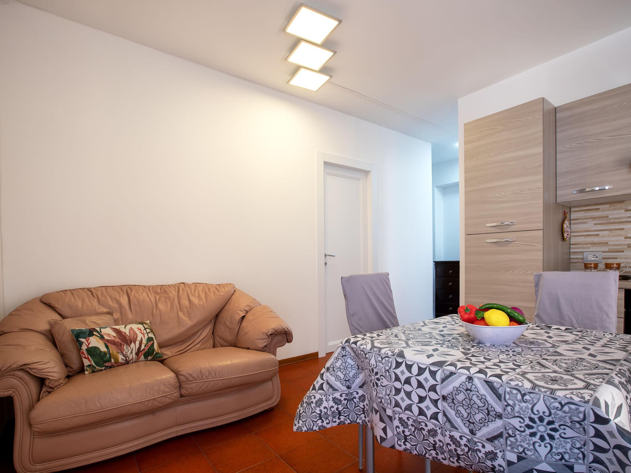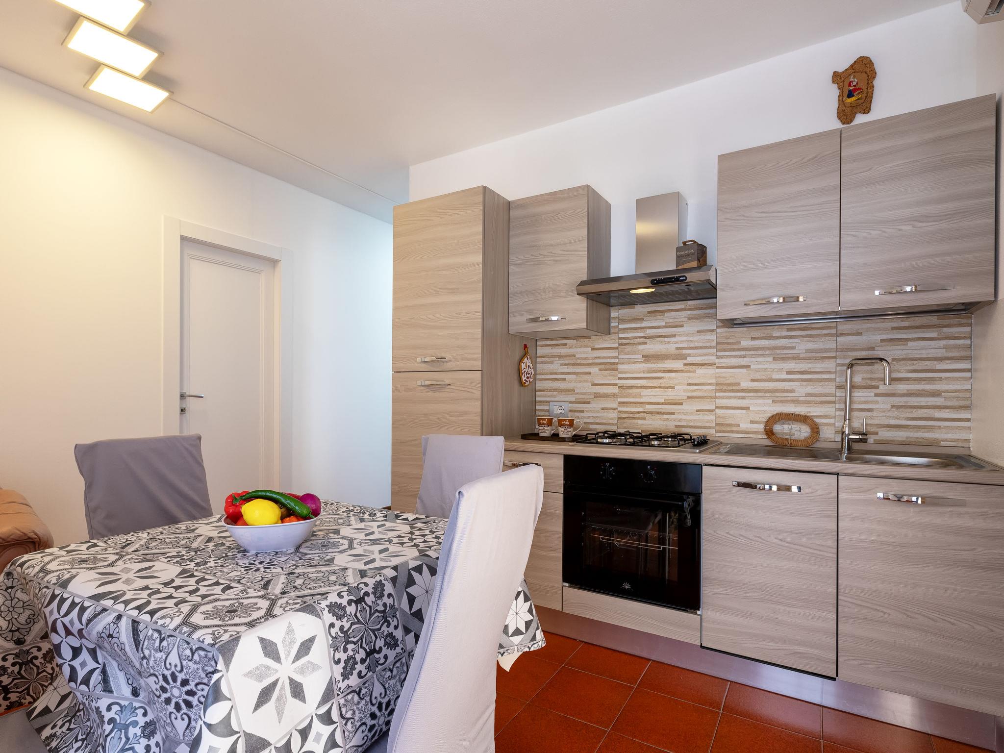 "Luna", 2-room apartment on 1st floor. Bright, fully renovated in 2025, simple and practical furnishings: living/dining room with dining table and TV. Exit to the terrace. 1 double bedroom, window onto the courtyard. Kitchenette (4 hot plates, oven, dishwasher, toaster, kettle, freezer). Shower/bidet/WC. Air-conditioning, forced-air heating, boiler (49 litres). Large terrace. Terrace furniture. Facilities: washing machine, iron, hair dryer. Internet (WiFi, free). Please note: apartment courtyard side. Non-smoking house. Maximum 1 pet/ dog allowed. Smoke alarm, fire extinguisher. IT090047C2000T8323