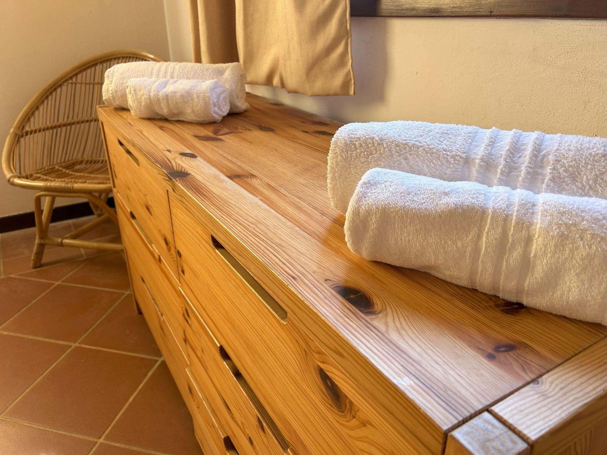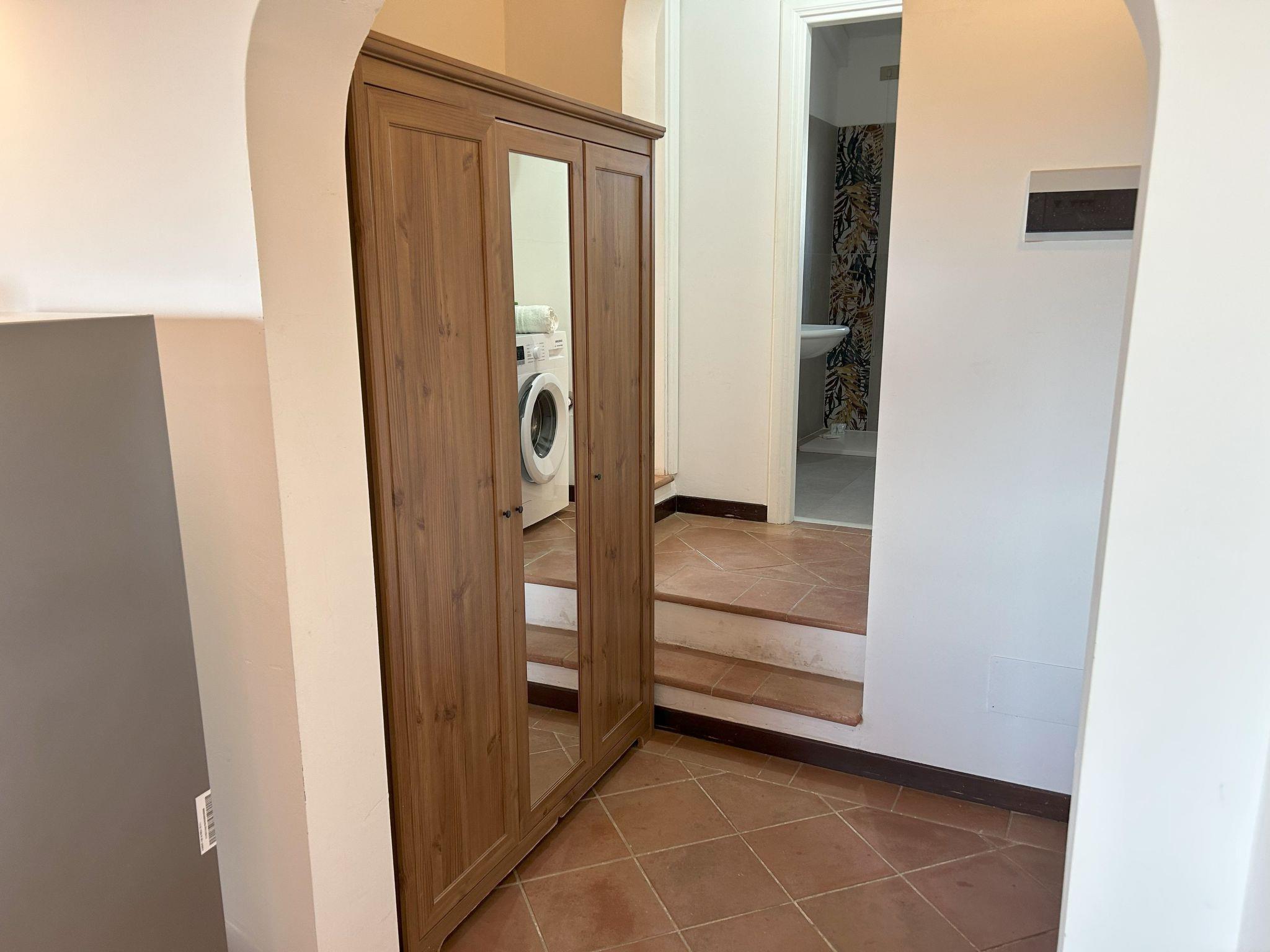 The interior of the flat is designed to ensure maximum comfort during your stay. Equipped with partial air conditioning, it offers a cool and cosy environment even on the hottest days. For moments of relaxation, the smart TV will allow you to enjoy your favourite programmes as if you were at home. The presence of a washing machine for your exclusive use is a further convenient service that will allow you to manage your daily routine without worries. The flat also offers a practical 4-burner cooker and an electric kettle for your morning hot drinks.