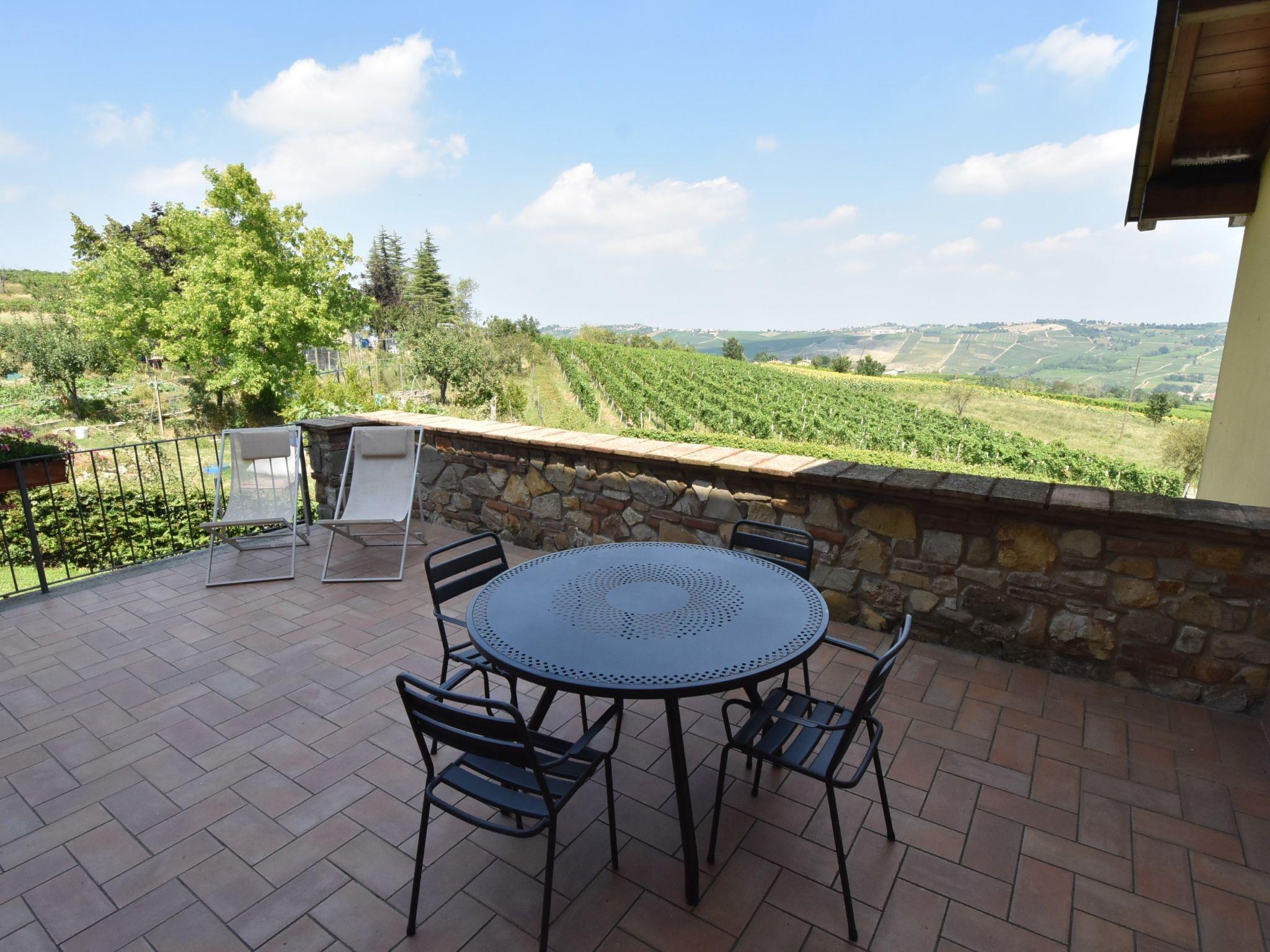 "La Corte Bricca (Trilo Torretta)", 3-room apartment 90 m2 on 3 levels, on the upper ground floor. Rustic and tasteful furnishings: living/dining room with open-hearth fireplace, dining table and TV. Exit to the terrace. Small, open kitchen (oven, dishwasher, 4 gas rings, toaster, kettle, freezer, electric coffee machine). Upper floor: 1 room with 2 beds (80 cm). Shower/bidet/WC. 2nd upper floor: 1 room with 1 double bed and shower/bidet/WC. Gas heating. Natural stone floors. Large terrace. Terrace furniture, deck chairs (2), box-room. Beautiful panoramic view of the countryside. Facilities: washing machine, iron, mosquito net, logs (extra). Internet (WiFi, free). Please note: non-smokers only. IT018036B4AOQCUEKY