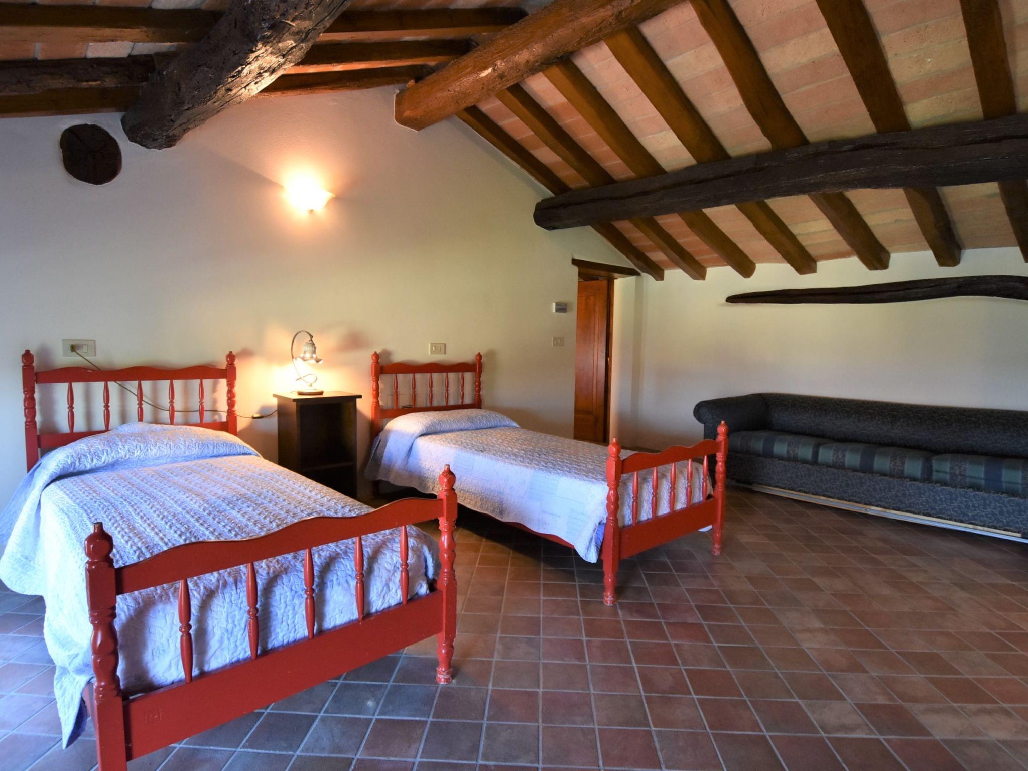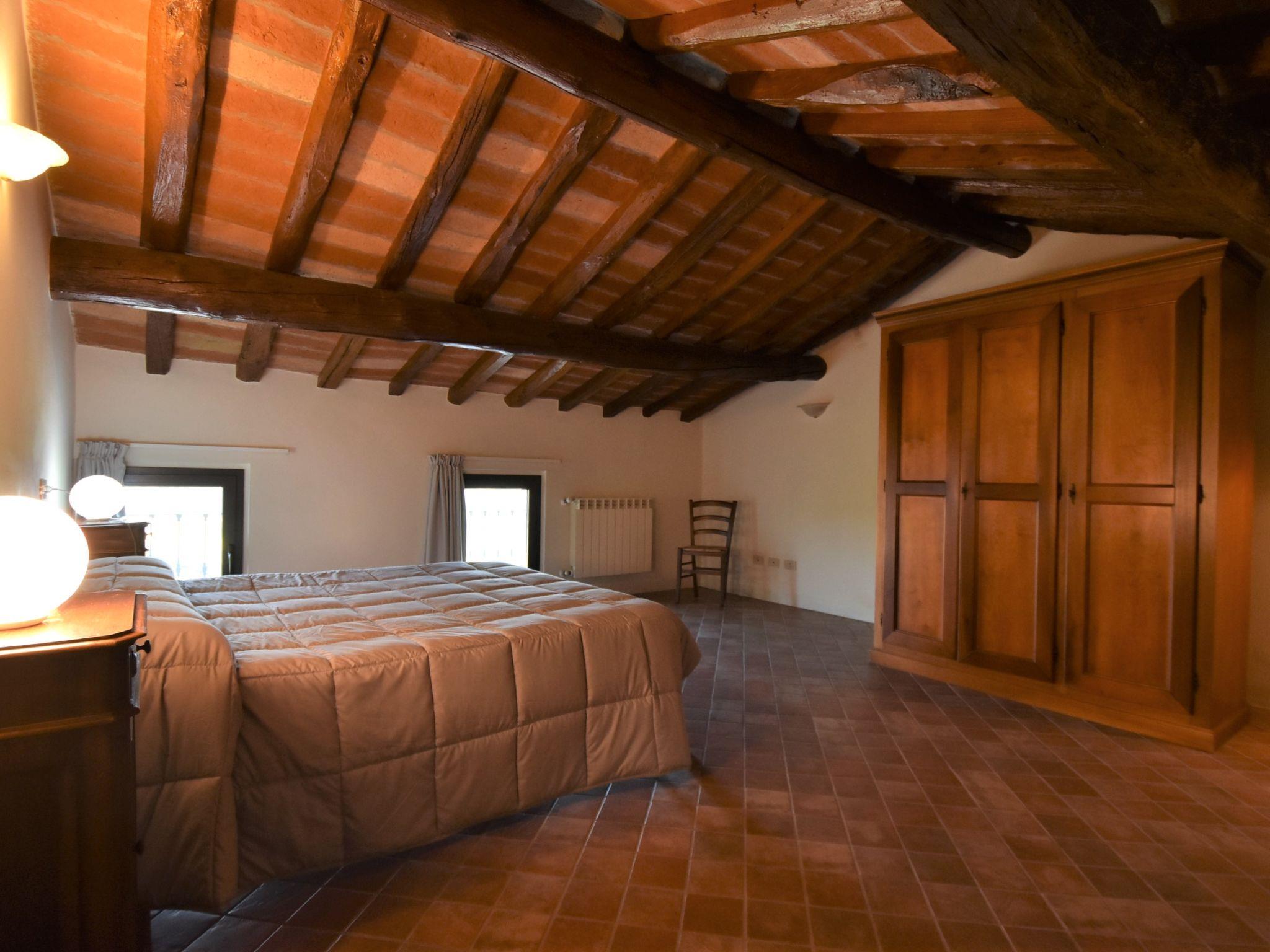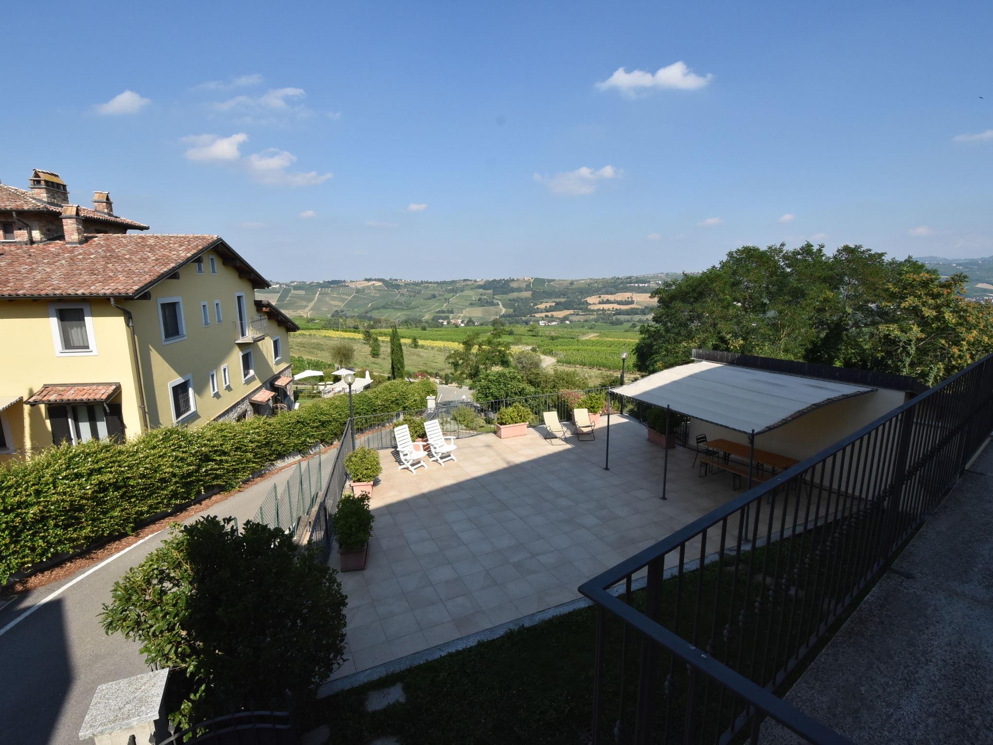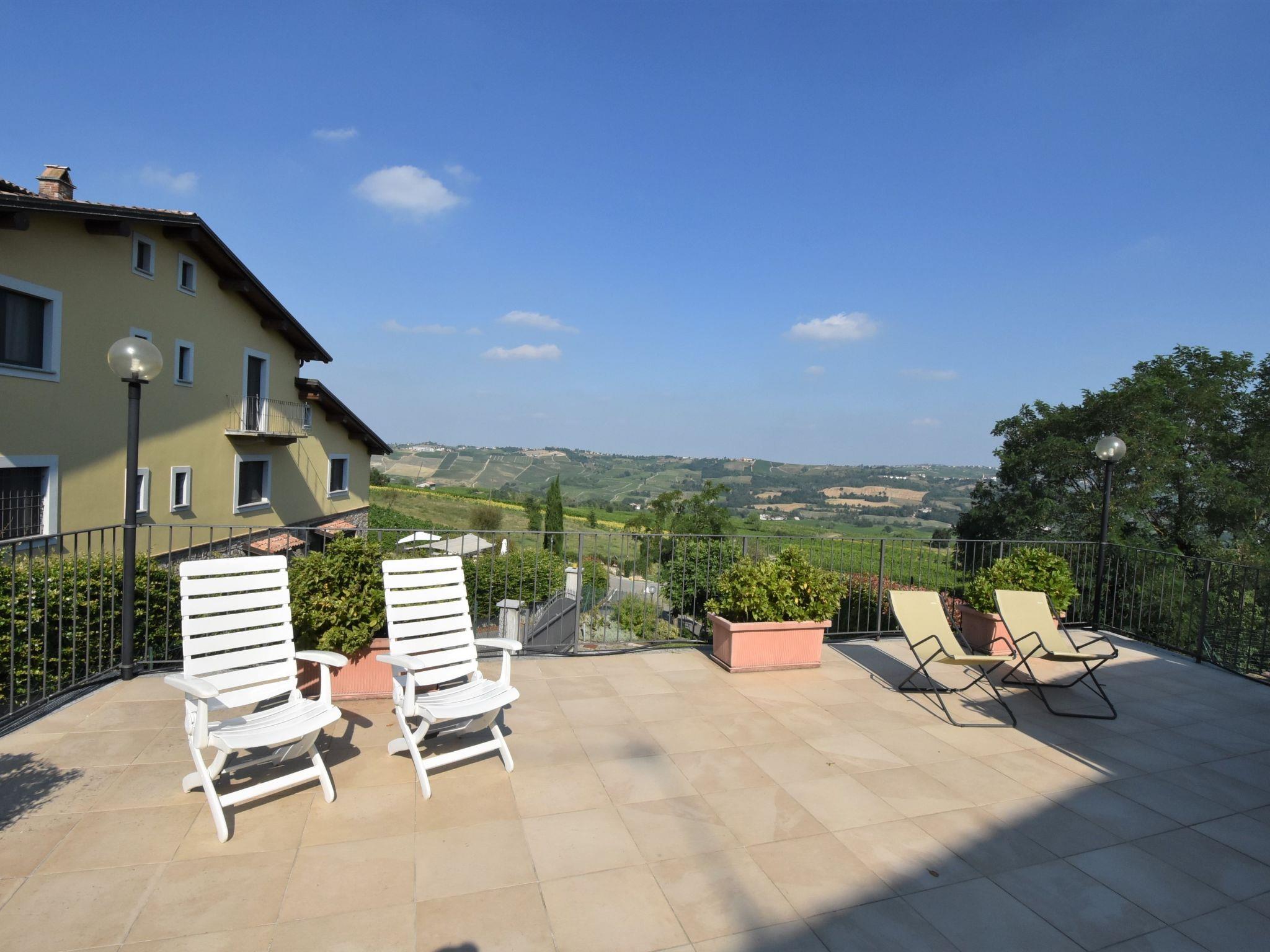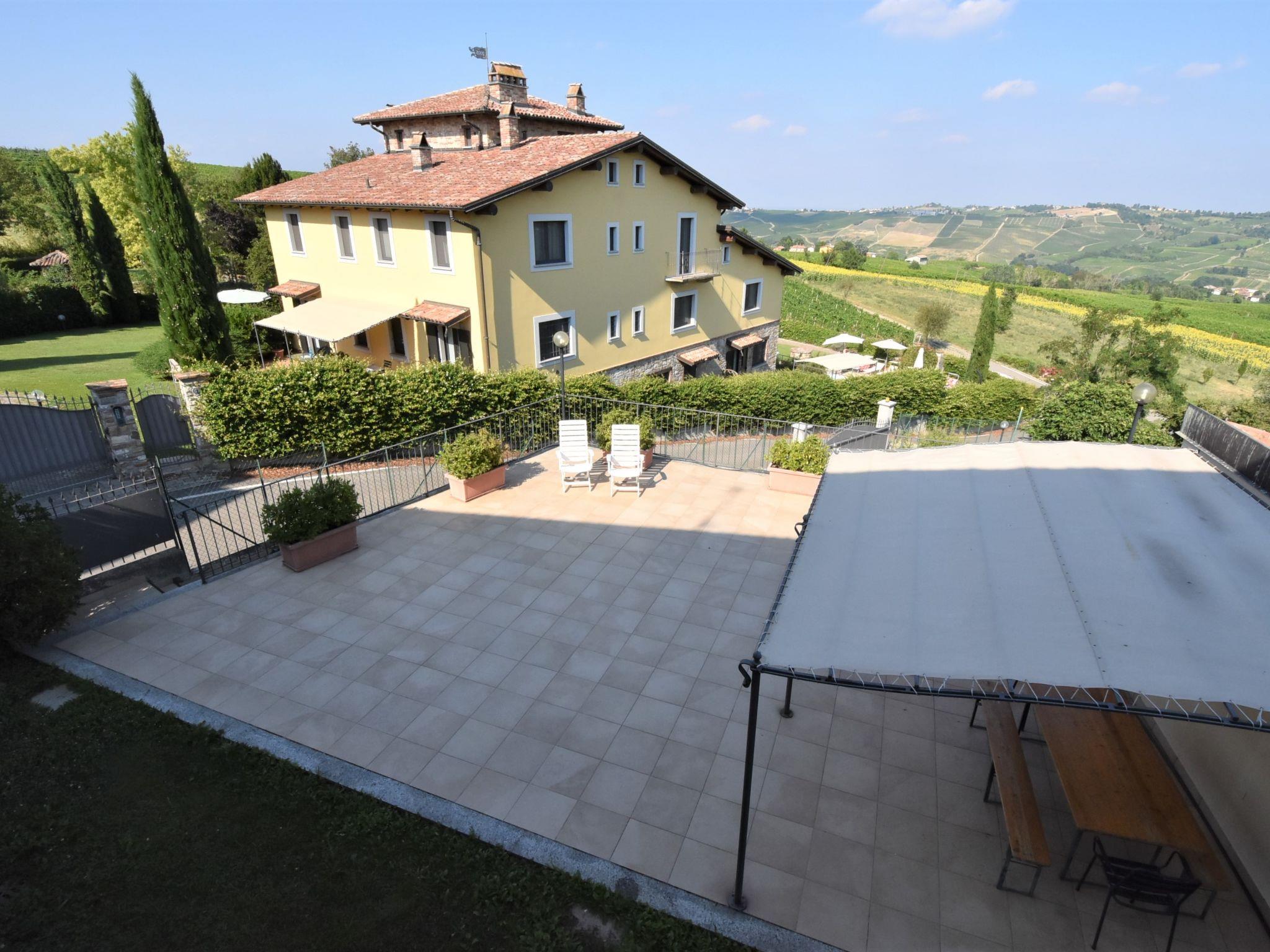 "La Corte Bricca (Casa Padronale)", 5-room house 210 m2 on 3 levels. Rustic and tasteful furnishings: living room with open-hearth fireplace and TV (flat screen). Exit to the terrace. Large, open kitchen (oven, dishwasher, 4 gas rings, toaster, kettle, freezer, electric coffee machine) with dining table. Exit to the terrace. Sep. WC. Upper floor: 1 room with 2 beds. Exit to the balcony. 1 room with 1 french bed (160 cm). Exit to the balcony. Bath/bidet/WC. 2nd upper floor: large walk-through room with sloping ceilings with 2 beds. 1 large room with sloping ceilings with 1 french bed (160 cm). Shower/bidet/WC. Gas heating. Natural stone floors. Balcony, large terrace 150 m2. Terrace furniture, barbecue (portable), deck chairs (4), box-room. Panoramic view of the countryside. Facilities: washing machine, logs (extra). Internet (WiFi, free). Garage (2 cars). Please note: non-smoking house. IT018036B4AOQCUEKY