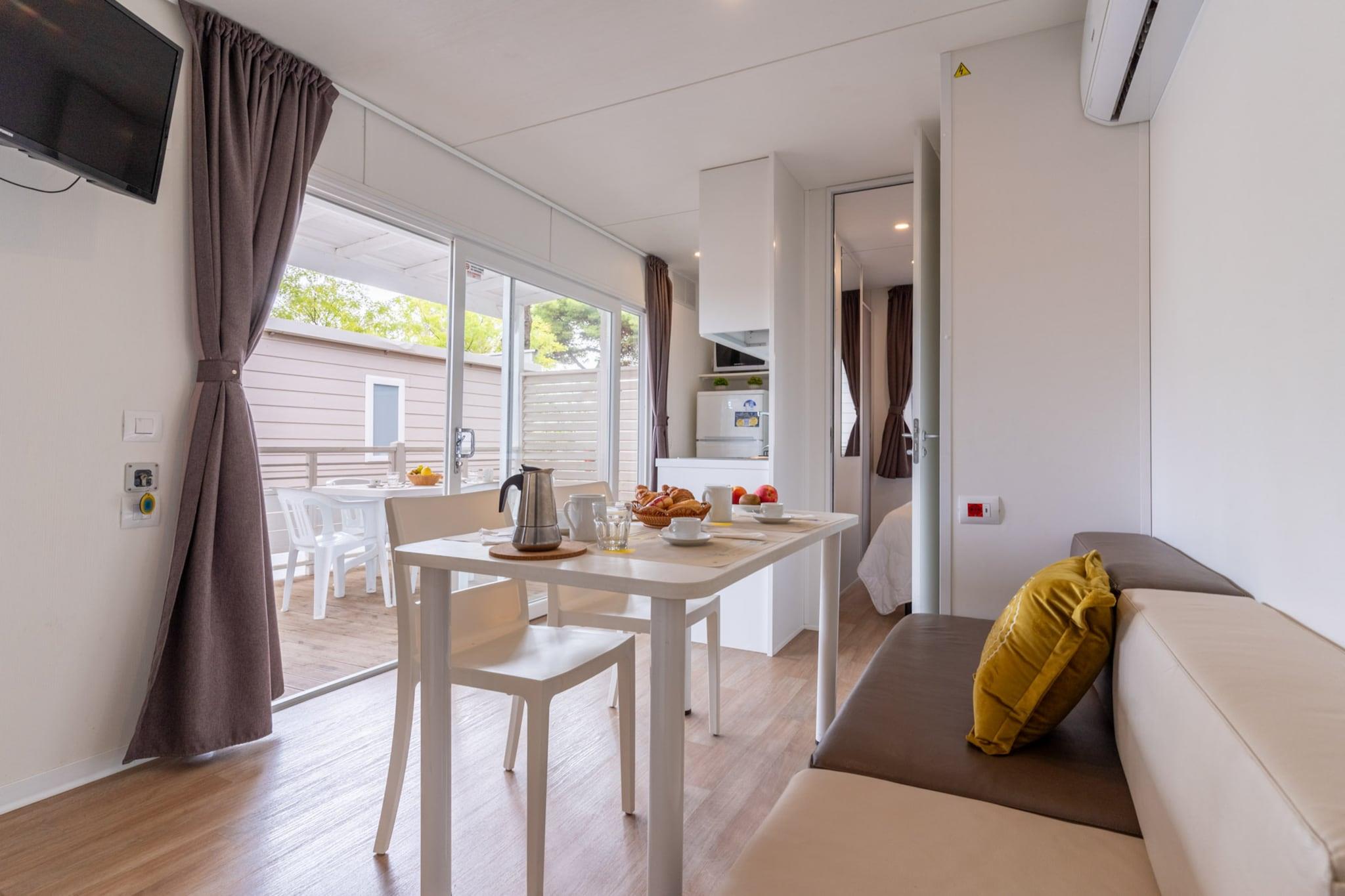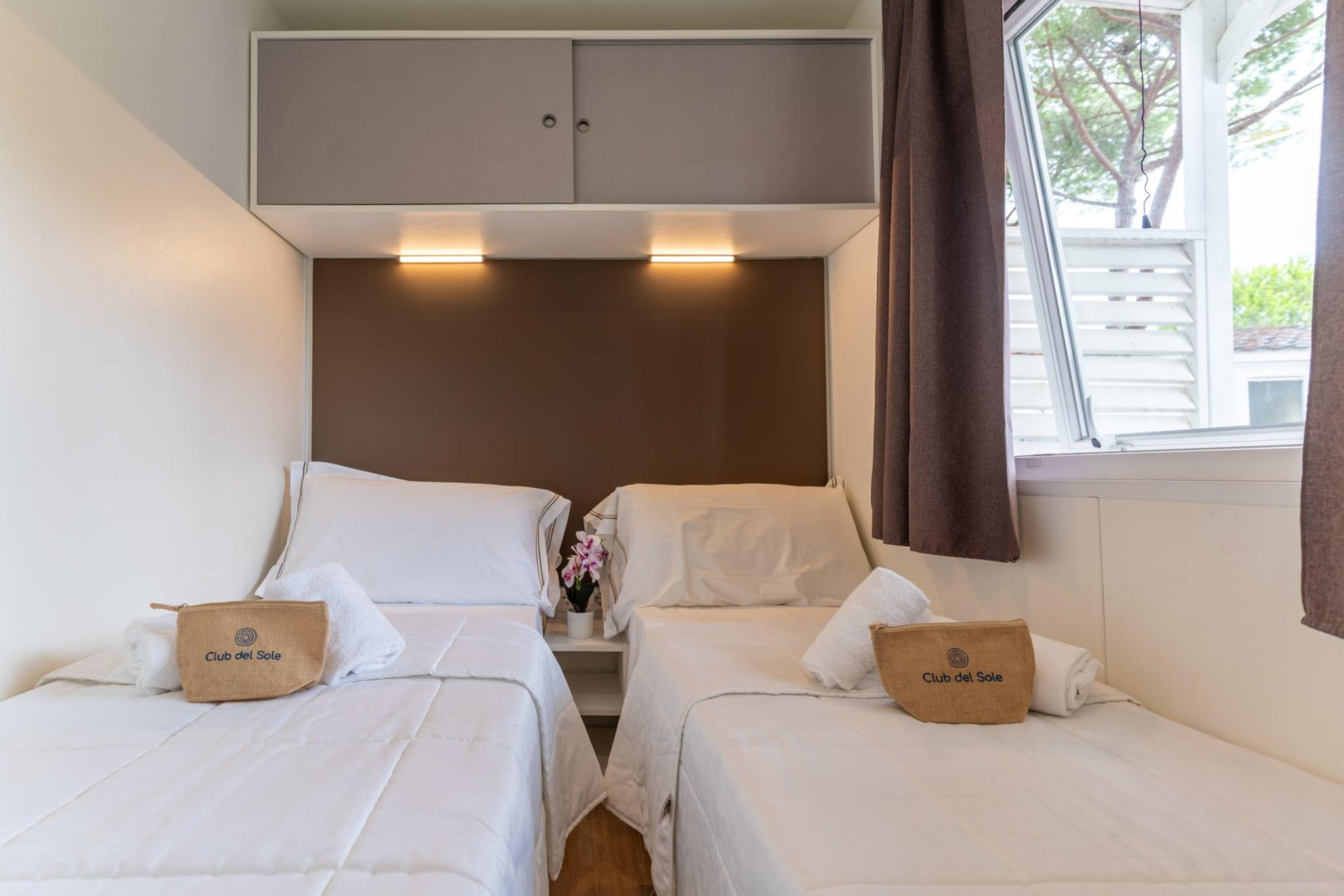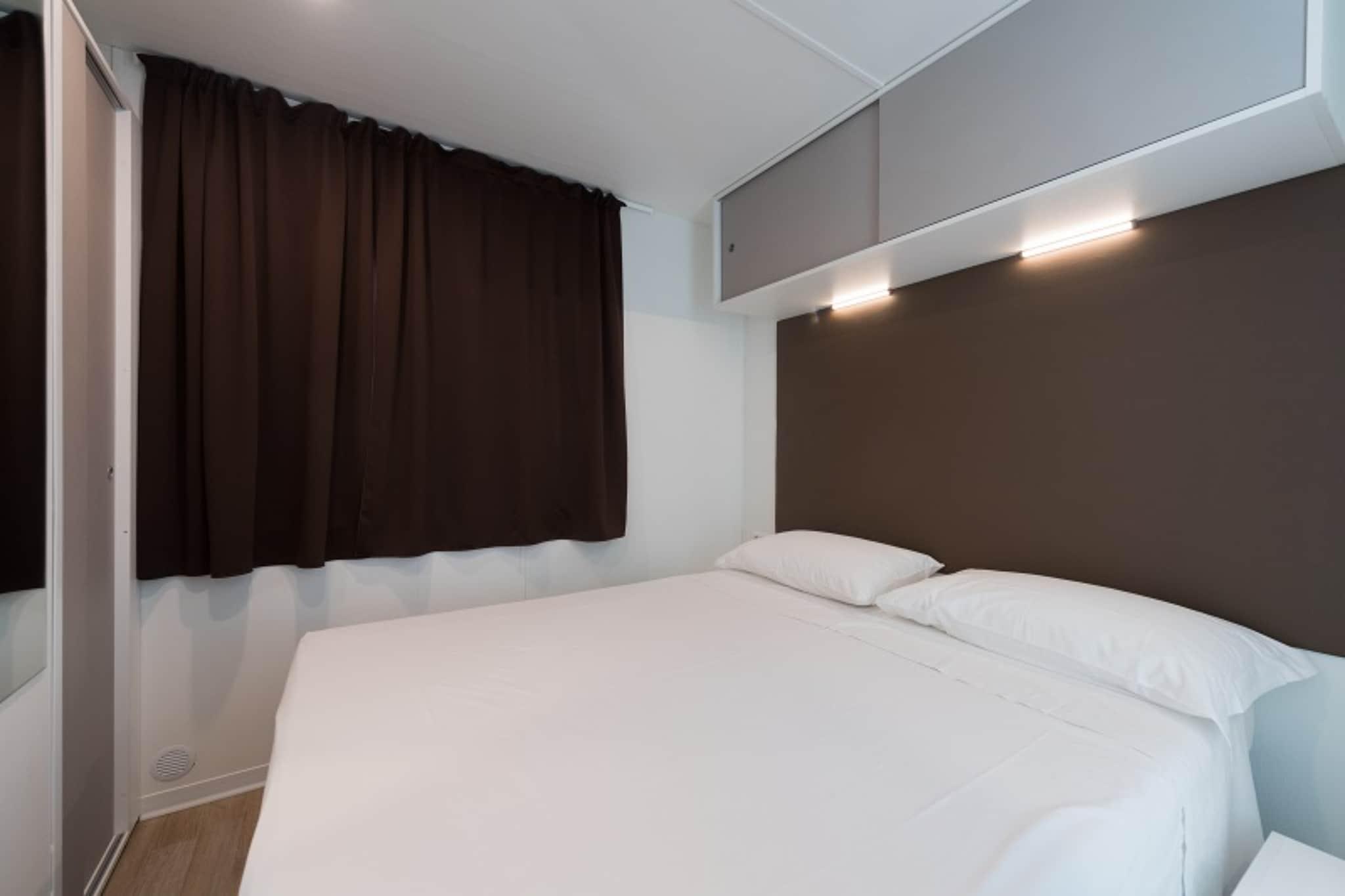 Mobilhjem i feriepark med stort bassengområde