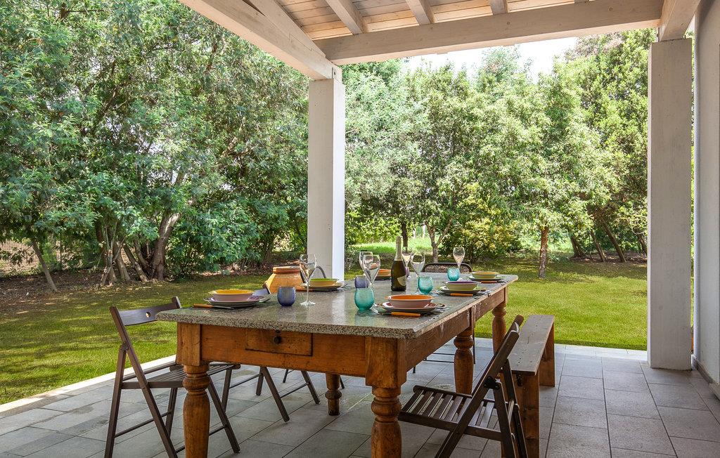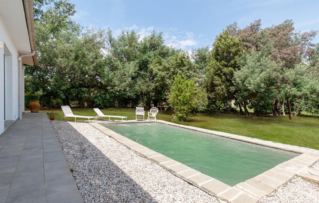 Åpne terrassedørene og gå ut i den velstelte, inngjerdede hagen. Slå deg ned under den overbygde terrassen ved det store trebordet og nyt måltidene utendørs. Ta en dukkert i det innbydende bassenget, og tilbring solfylte timer i solsengene. Den store tomten gir god plass for barna til å leke mens du slapper av i de komfortable hagemøblene.