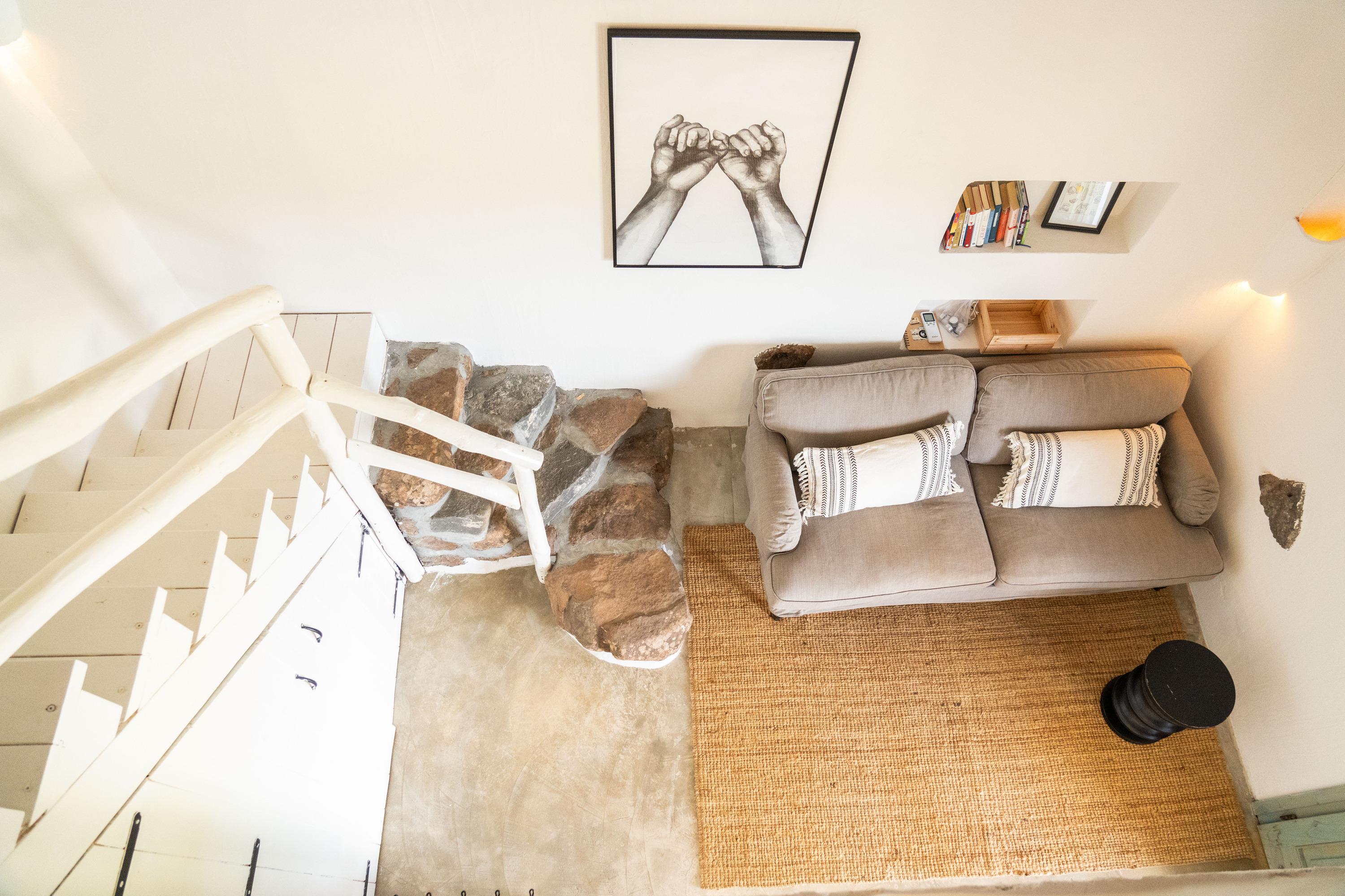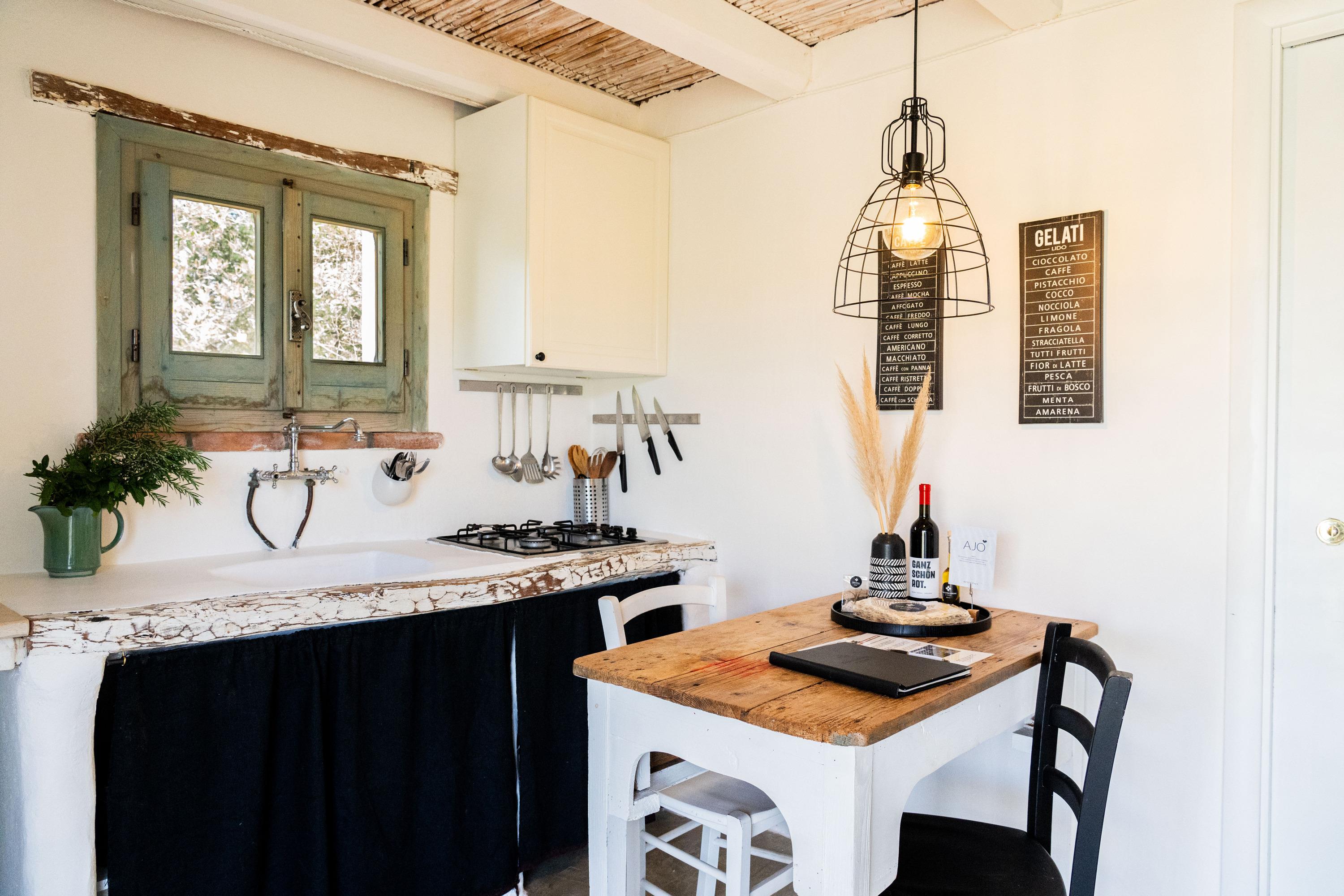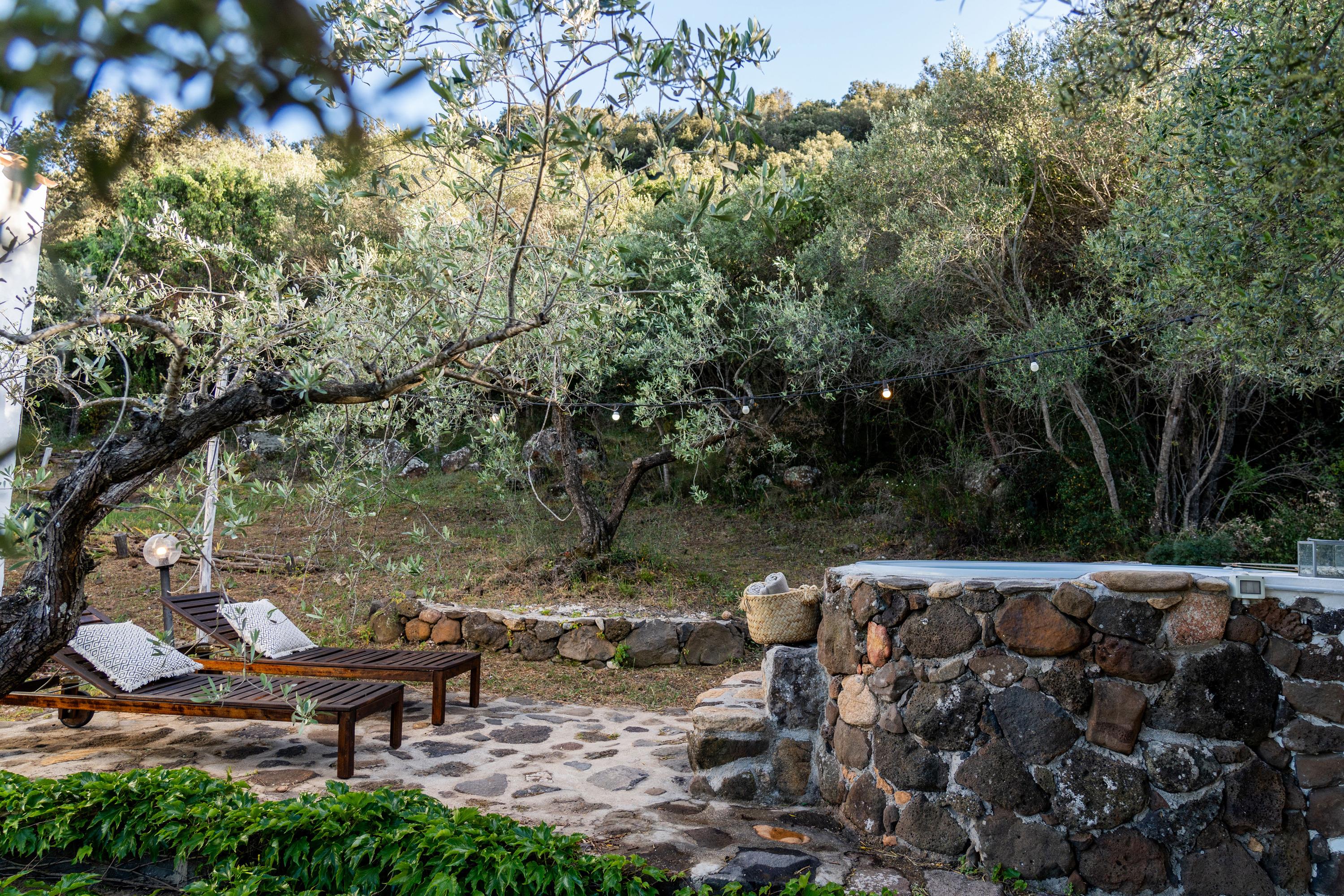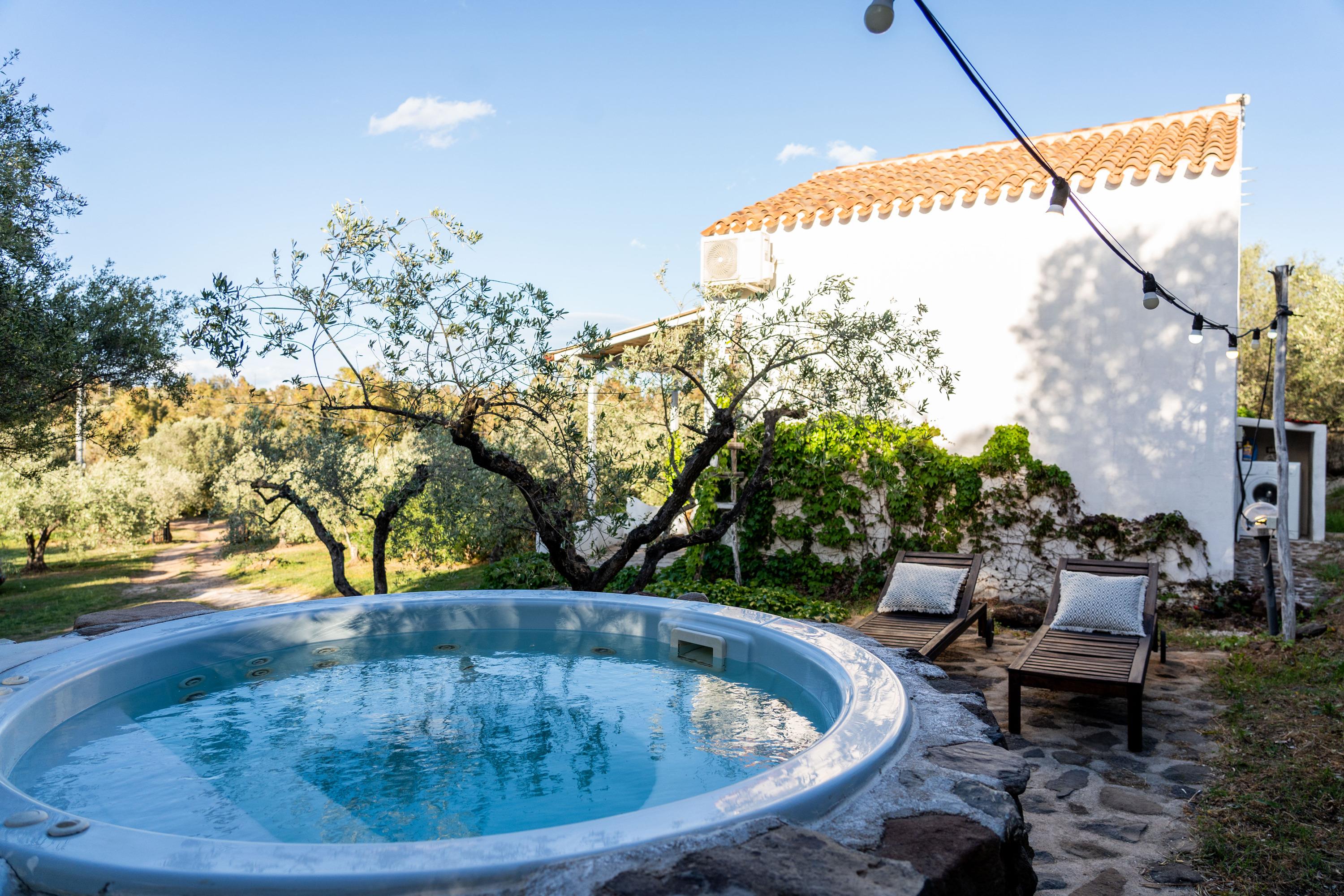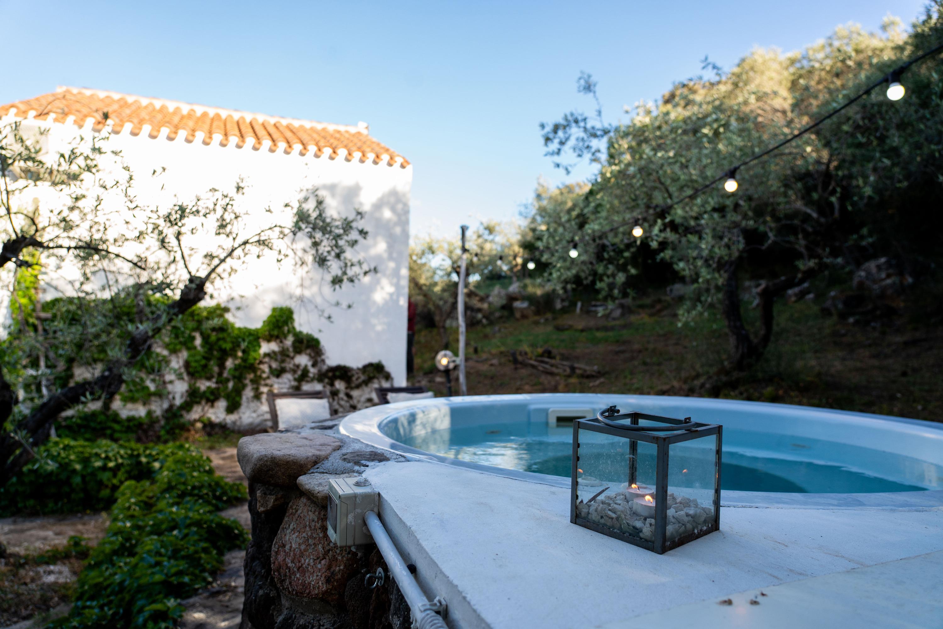 Das Haus ist von Olivenbäumen und frischer Minze umgeben und verfügt über eine offene Architektur mit einem Schilfdach und einer Schlafgalerie. Es wurde ausschließlich aus Naturmaterialien erbaut und die Küche wurde freihand gemauert. Hier kann man die Ruhe genießen und dem Gesang der Zikaden lauschen, während man die saubere Luft atmet. Ein besonderes Highlight ist der kleine SPA-POOL.