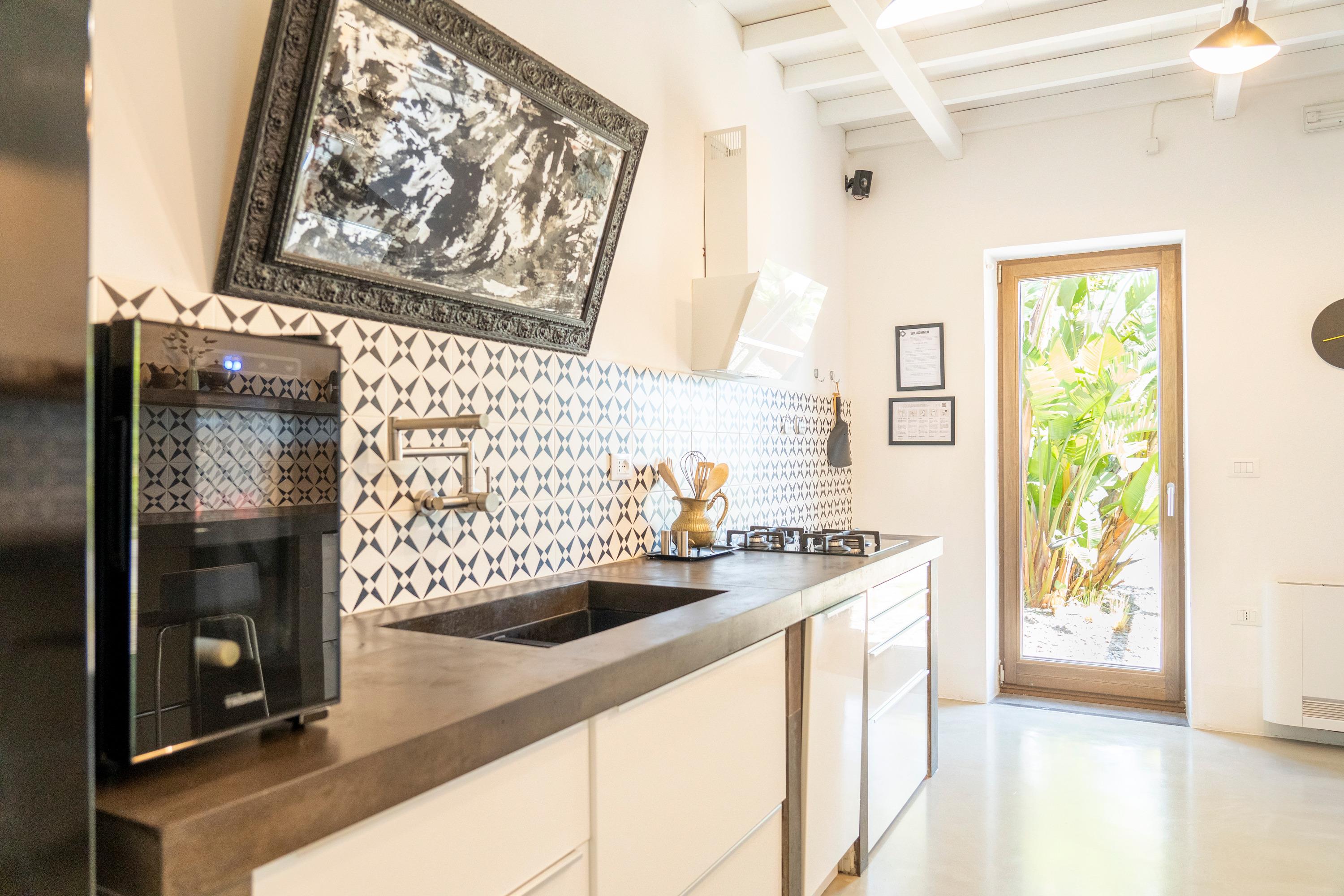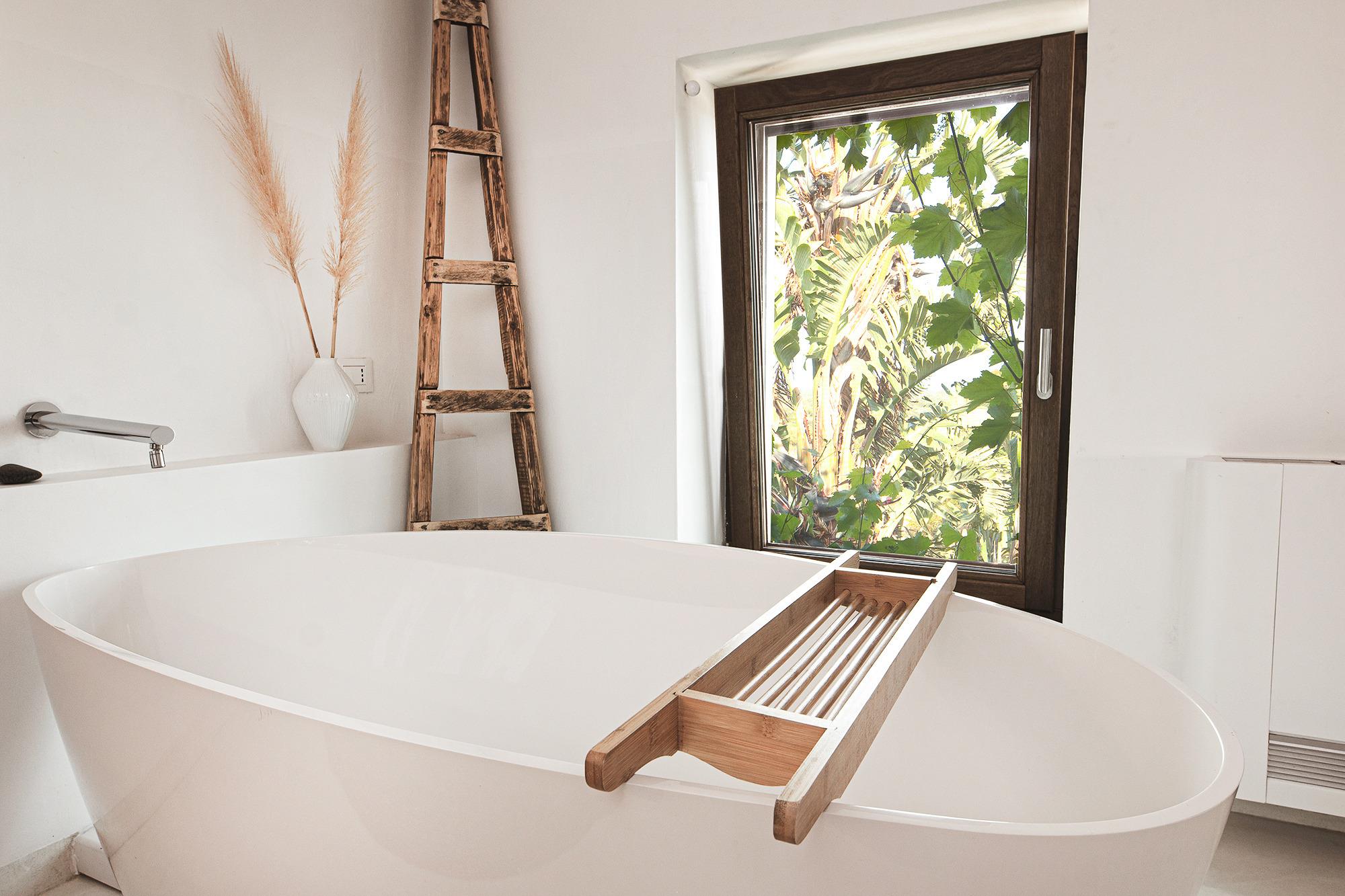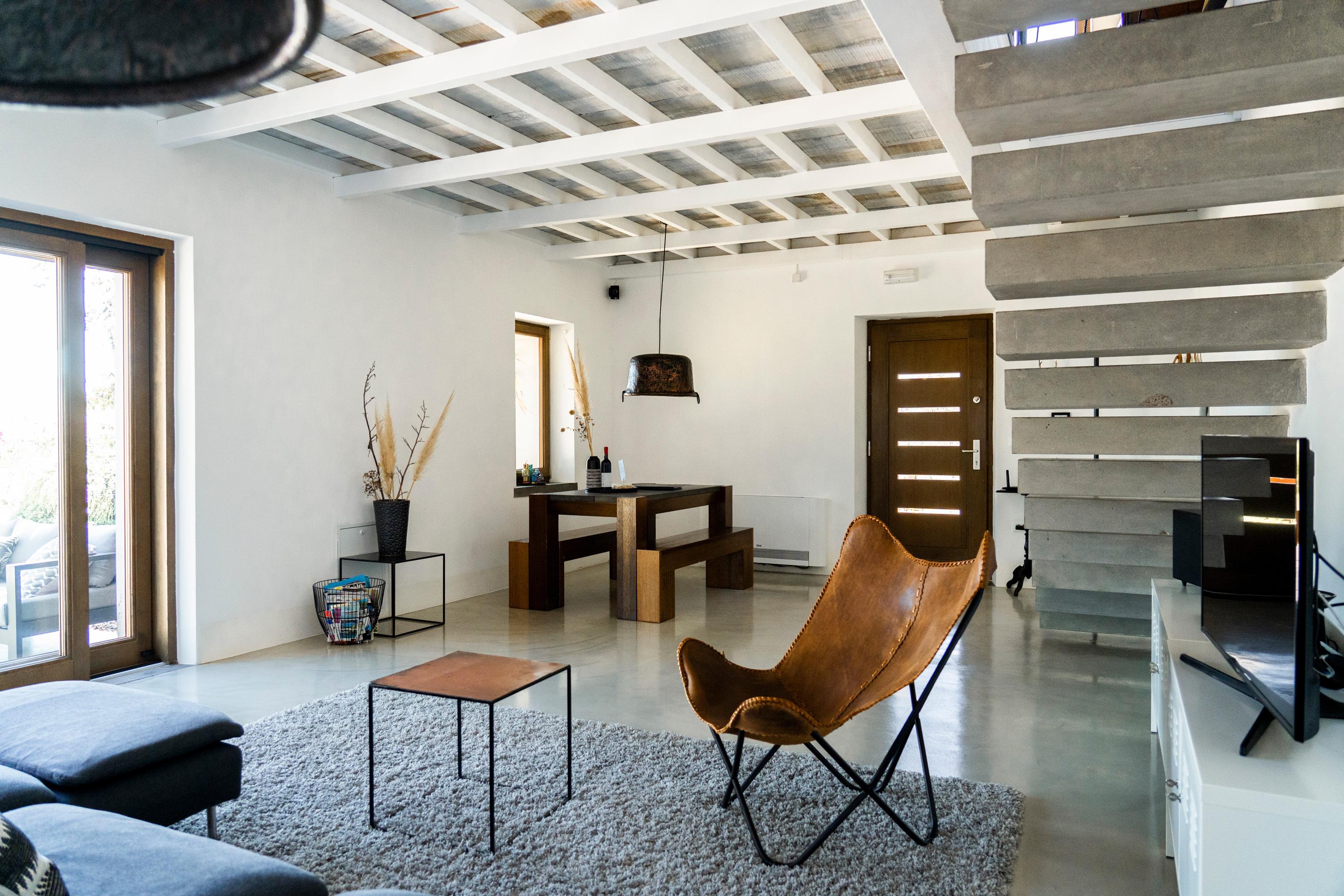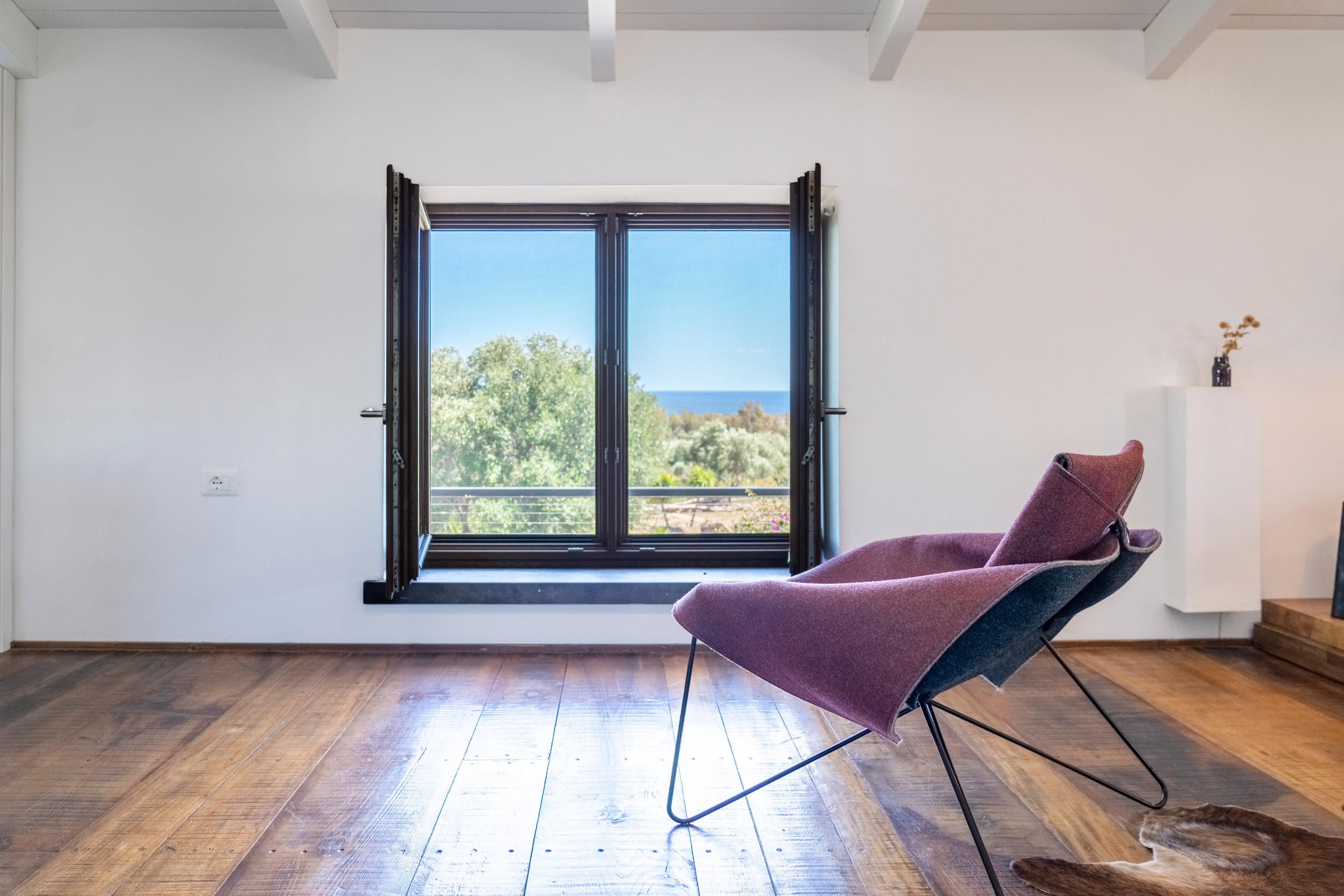 Das Haus hat ein offenes Design mit viel Platz und ist hell und modern eingerichtet. Die Küche ist mit hochwertigen Materialien ausgestattet und eignet sich perfekt für Urlauber, die gerne kochen. Auch das Badezimmer mit Design-Badewanne und der Schlafraum mit Meerblick lassen keine Wünsche offen.