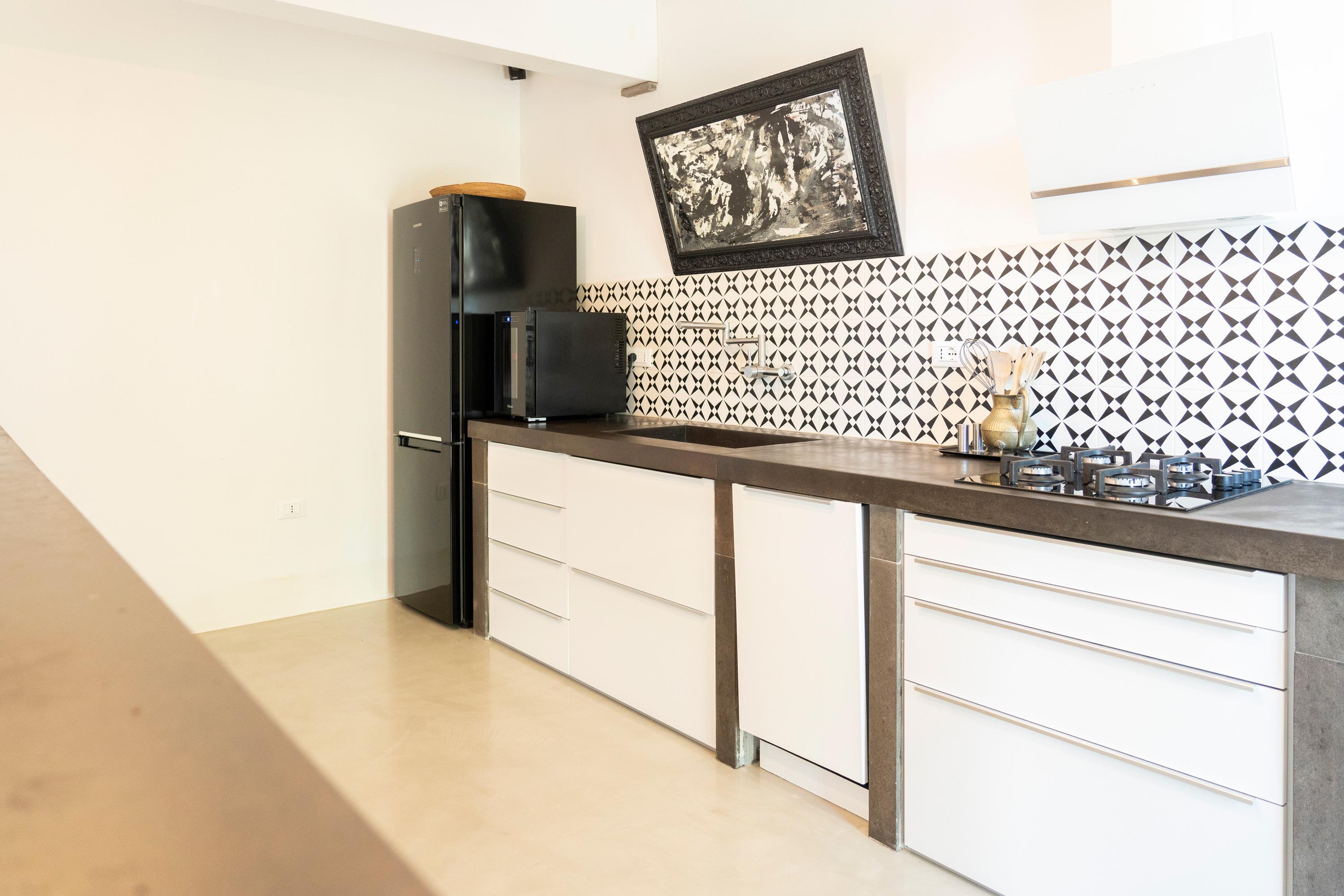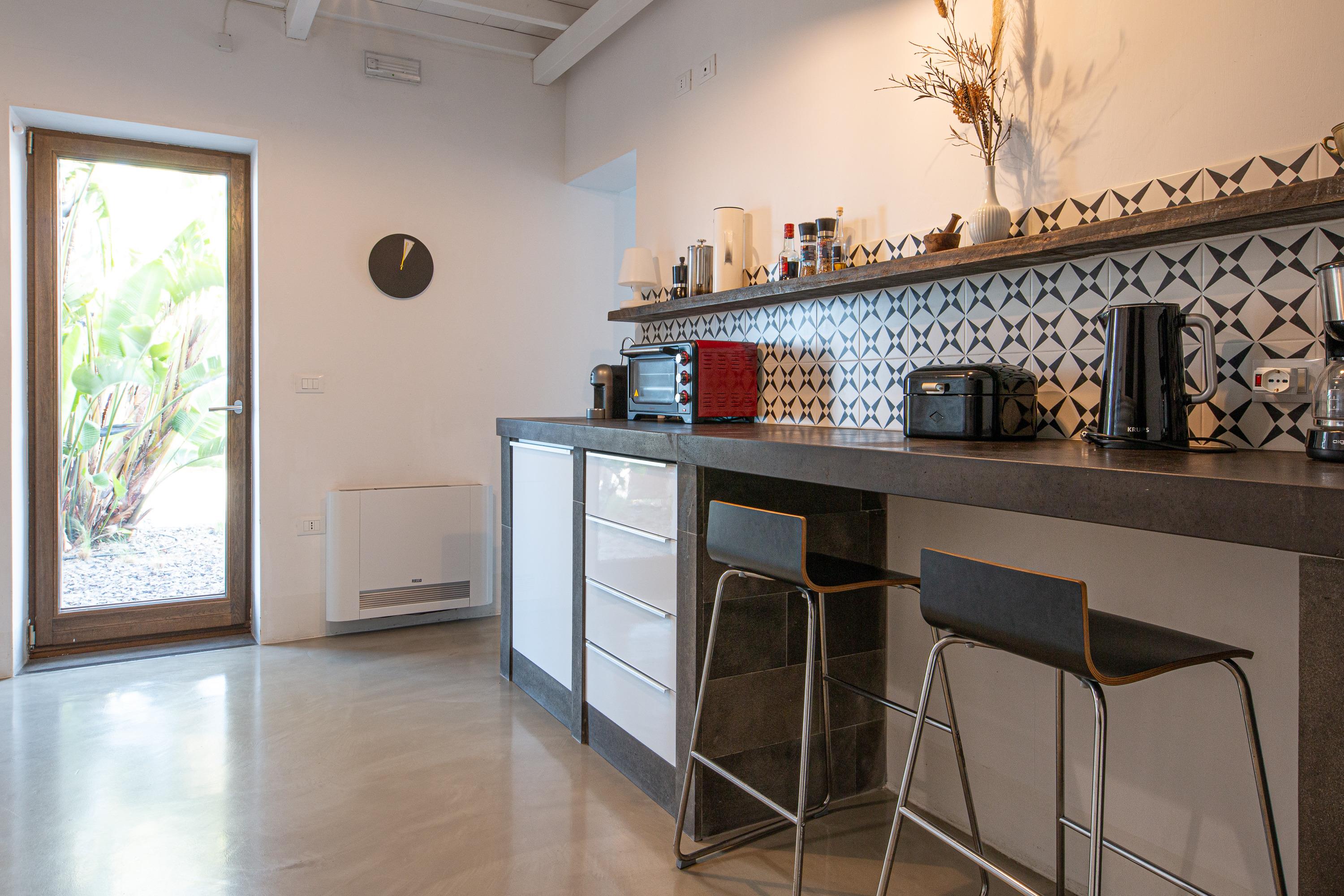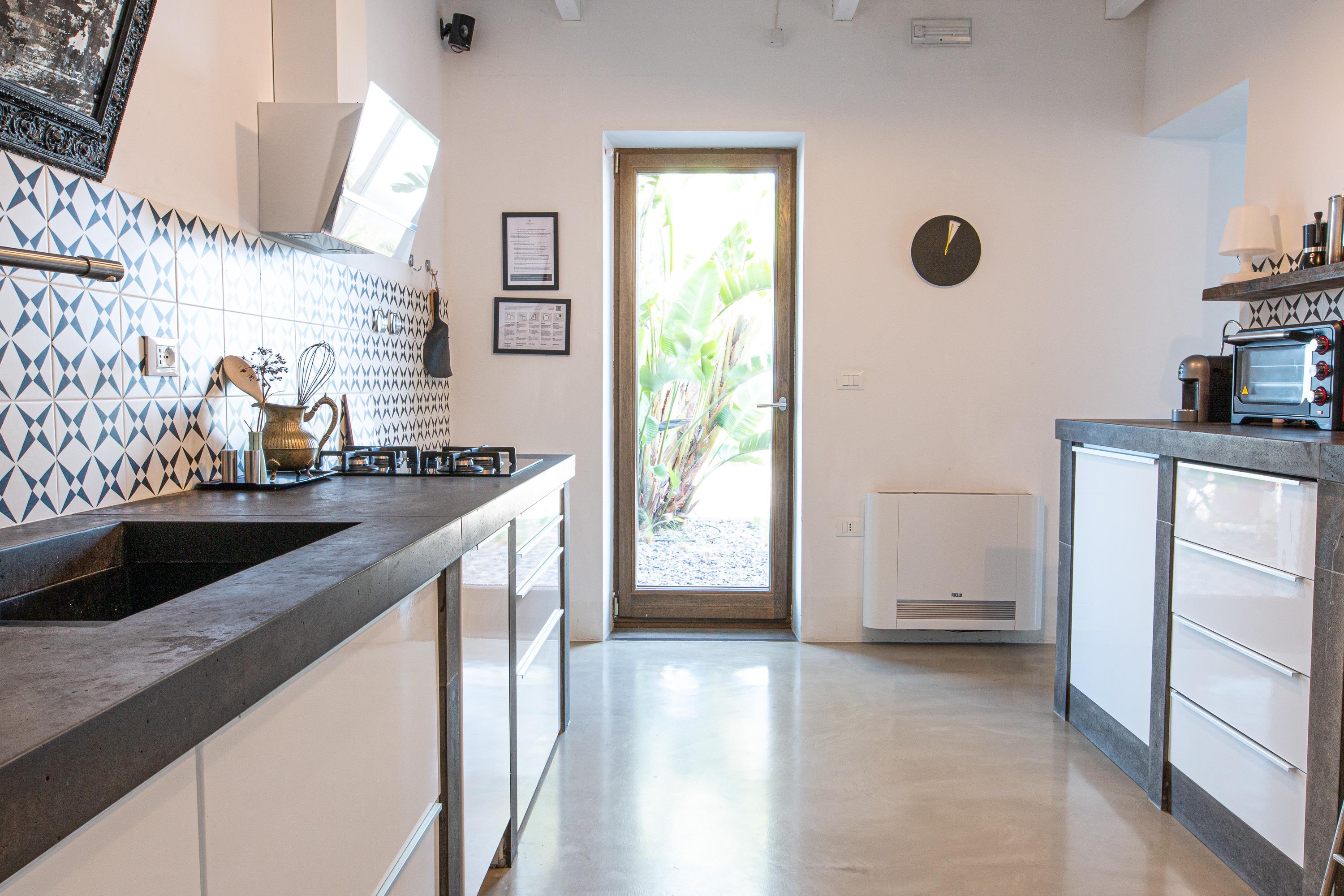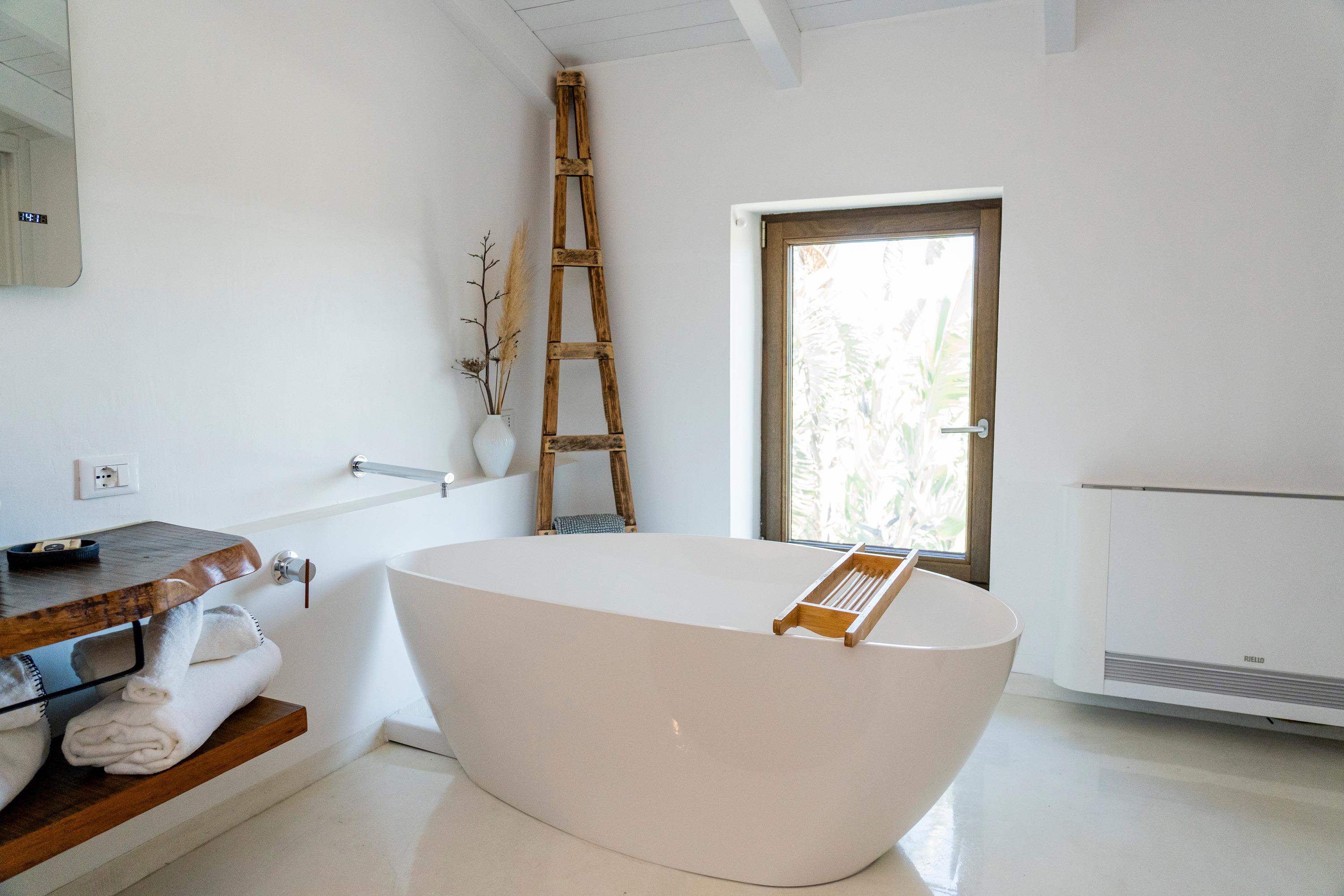 Das Haus hat ein offenes Design mit viel Platz und ist hell und modern eingerichtet. Die Küche ist mit hochwertigen Materialien ausgestattet und eignet sich perfekt für Urlauber, die gerne kochen. Auch das Badezimmer mit Design-Badewanne und der Schlafraum mit Meerblick lassen keine Wünsche offen.