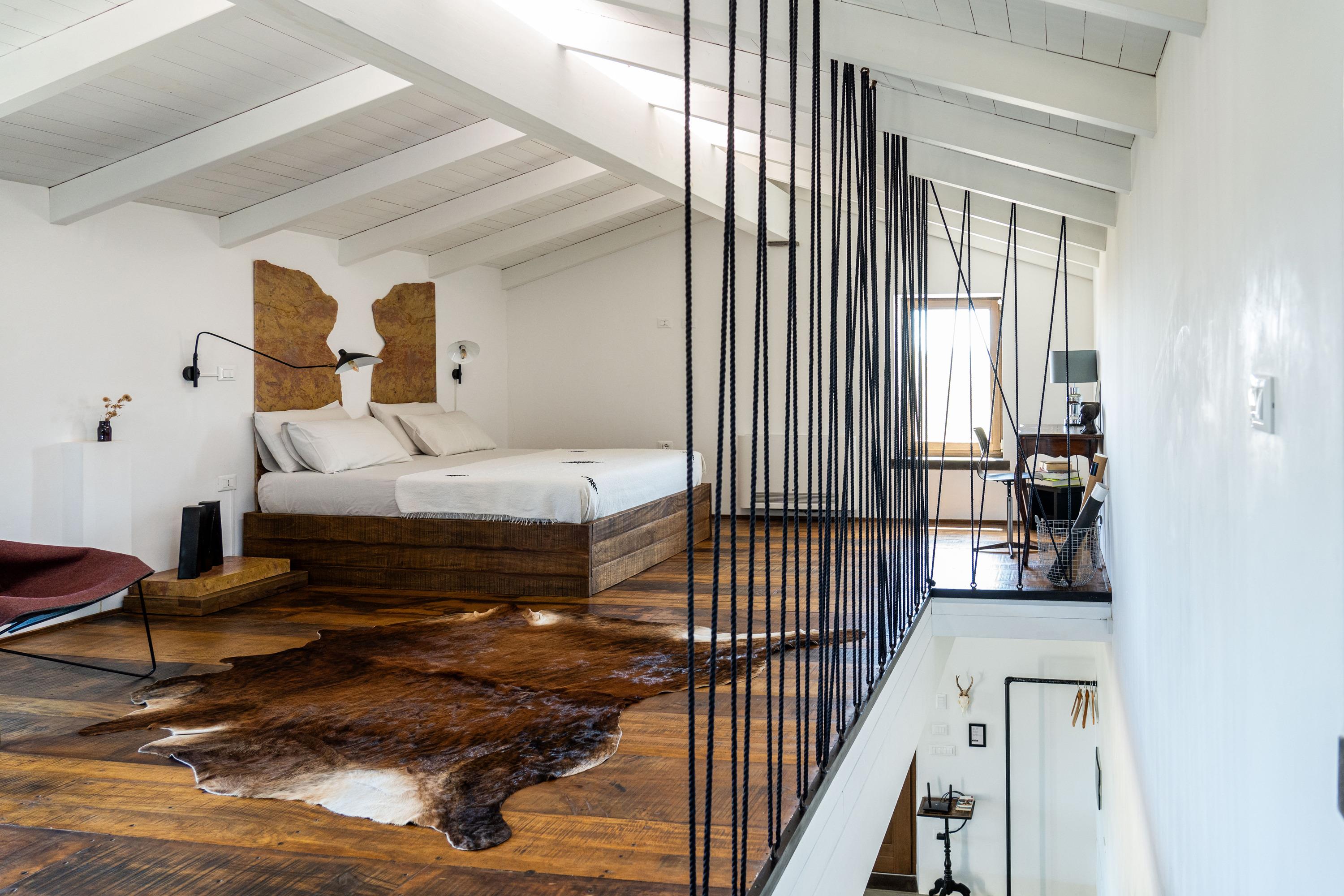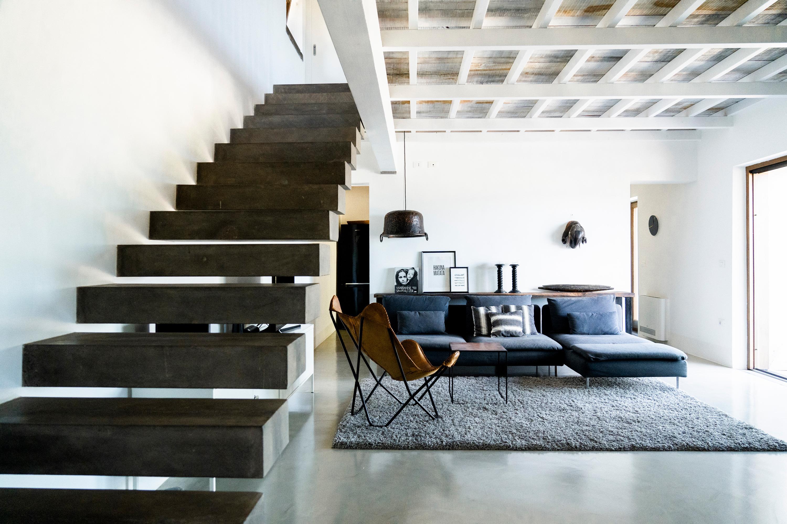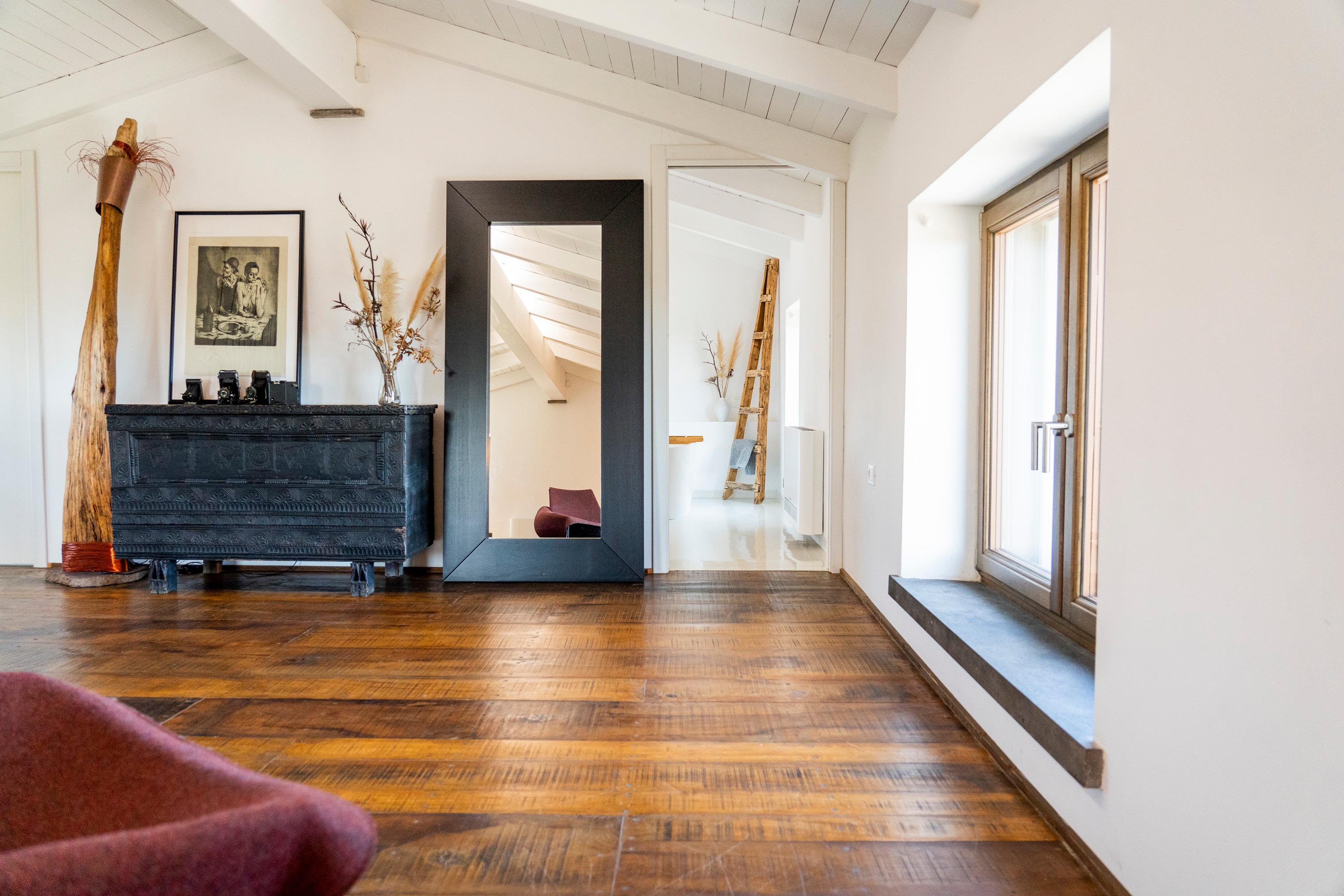 Der Fussboden im ersten Stock ist aus dem antiken, sardischen Kastanienholz gefertigt. Sämtliche Materialien wurden sorgfältig ausgewählt und stammen aus Sardinien.