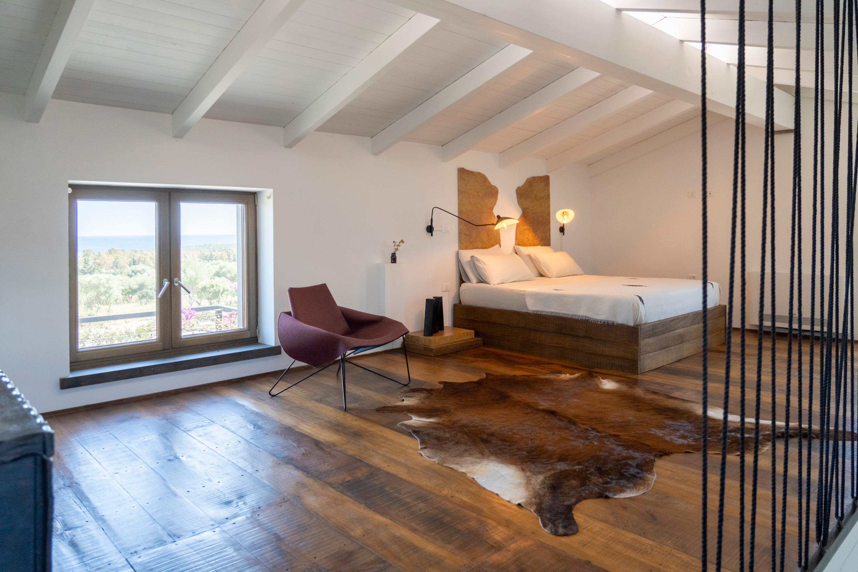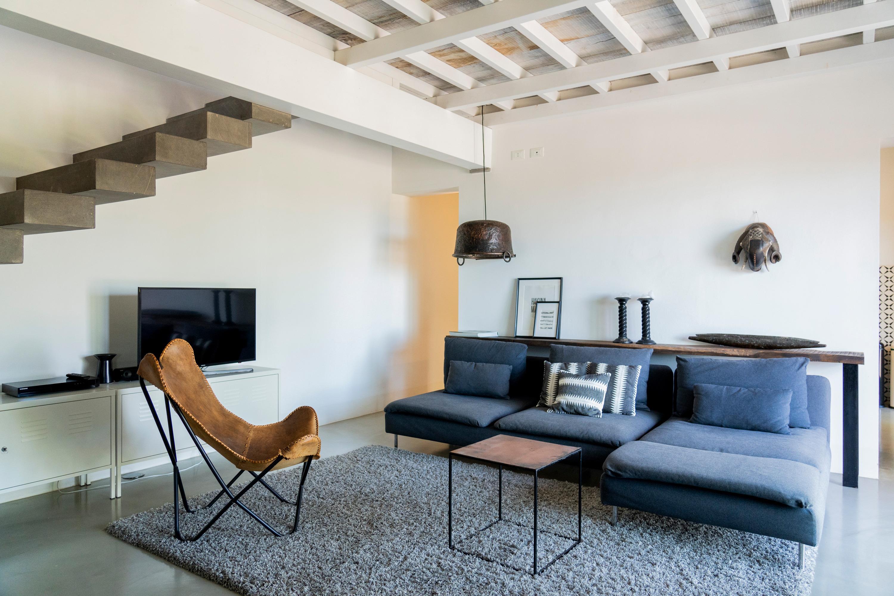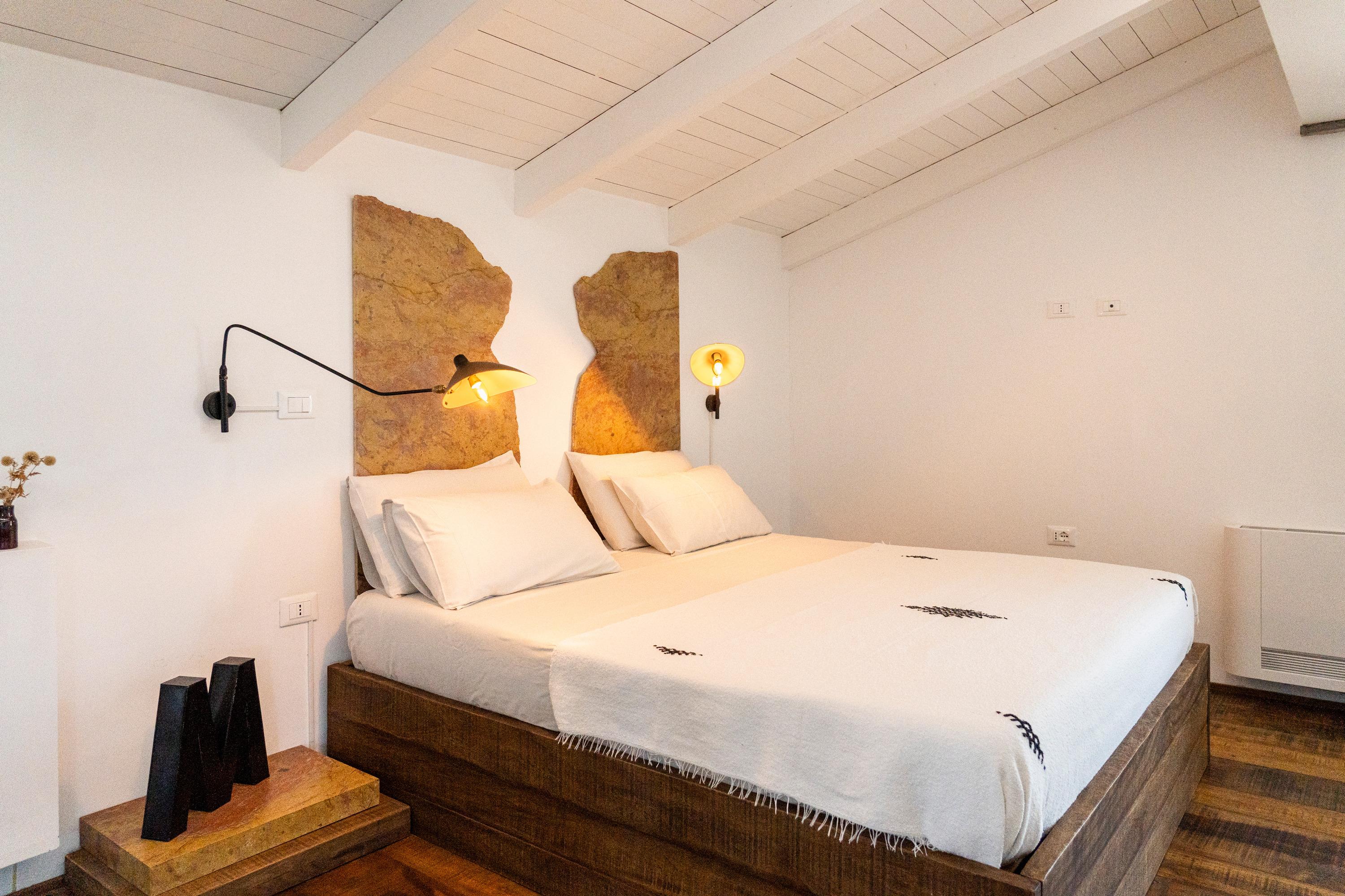 Der Fussboden im ersten Stock ist aus dem antiken, sardischen Kastanienholz gefertigt. Sämtliche Materialien wurden sorgfältig ausgewählt und stammen aus Sardinien.
